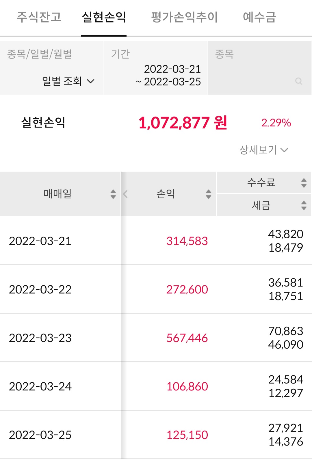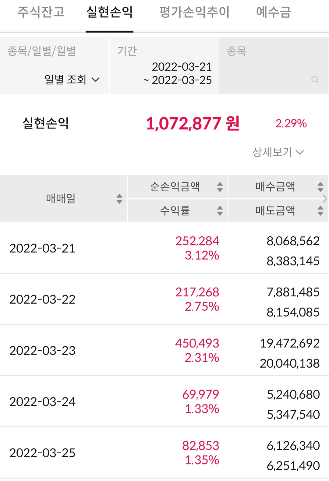 3월 4주 국내주식 수익현황