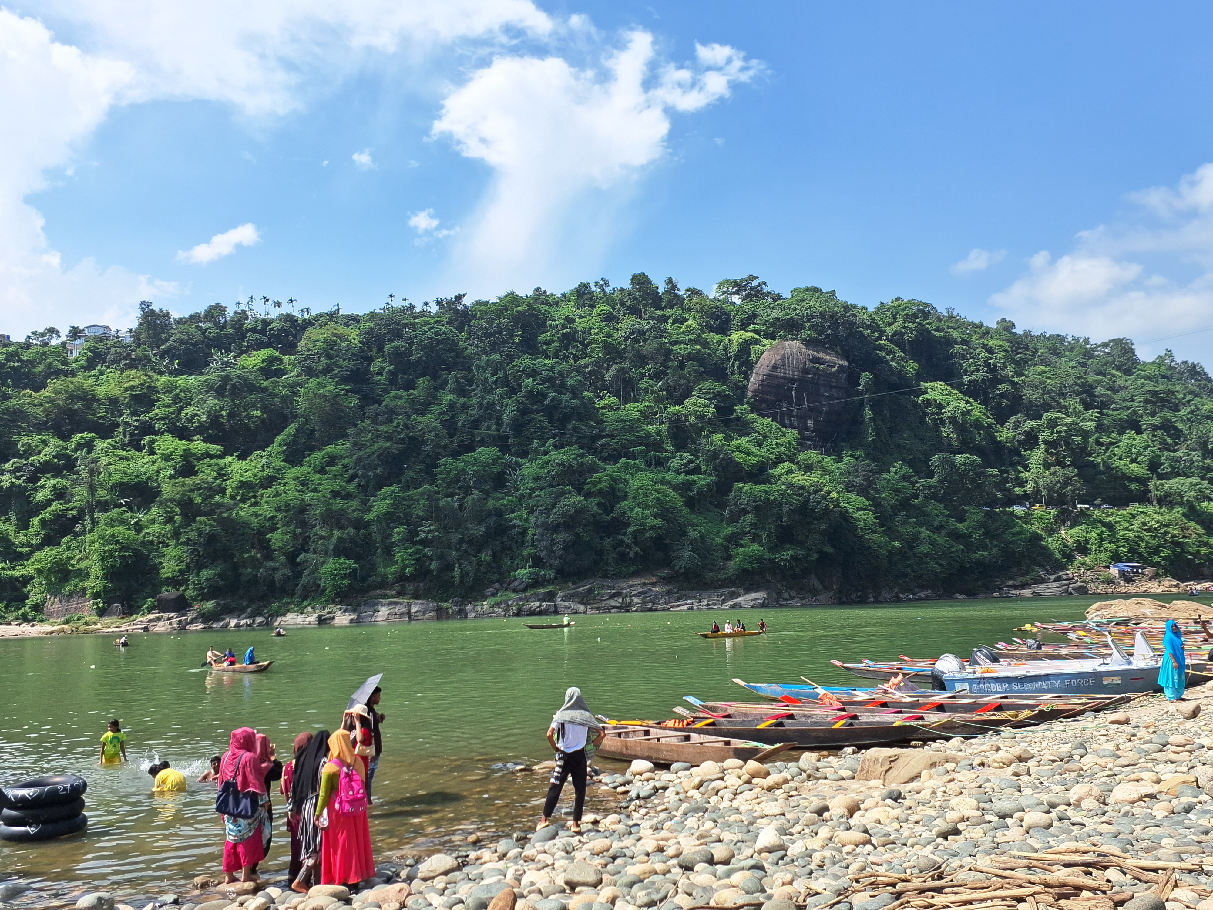 আমরা জাফলং জিরো পয়েন্টের খুব কাছাকাছি পৌঁছে দেখতে পেলাম বাংলাদেশ ইন্ডিয়ার বর্ডারে ইন্ডিয়ান বিএসএফ এর একটি ক্যাম্প। এই ক্যাম্পটি একটি পাহাড়ের উপরে নদীর ভেতর থেকে তো আকাশের দিকে রেখে এই বিএসএফ ক্যাম্পটি দেখতে হয়। যাইহোক প্রচন্ড রোধ আর পাথুরে পথ দিয়ে সামনের দিকে যেতে থাকলাম।