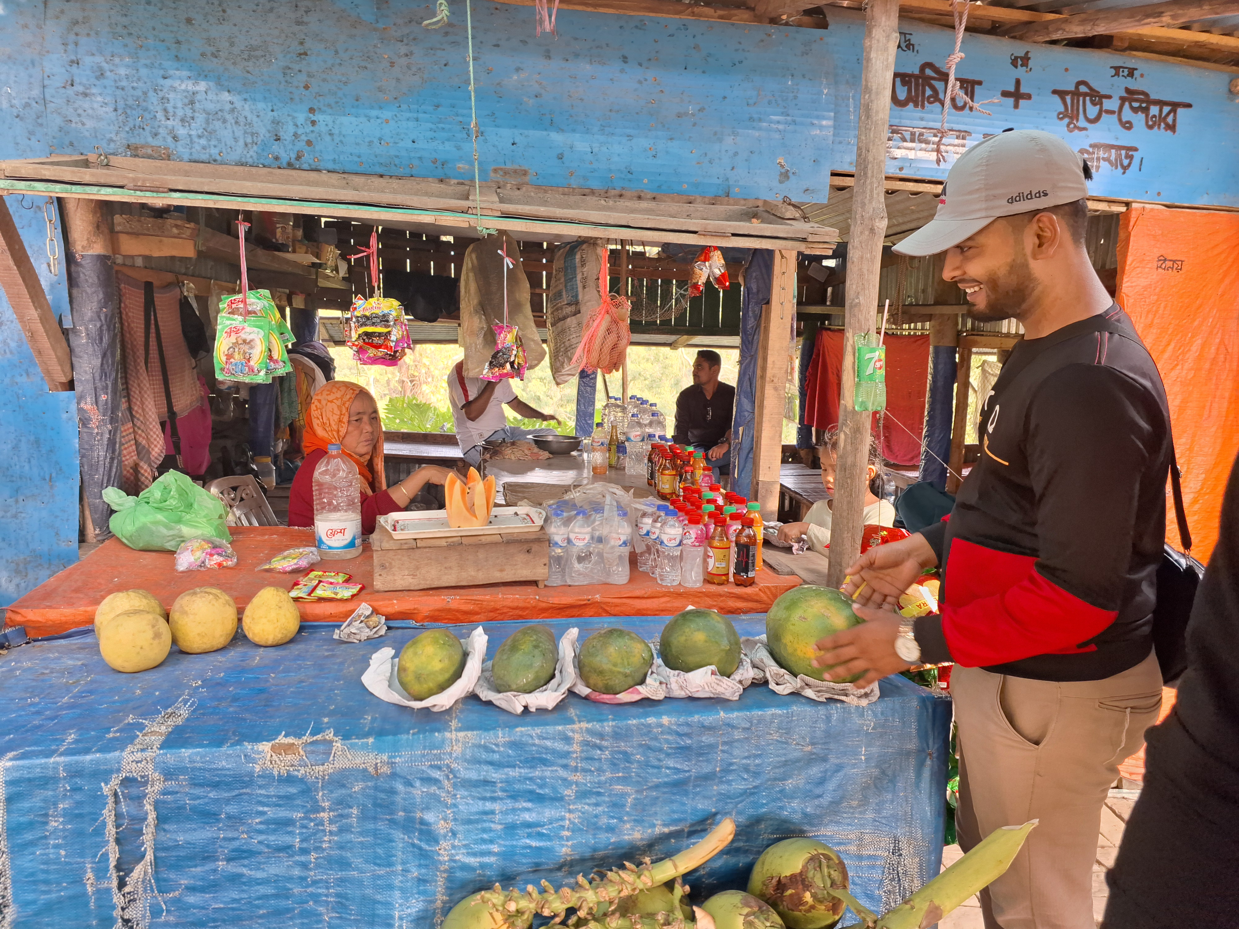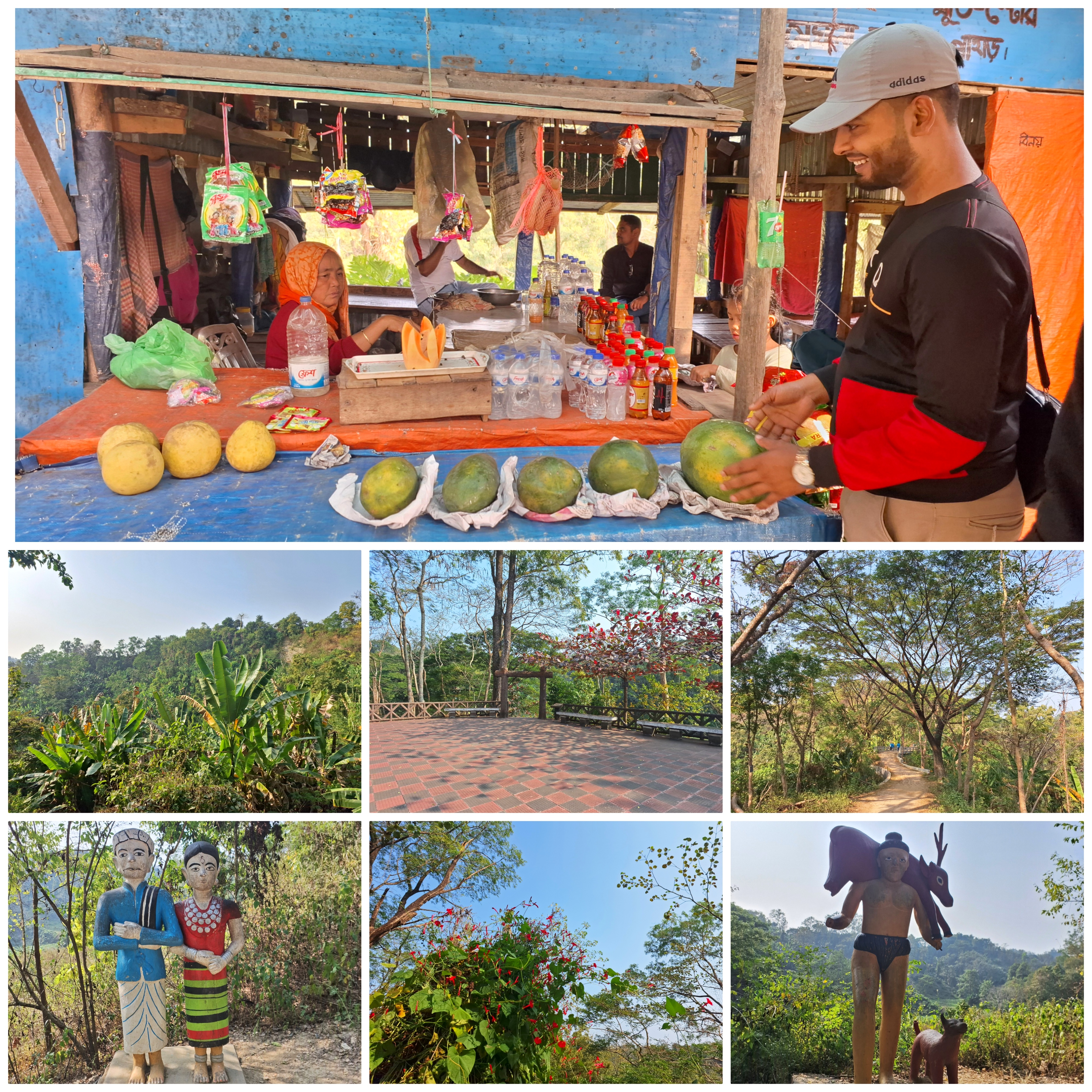তারপর একটু যেতেই দেখতে পেলাম পাহাড়িদের বেশ কয়েকটা দোকান রয়েছে। মেঘলা পর্যটন কেন্দ্রের ভেতরে পাহাড়িদের এরকম দোকান পেয়ে সত্যিই ভীষণ ভালো লেগেছিল। এসব দোকানগুলোতে পাহাড়ি ফল, চা, রুটি বিস্কিট এ ধরনের খাবার গুলো পাওয়া যায়। আমাদের গ্রুপের যে, ম্যানেজার ভাই ছিল সে আমাদের জন্য পাহাড়িদের কাছ থেকে পাহাড়ি পেঁপে কিনে কেটে খাওয়ালো।