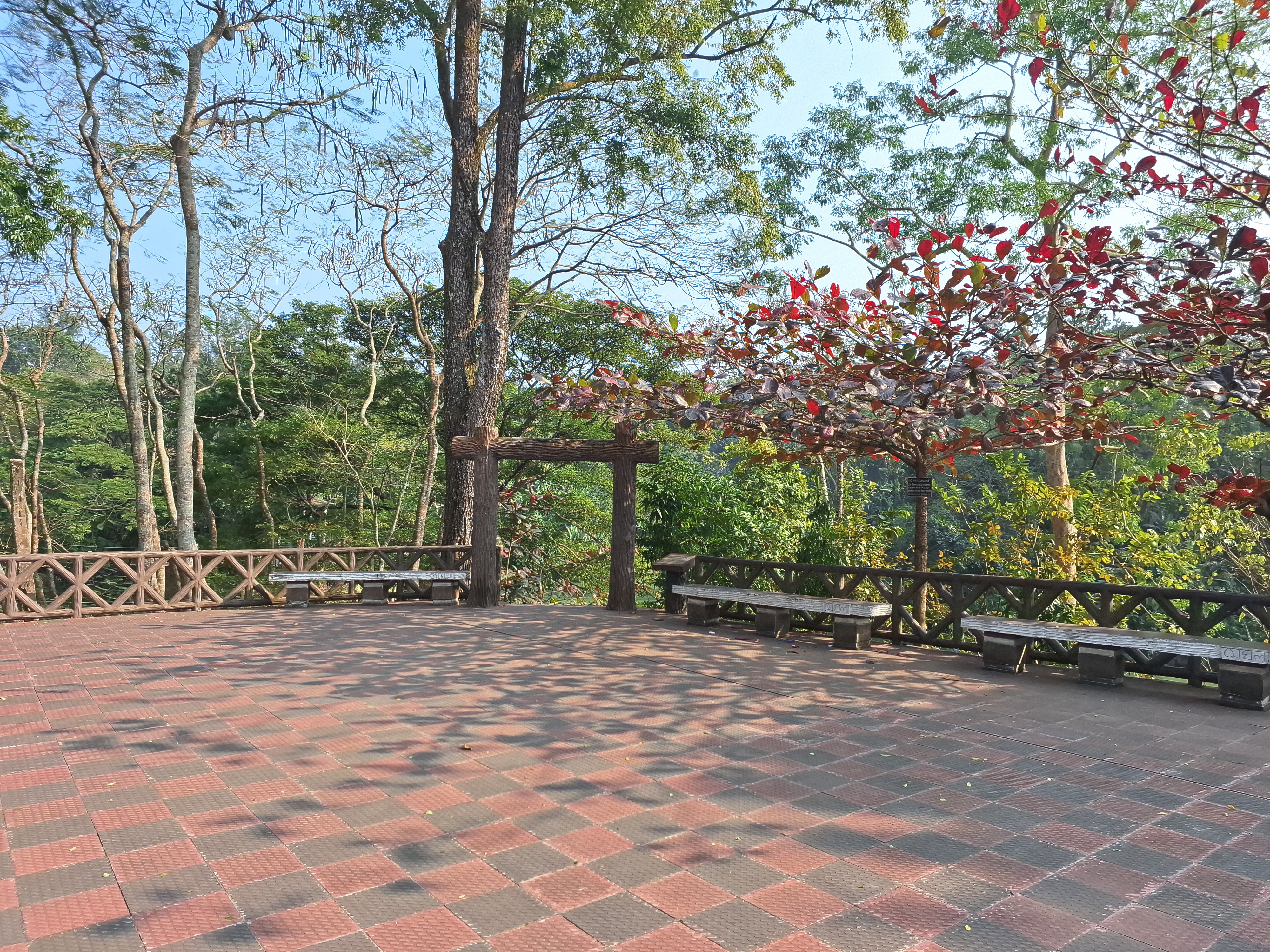 আমরা মেঘলা পর্যটন কেন্দ্রের সুন্দর ঝুলন্ত ব্রিজ পার হওয়ার পরে সিঁড়ি দিয়ে উপরে উঠলাম। অনেকগুলো ধাপের সিঁড়ি পার হয়ে উপরে উঠে বেশ ভালই লাগছিল কারণ উপরে পরিবেশটা ছিল এক কথায় অসাধারণ। উপরে গোল করে অনেকটা জায়গা জুড়ে সমতলের উপর টাইলস করা ছিল এবং সেখানে বসার জায়গা ছিল।