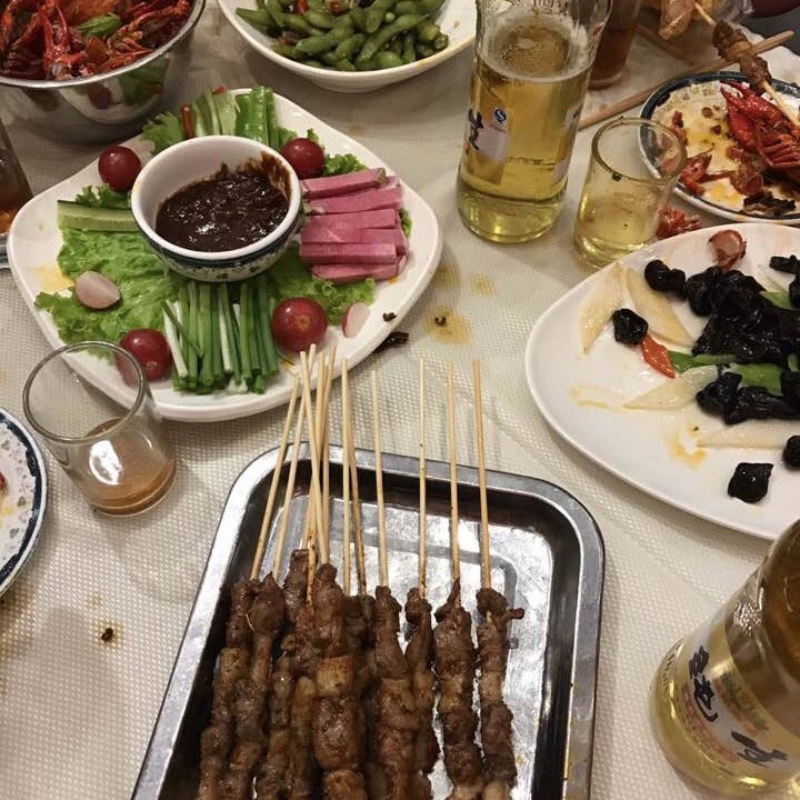 매운 가재요리! 마라룽샤를 시키고, 양꼬치, 버섯요리, 그리고 조금은 징그럽지만 개구리꼬치 요리도 먹어보기로 했어요.