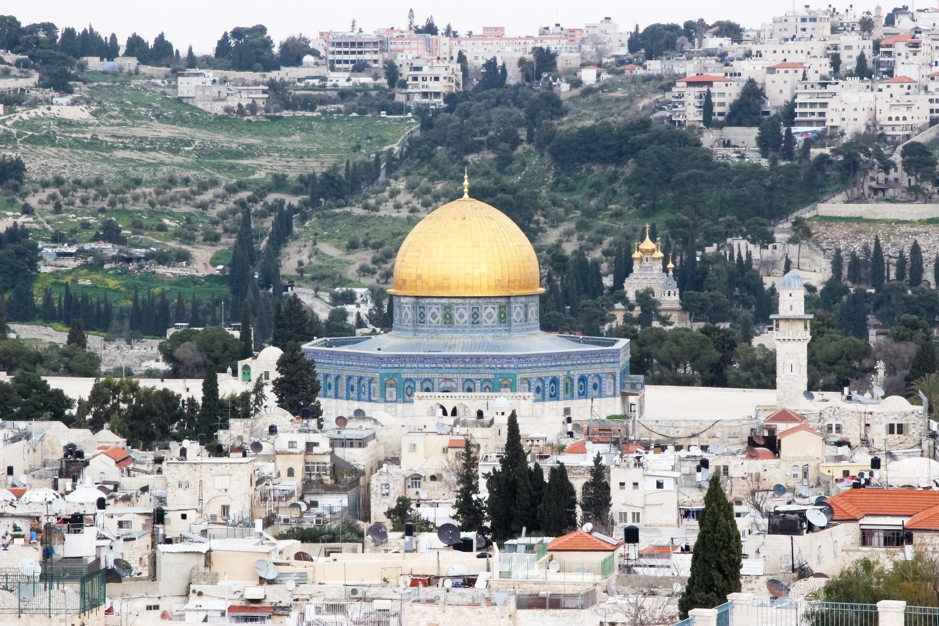 Here is the Dome of the Rock, on the Temple Mount in Jerusalem. One of the most holy sites for Judaism, Christianity, and Islam, this hill was the site of the Jewish temples, and now a Mosque.