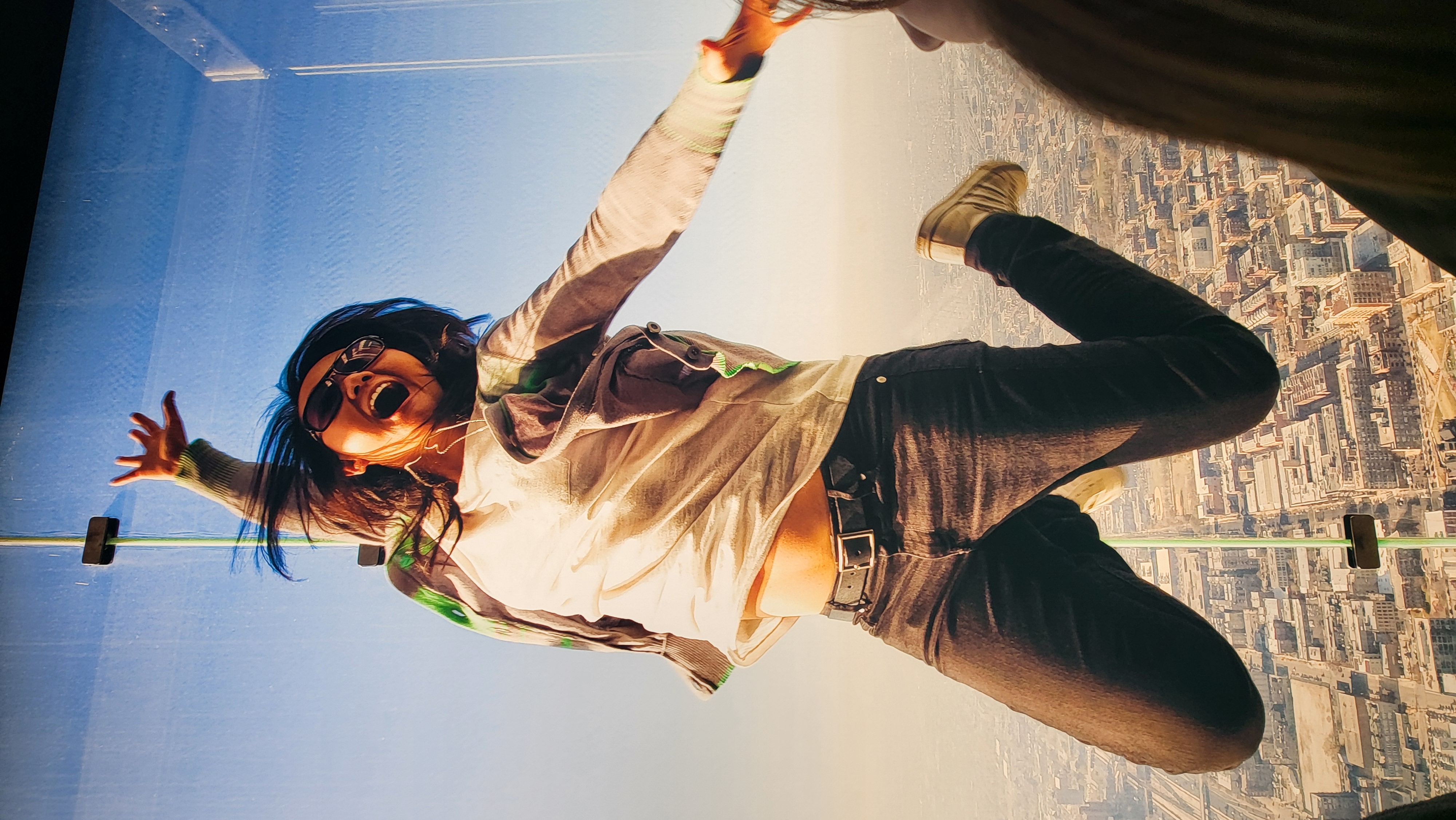 진짜 건물밖으로 볼록 튀어나왔다. 으읔 무서워>.< 엘레베이터를 타고 올라가는데 103층을 1분만에 올라간 것 같다. 엘베 내부에는 영상을 사방에서 틀어주는데 화면으로는 천천히 올라가기 때문에 실제 엘베가 그렇게 빨리 올라가는 줄 몰랐다. 착시효과. 하지만 올라가는 동안 귀가 3번 정도 먹먹했다.