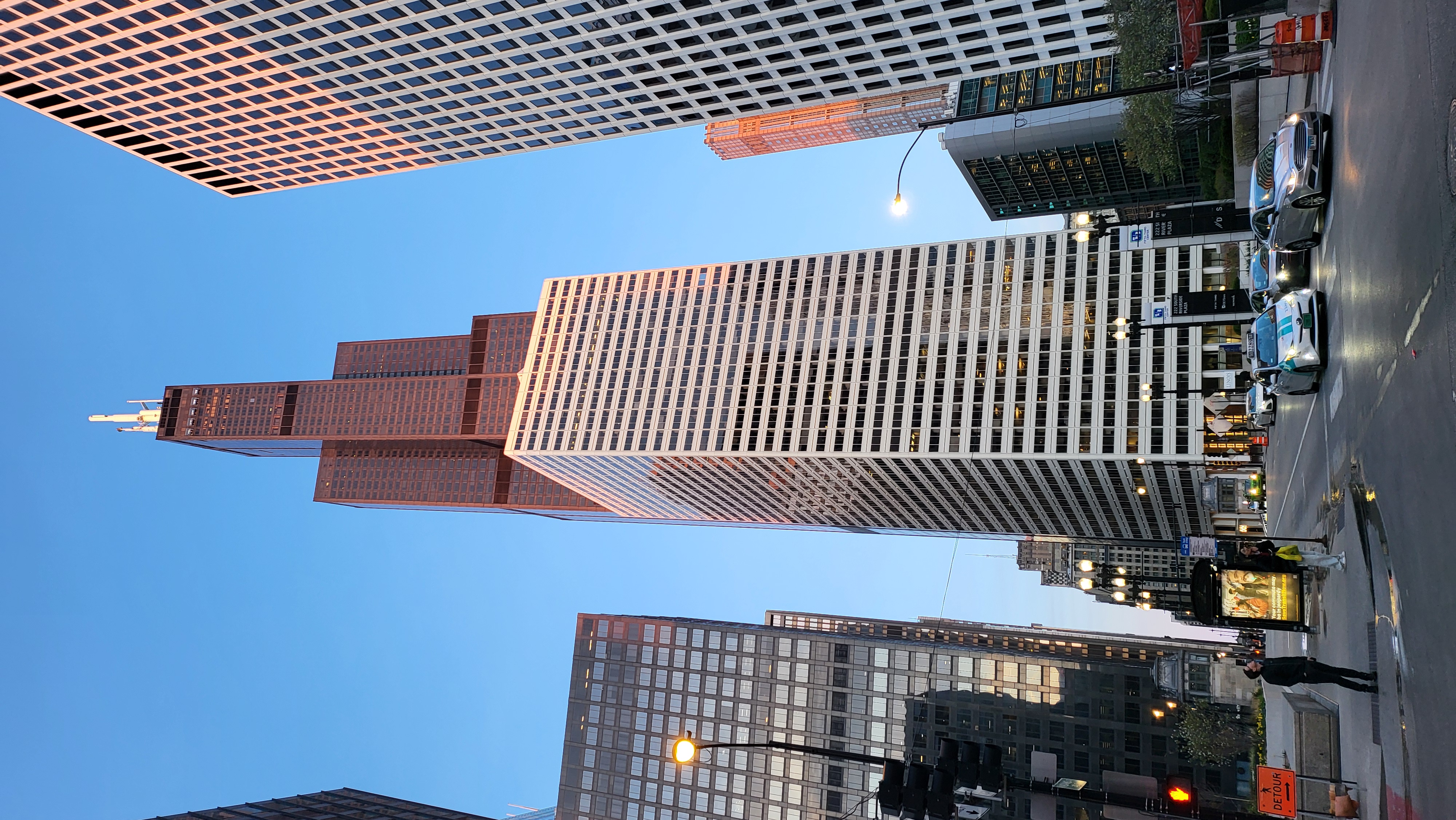 숙소로 돌아와서 우리부부는 낮잠을 자고 아이들은 유튜브와 게임을 했다. 야경을 보는 스카이덱은 8시로 예약했기 때문에 쉴시간은 충분했다. 2시간 정도 자고 일어나니 다시 에너지가 충전된 기분이다. 아이들도 인터넷하고 놀시간을 주니 불평이 없다. 옷매무새를 다듬고 7시 20분에 숙소를 나섰다. 상쾌한 바람을 맞으며 시내를 15분 정도 걸으니 눈앞에 목적지가 보였다. 높은 빌딩.