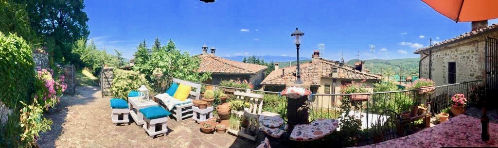 our temporary home and garden - couple of houses in Dimezzano which belongs to Lucolena, a very small village up in the hills