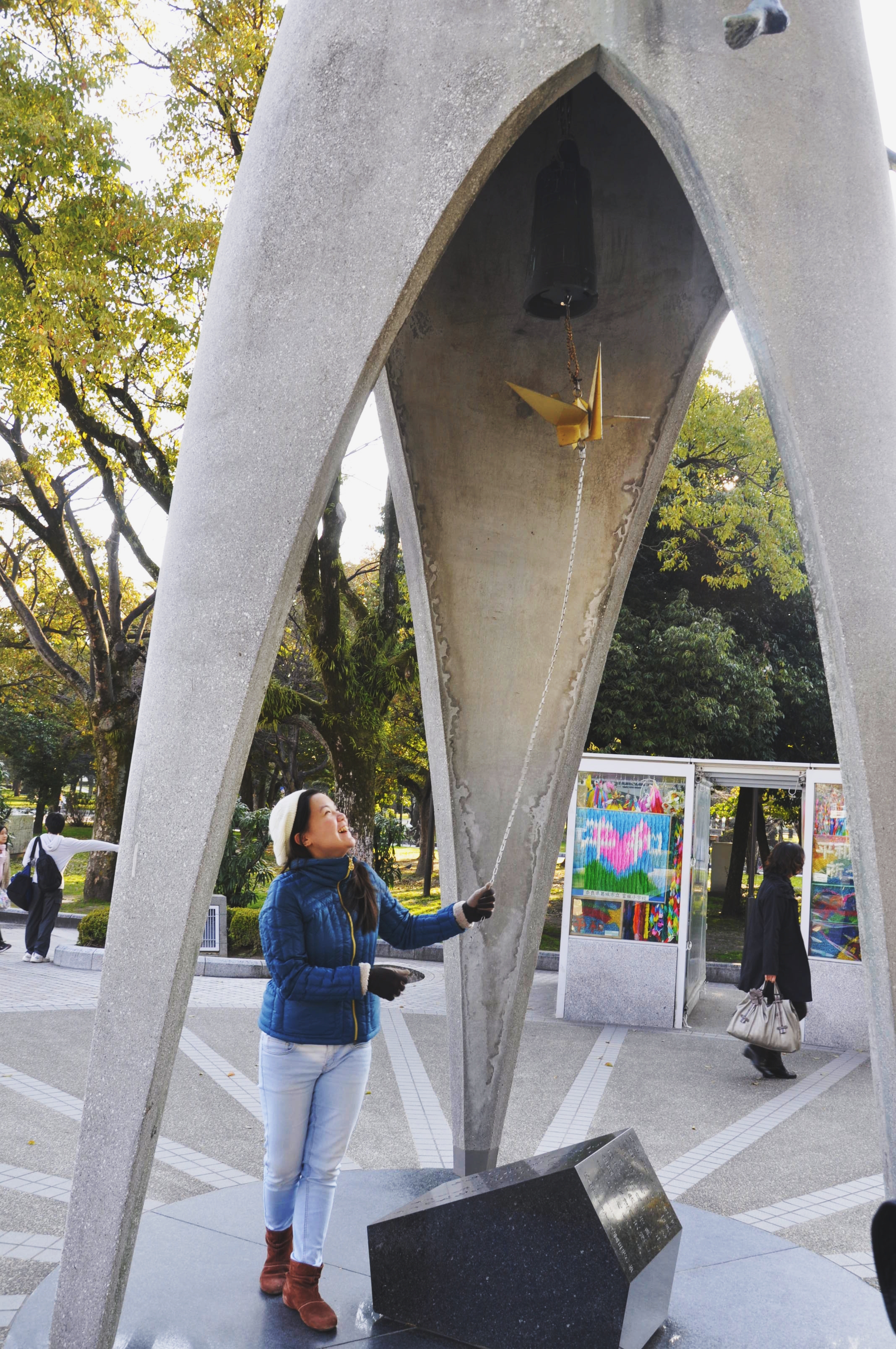 I also made it to the Children's Peace Monument inspired by Sadako Sasaki who is famous for making the thousand paper cranes to fulfil a wish. This too is located in Hiroshima, in the peace memorial park. Inside the structure is a bronze crane that is designed as a bell. And below is a slab which contains the words: