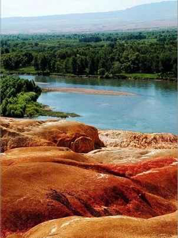 前往五彩滩风景区,沿途依伴着额尔齐斯河段,绿水青山、弯弯河滩、清水潺潺、碧波荡漾、桦林茂盛,景色迷人。五彩滩风景区前还有大型的风力发电网站,给辽阔的视野里添加了一曲动感活力的生命旋律。绿草如茵、山花烂漫、牛养成群、骏马奔驰,绿洲与沙漠之间穿插着群群的骆驼,大场面的景观更体现哈萨克牧民纯情,朴实的牧民生活,让您感受到一路春风一路歌声。