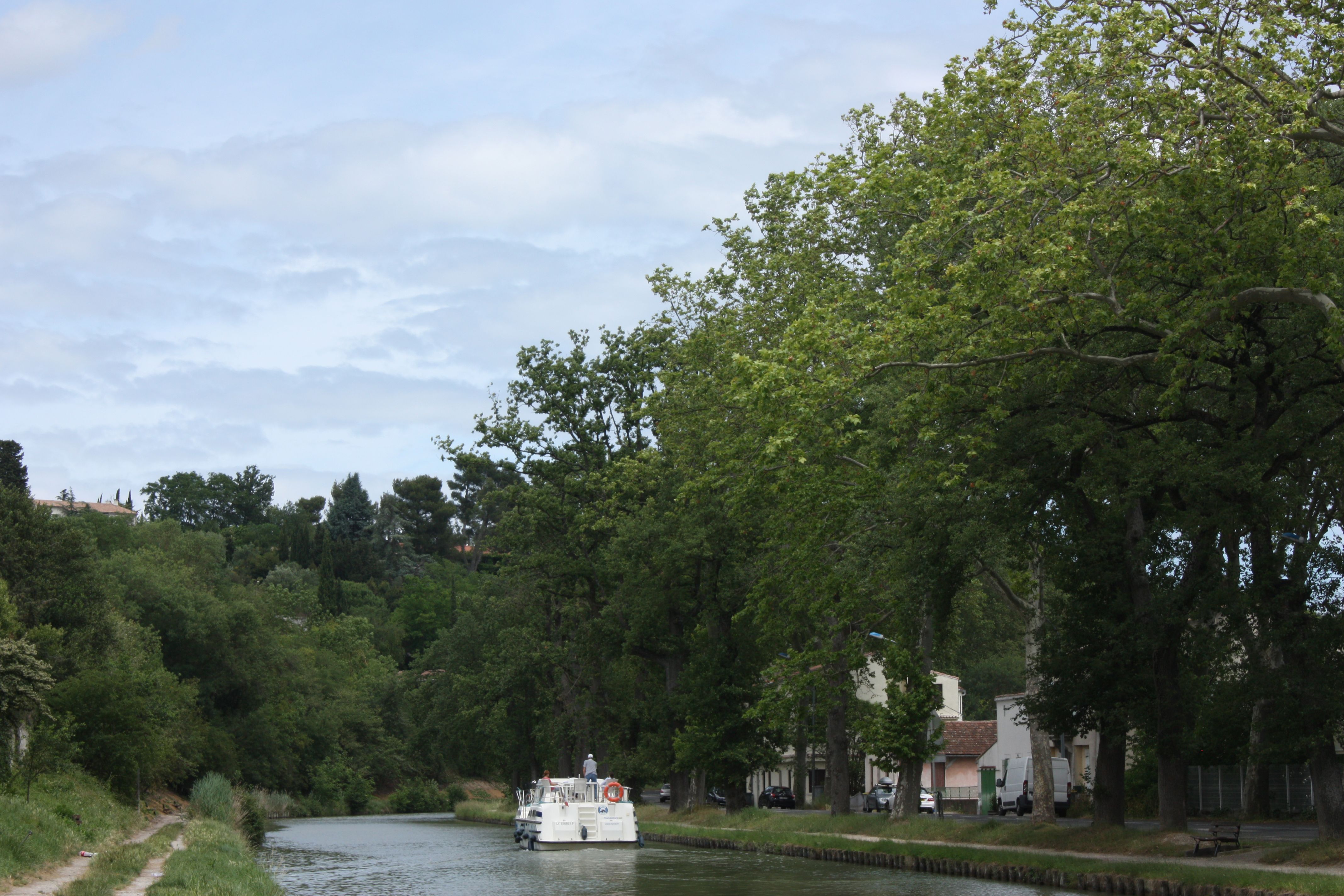 Another reason to visit Carcassonne is that the Canal du Midi passes right in front of the train station and there’s a boat basin too where travellers can hire boats and barges to head towards either Sete on the Mediterranean or inland towards Toulouse. Three hundred yards from the station the canal heads in a straight line and photographers can capture the classic vista of boats cruising along the canal framed by trees. Beautiful.