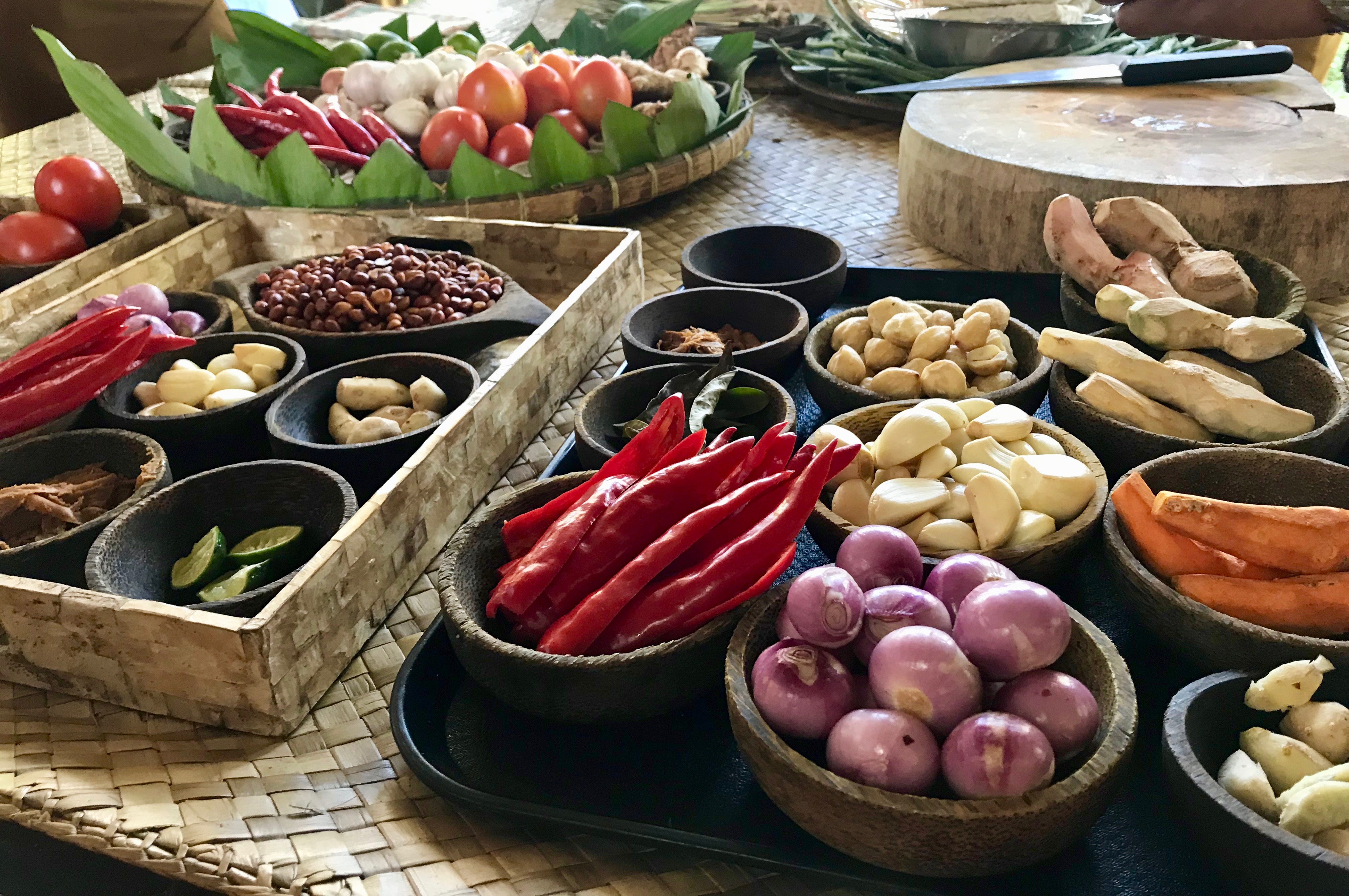 Ingredients at Periuk Cooking class and the Final Product for Lunch