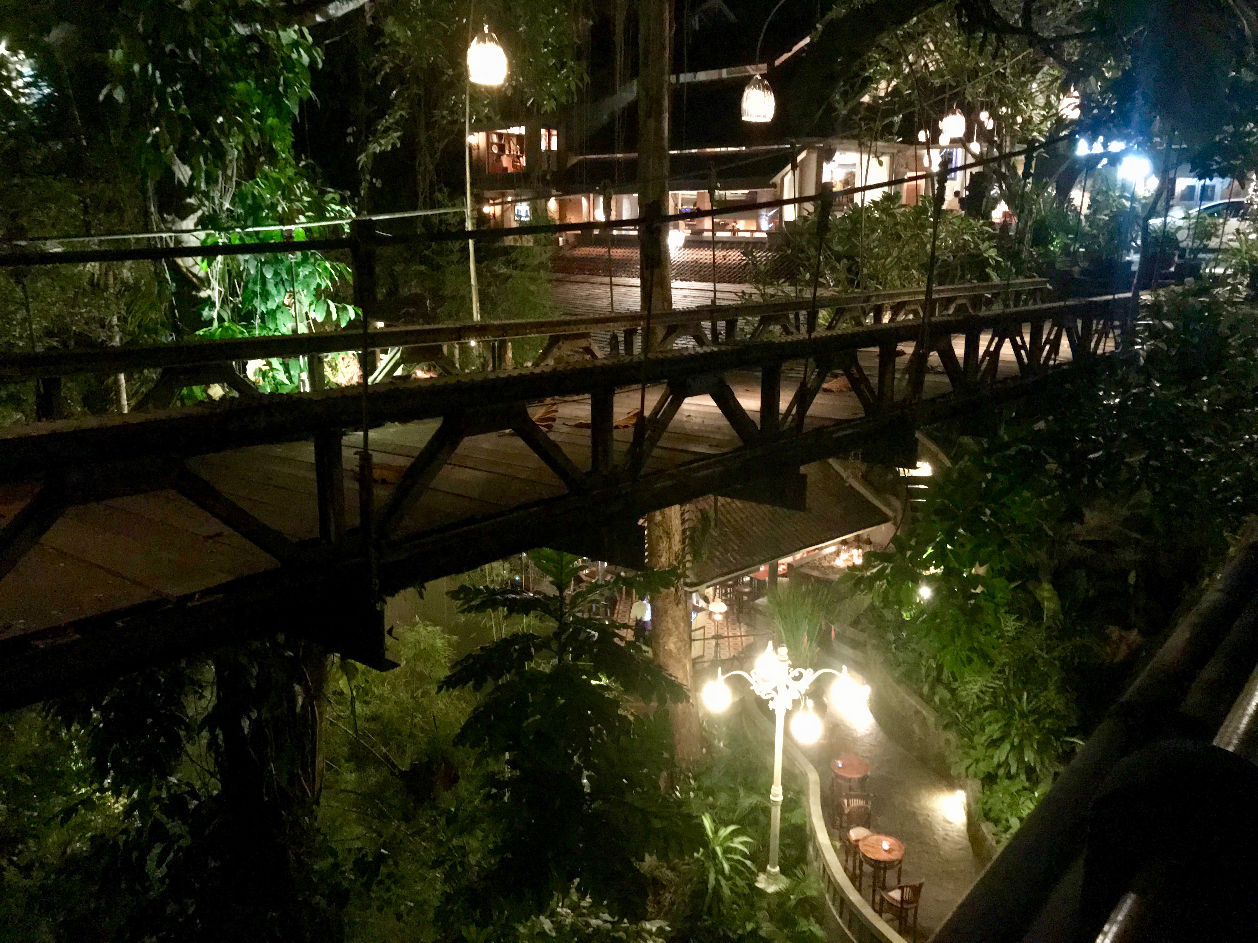 Cocktails at Bridges Bar, Looking down at Bridges Restaurant at Night