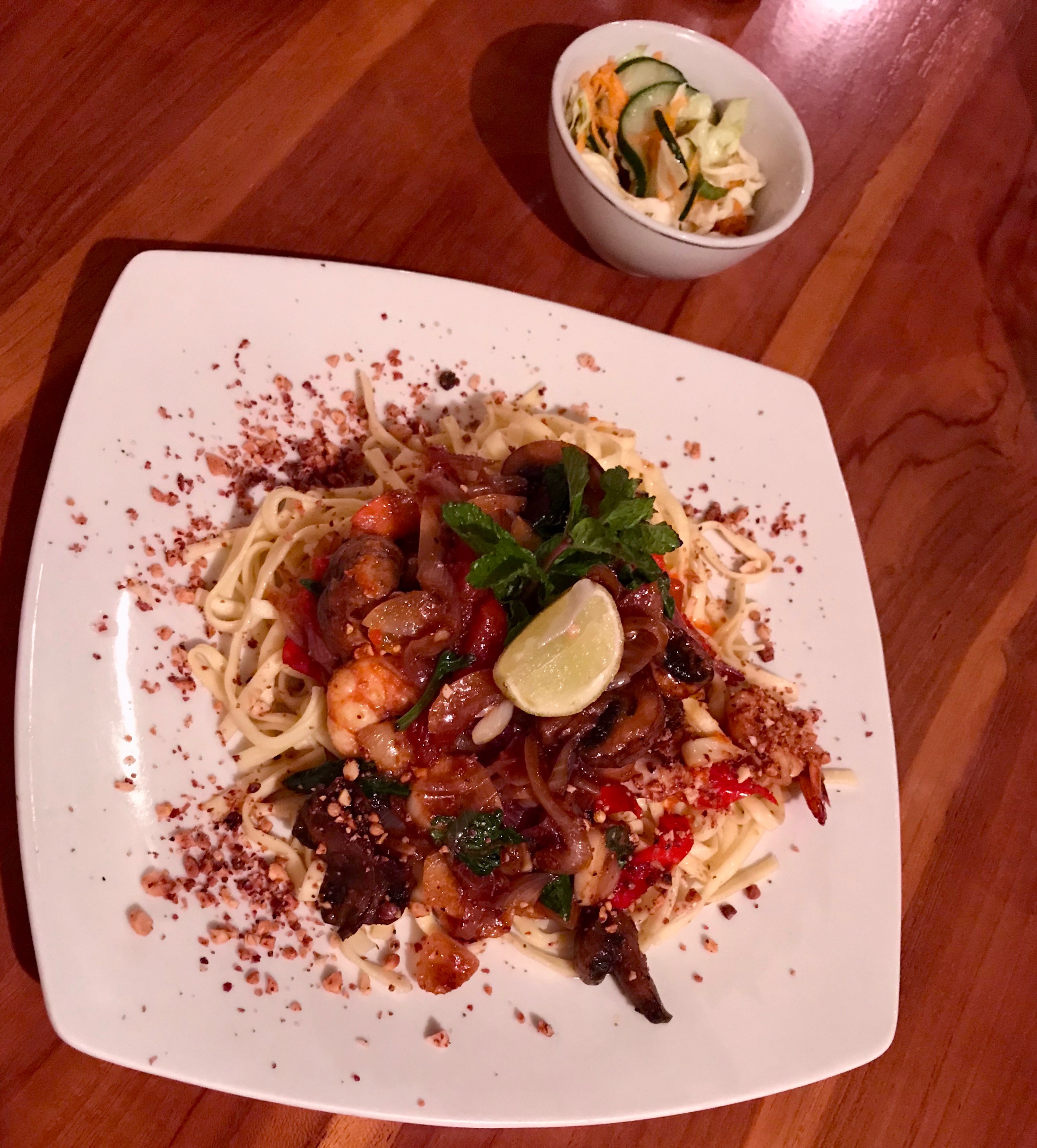 Noodles and Creme Caramel at Melting Wok, Ubud