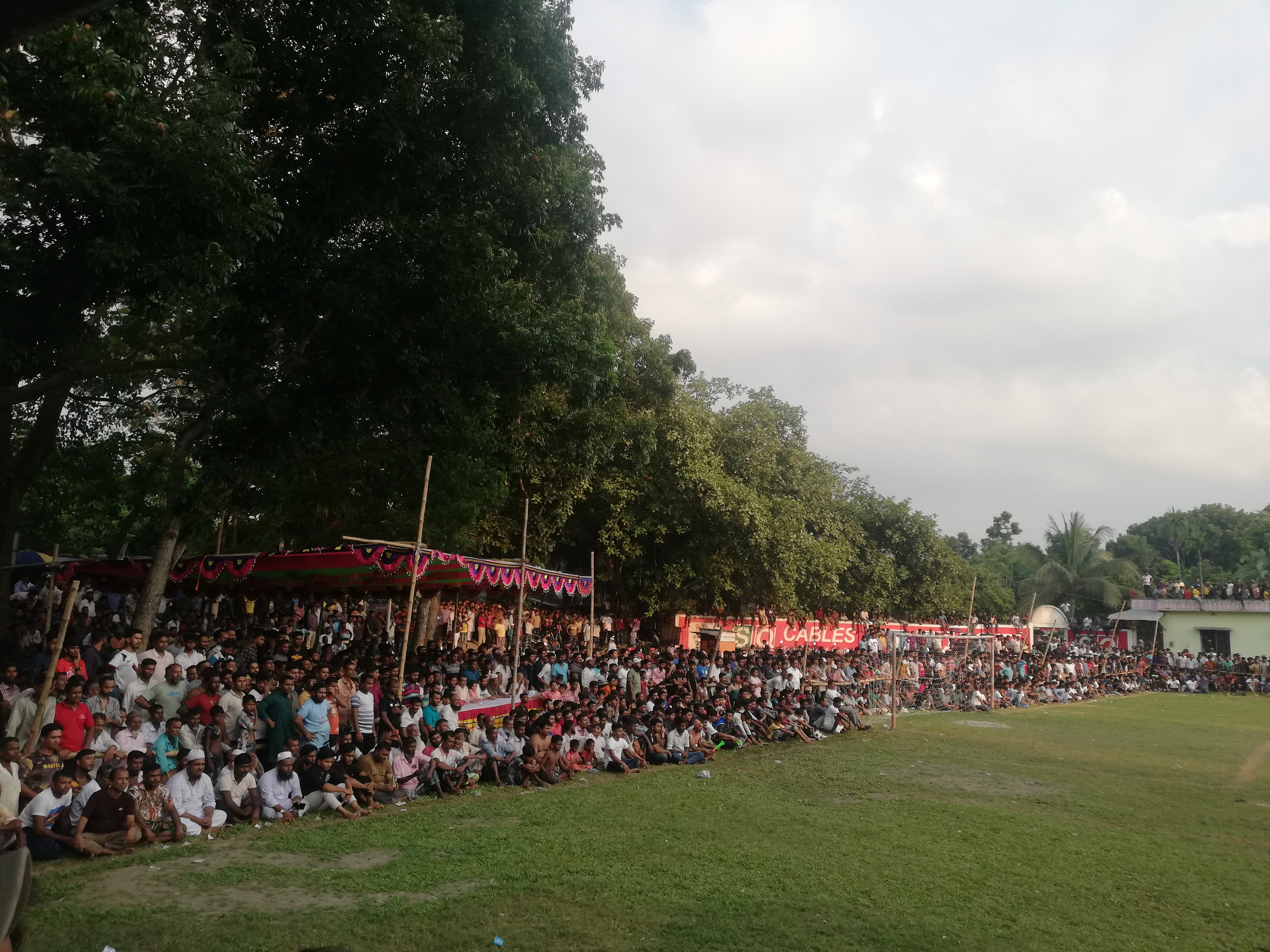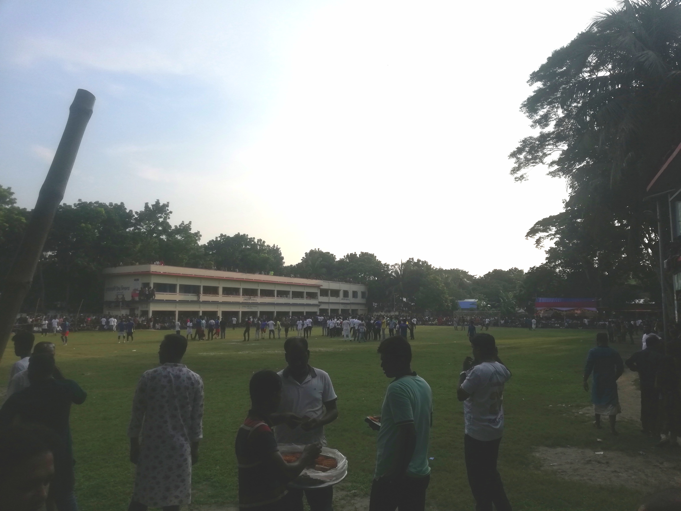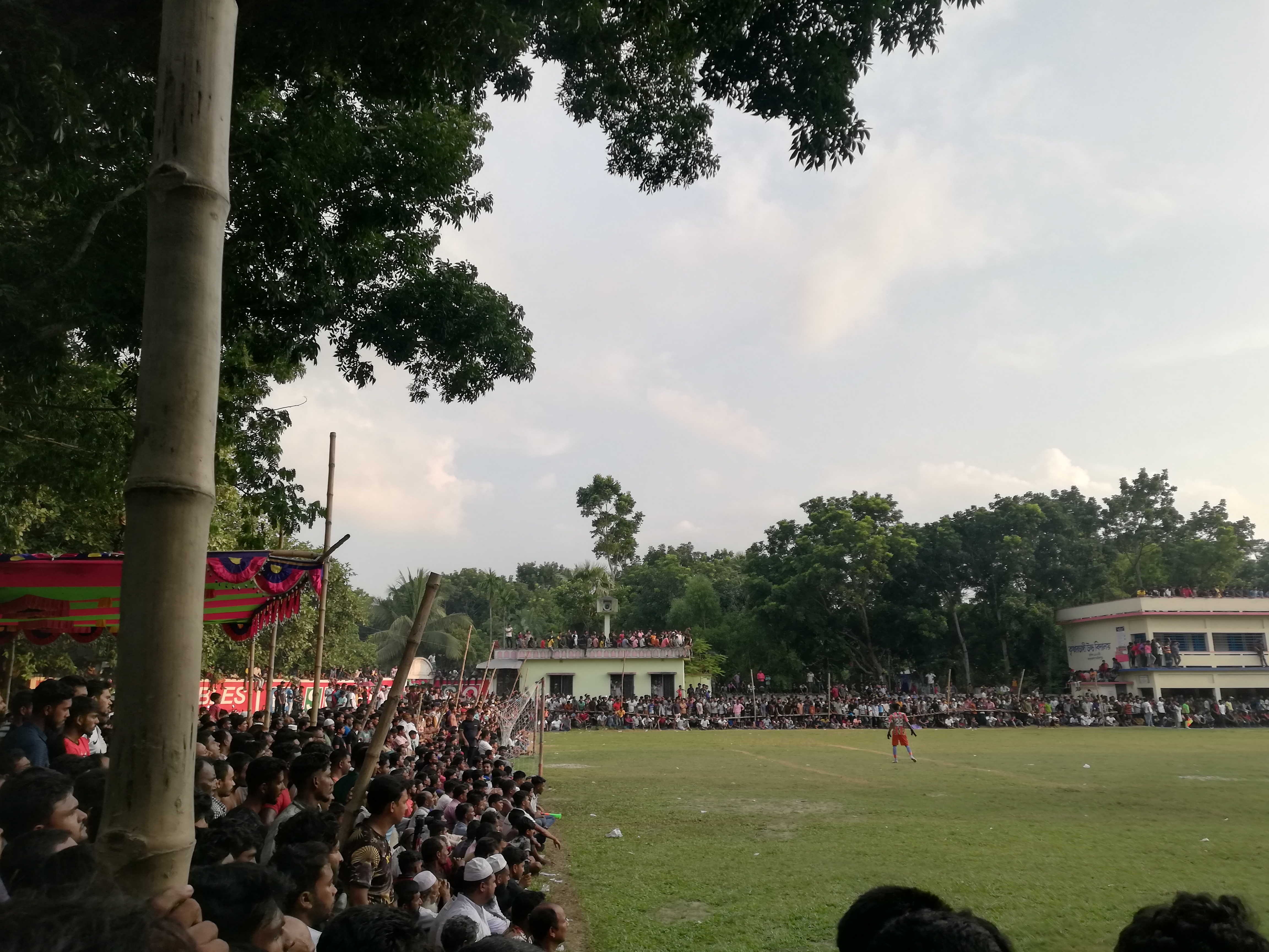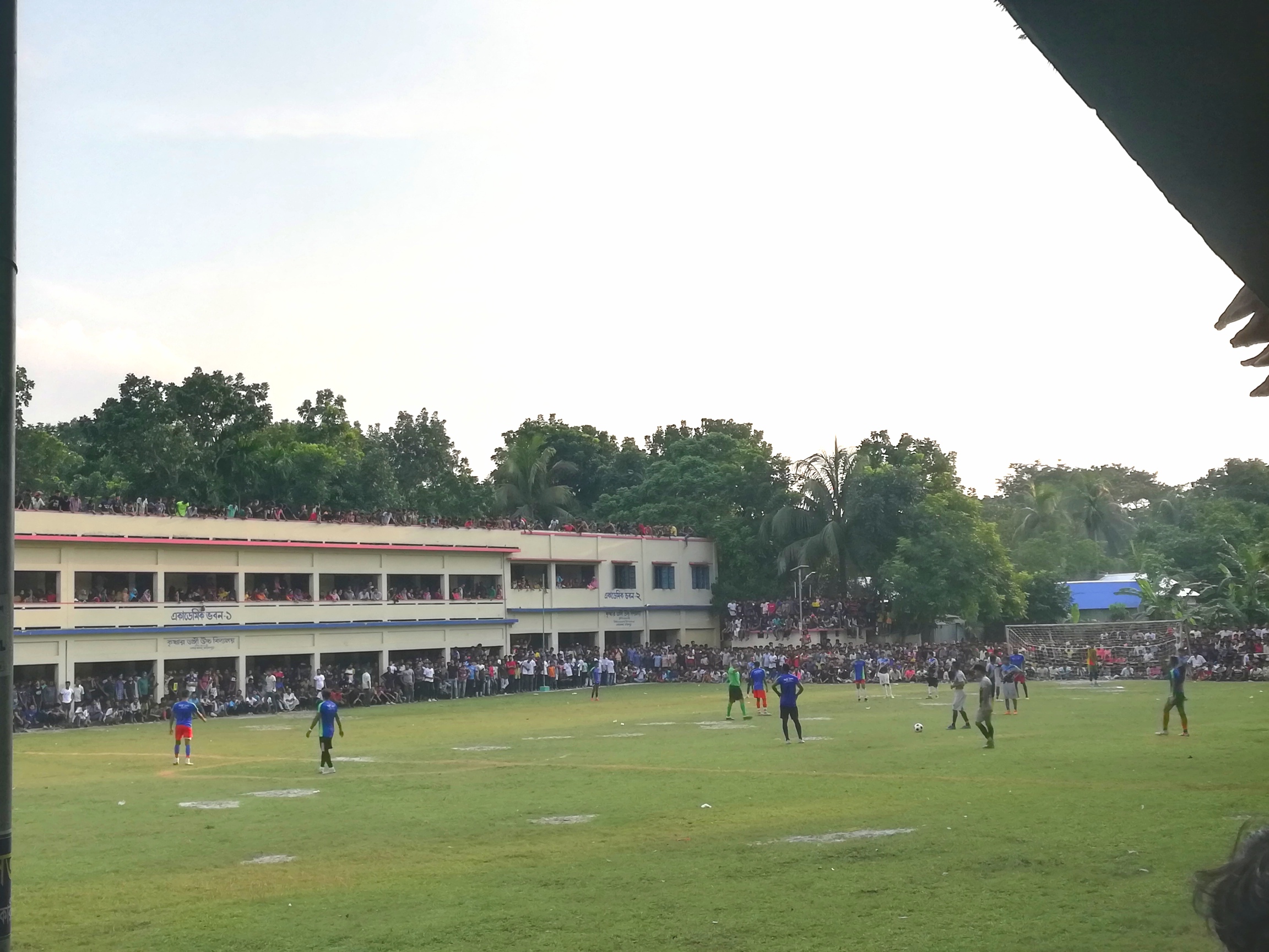 প্রথমে আমরা বুঝতে পারিনি খেলা কতক্ষন হয়েছে। পরে আশেপাশের লোকজনের কাছ থেকে জানতে পারলাম অল্প কিছুক্ষণ হলো খেলা শুরু হয়েছে। খেলার মাঠে পৌঁছে আমি পুরোপুরি অবাক হয়ে গেলাম। অনেকে মনে করে বাংলাদেশের সবচাইতে জনপ্রিয় খেলা ক্রিকেট। কিন্তু এই খেলার মাঠের ছবি দেখলে যে কেউ বুঝতে পারবে বাংলাদেশে এখনও ফুটবলের জনপ্রিয়তা কতখানি। খেলার পুরো মাঠের চারপাশে তিল ধারণের ঠাঁই নেই। এত দর্শক কোন স্থানীয় ক্রিকেট ম্যাচে কখনোই আমি দেখিনি।