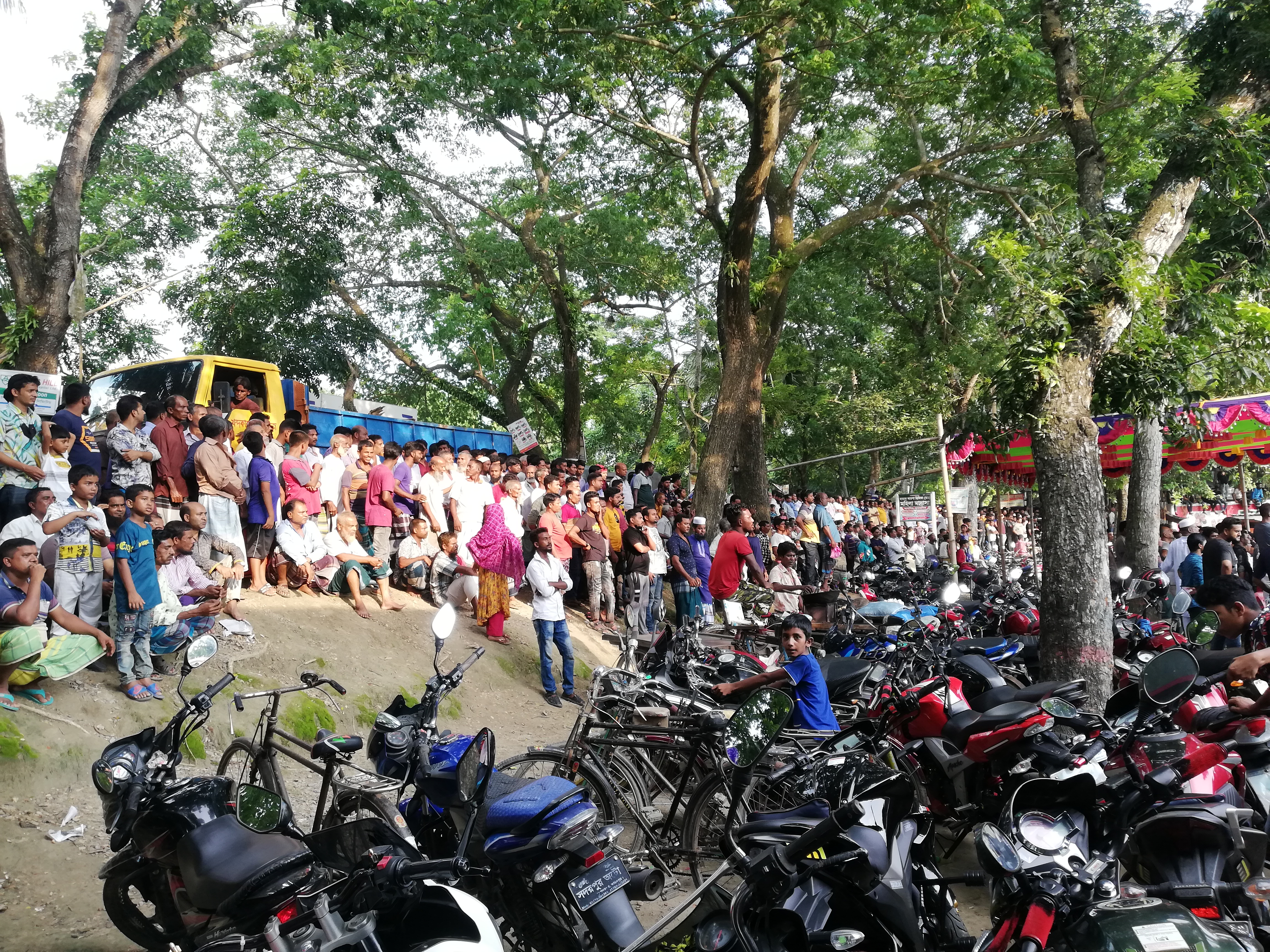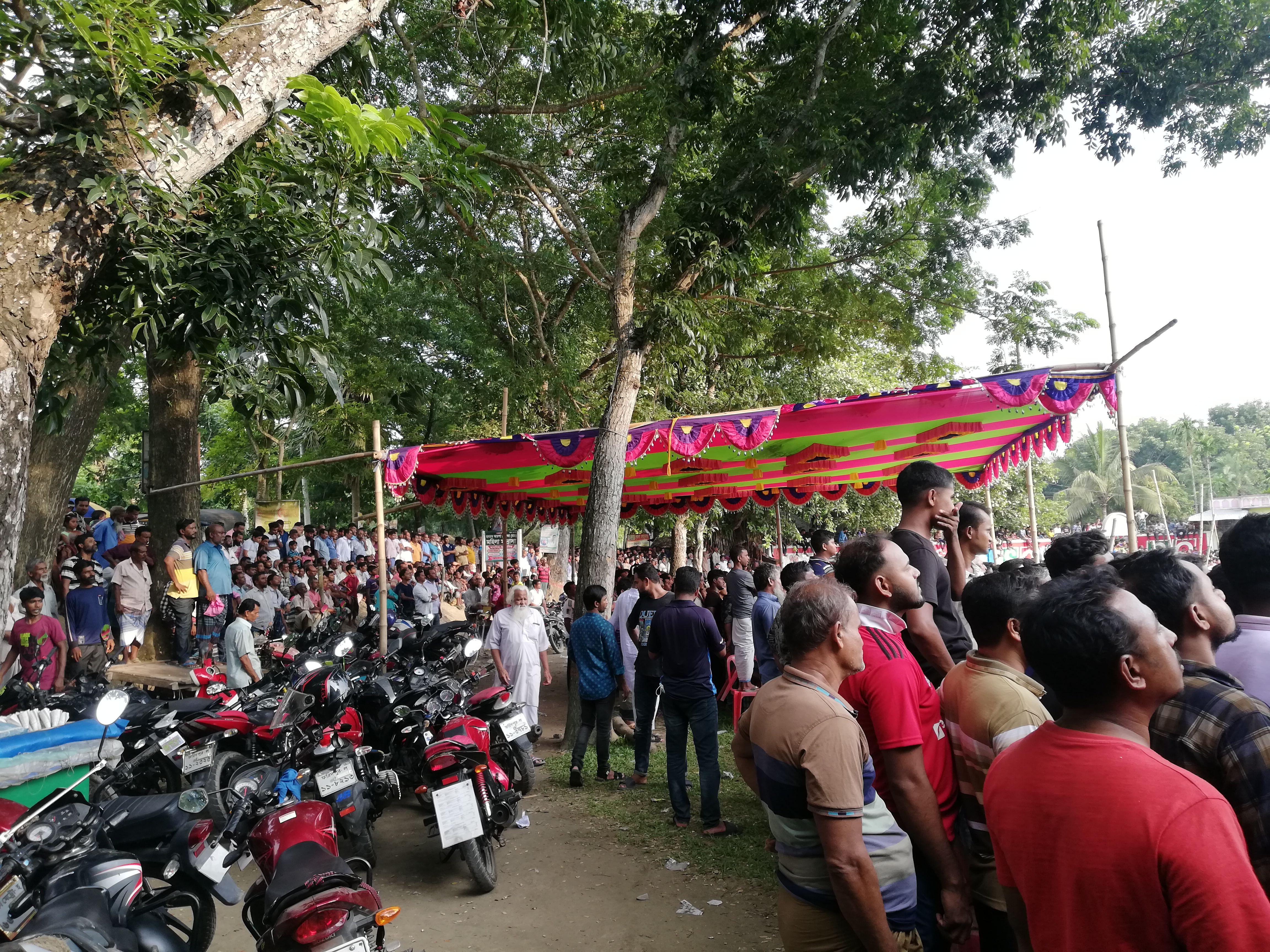 লোকজনের প্রচন্ড ভিড় হওয়ার কারণে এর ভিতর থেকে ভালোমতো ছবিও তুলতে পারিনি। লোক বেশি হওয়ার আরো একটা কারণ হচ্ছে সবার মুখে মুখে বিদেশি প্লেয়ারের কথা ছড়িয়ে পড়েছে। আমরাও মাঠে পৌঁছে সে প্লেয়ার গুলো খুঁজতে লাগলাম। পরে দেখতে পেলাম আফ্রিকান ৩-৪ জন প্লেয়ার এসেছে। তবে তাদের খেলা দেখে আমার সন্দেহ হলো তারা আদৌ ফুটবল ভালোমতো খেলতে পারে কিনা। কারণ তাদের থেকে আমাদের স্থানীয় প্লেয়াররাই ভালো খেলছিলো। বেশ কিছুক্ষণ এভাবে খেলা দেখার পর প্রথমার্ধ সমাপ্ত হলো গোলশূন্যভাবে।