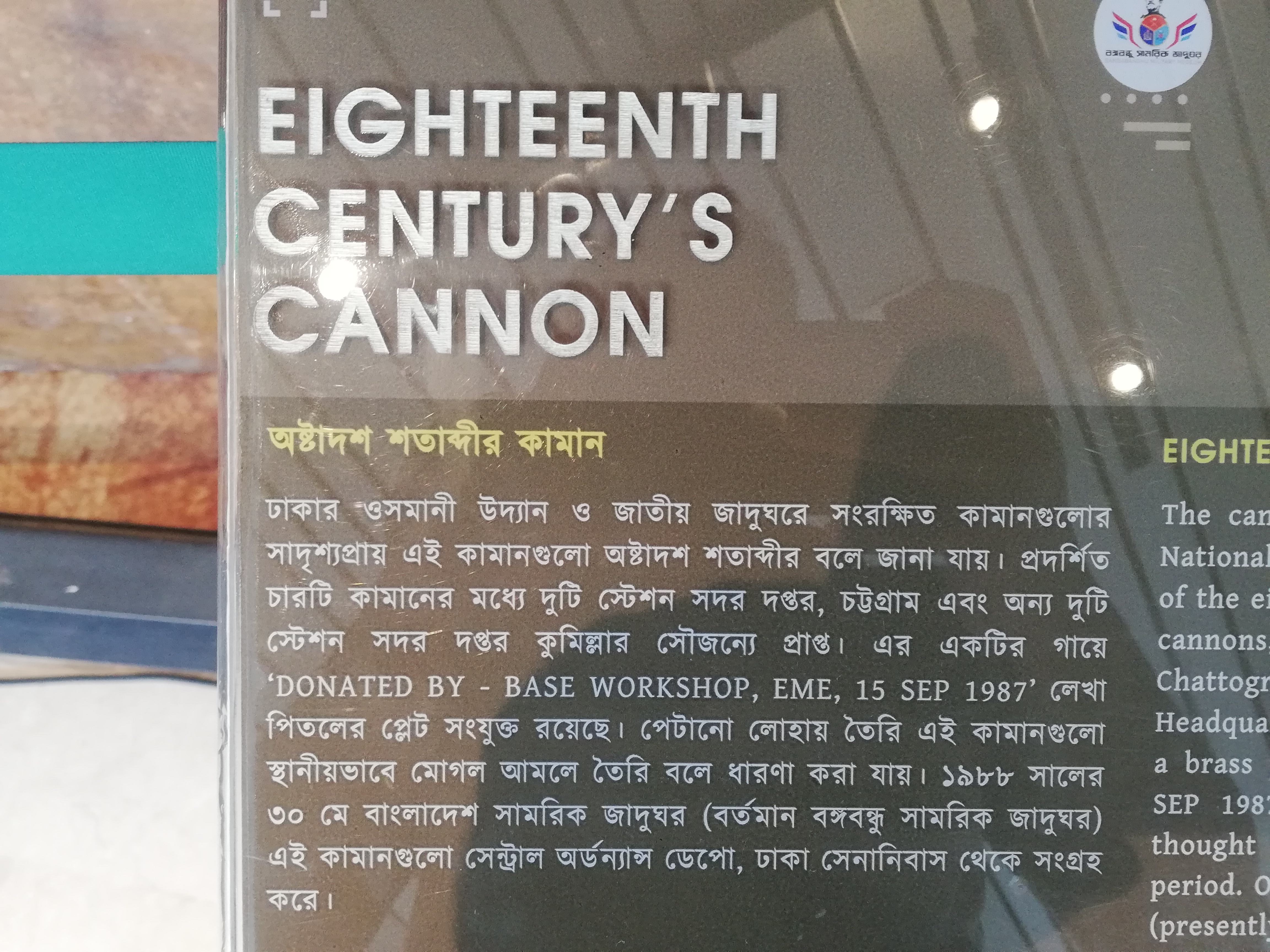 টিকেট কেটে সামরিক জাদুঘরে ঢুকতেই আমার ভেতরে দারুণ এক ভালোলাগার অনুভূতি তৈরি হোলো। কারণ ছোটবেলা থেকেই আমার সামরিক বিভিন্ন বিষয়ের প্রতি ব্যাপক আগ্রহ ছিলো। সামরিক জাদুঘরে ঢুকেই প্রথমে দেখতে পেলাম মেটাল দিয়ে কিছু ভাস্কর্য তৈরি করা হয়েছে। সেগুলো দেখতে একেবারে জীবন্ত লাগছিলো। মনে হচ্ছিলো সামরিক বাহিনীর কমান্ডোরা আমাদের দিকে বন্দুক তাক করে রয়েছে। যাই হোক সেটার ছবি তুলে আমরা মিউজিয়ামের গেটের দিকে এগিয়ে গেলাম। সেখানে মেটাল ডিটেক্টর এর ভেতর দিয়ে সবাইকে মিউজিয়ামে প্রবেশ করতে হচ্ছিলো। আমার ভেতরে প্রবেশ করেই প্রথমেই হাতের ডানে দেখতে পেলাম একটি প্রাচীন যুদ্ধে ব্যবহৃত একটি কামান। কামানটা সাইজে বেশ বড় ছিলো। সেখানে পাশে লেখা ছিল টুয়েলভ পাউন্ডার গান। সম্ভবত এই কামানটি ১২ পাউন্ড ওজনের গোলা নিক্ষেপ করতে পারতো। কামানটি রাখা ছিল একটি মুভিং স্ট্যান্ড এর উপরে। যার ফলে কামানটি ঘড়ির কাটার মত ঘুরছিলো। দেখতে বেশ ভালো লাগছিলো। কামানের পাশেই একটি জায়গায় বাংলায় কামানের ব্যবহারের ইতিহাস সম্বন্ধে লেখা ছিলো।