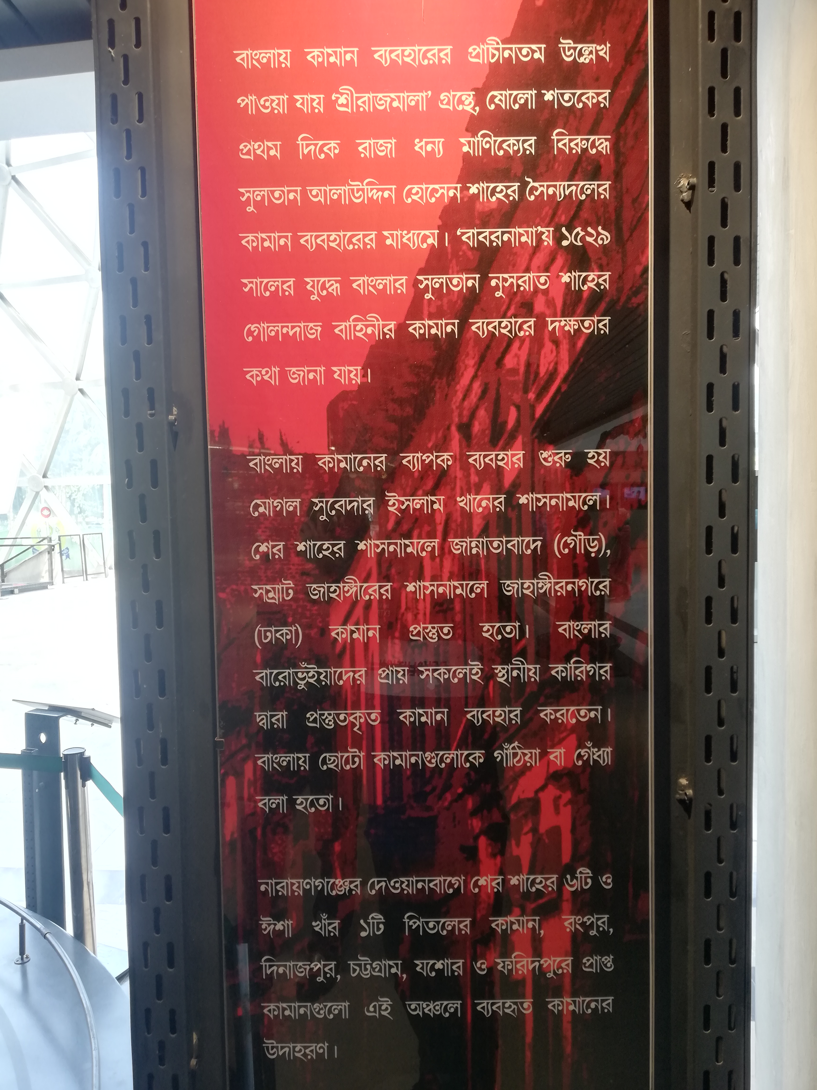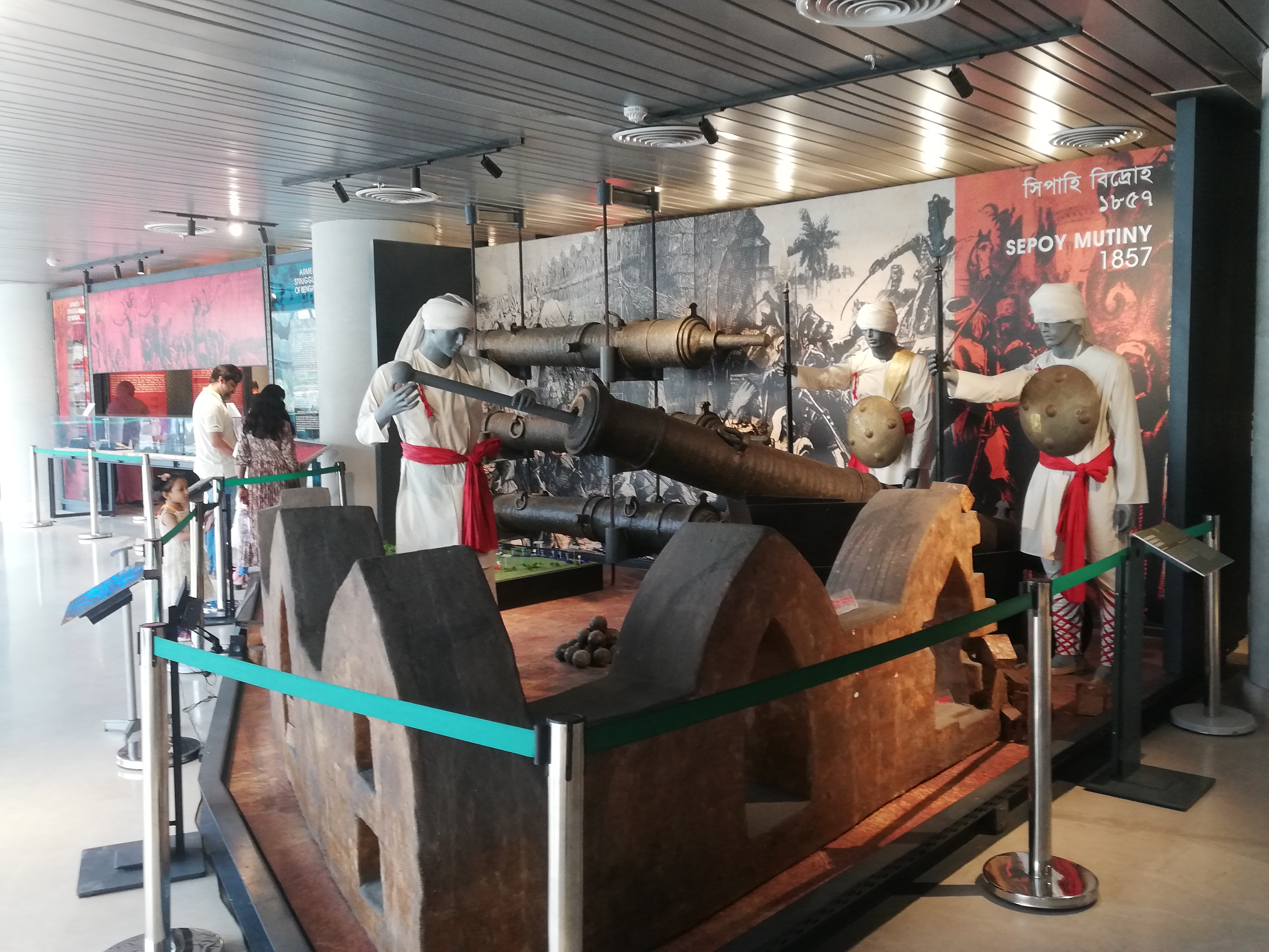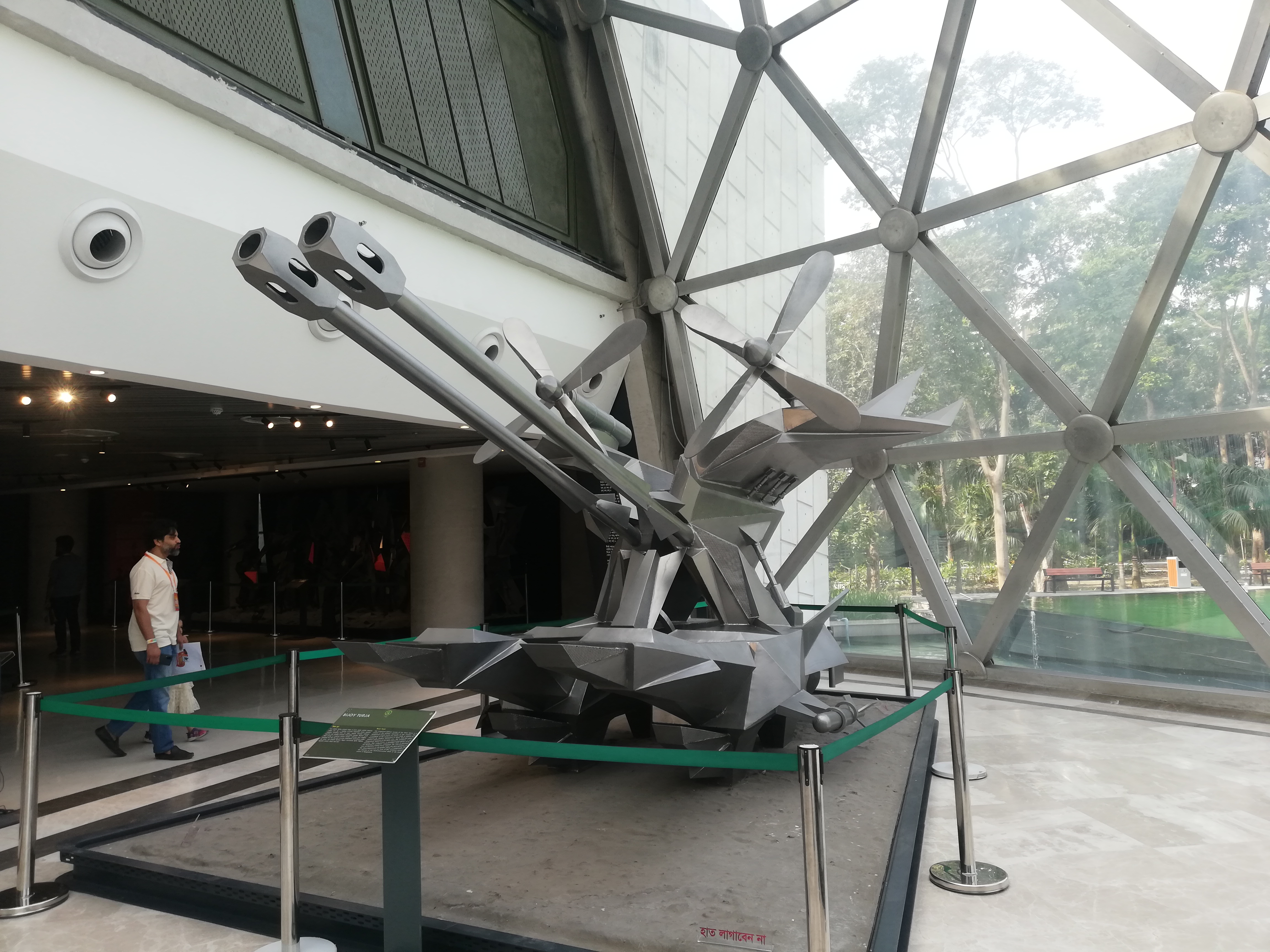 বড় কামানটি দেখা শেষ হলে আরো একটু সামনে এগিয়ে দেখলাম সেখানেও আরো একটি কামান রয়েছে। তবে কামানের সাথে সেখানে কিছু মানুষের প্রতিকৃতিও তৈরি করা হয়েছে। কামান কিভাবে ব্যবহার করা হতো সেটা সেই প্রতিকৃতি গুলোর মাধ্যমে দেখানো হয়েছে। সেই কামানের পাশেও কামান গুলোর ইতিহাস সম্বন্ধে কিছু লেখা ছিলো। আমার কাছে মিউজিয়ামের বিষয়গুলোর যেভাবে সাজানো হয়েছিল সেটা দেখে বেশ ভালো লাগছিলো। আপনি মিউজিয়ামে ঢুকেই প্রথমে চলে যাবেন কয়েক শতাব্দী পেছনে। তারপর আস্তে আস্তে ধারাবাহিকভাবে দেখতে থাকলে আপনি বর্তমানের দিকে আগাতে থাকবেন। সেভাবেই মিউজিয়ামে সবকিছু সাজিয়ে রাখা হয়েছিলো। দ্বিতীয় কামানটি দেখা শেষ হলে হঠাৎ করে একটি অদ্ভুত অবয়বের দিকে নজর গেলো। সেটার কাছে গিয়ে দেখতে চেষ্টা করলাম আসলে বিষয়টা কি? দেখলাম শিল্পী মনের ছোঁয়ায় এক ধরনের ত্রিমাত্রিক অস্ত্রের মডেল গড়ে তোলা হয়েছে। জিনিসটা দেখতে ফিউচার ওয়েপনের মতো লাগছিলো। প্রথমে আমি মনে করেছিলাম সেটা মনে হয় কোন এনটি এয়ারক্রাফ্ট গান হবে। পরে কাছে গিয়ে সেই জিনিসটার পাশে যেখানে সেই কাল্পনিক অস্ত্র নিয়ে কিছু লেখা ছিল সেটা পড়ে বিষয়টা বুঝতে পারলাম। তার একটু পাশেই দেখতে পেলাম প্রাচীন সময়ের একটি নৌকার মডেল তৈরি করে রাখা হয়েছে। (চলবে)