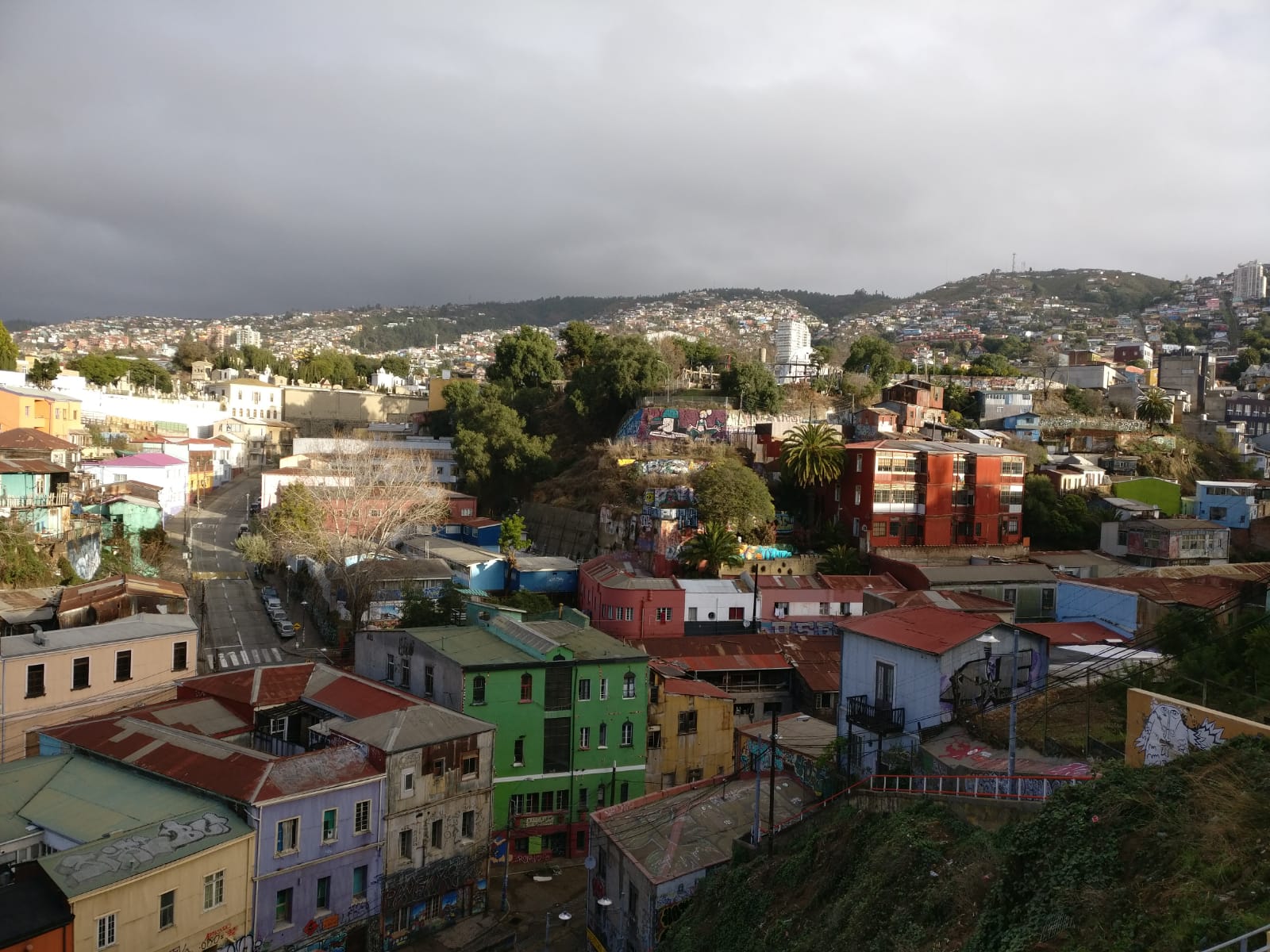 At seven o'clock in the morning we started preparing for our bus trip in the north. after a small breakfast the friend of the resident of selina took us to the bus station. lea went through the market again to buy fruit for me and ham and cheese for her. then we got on the bus and drove away from valpo.
