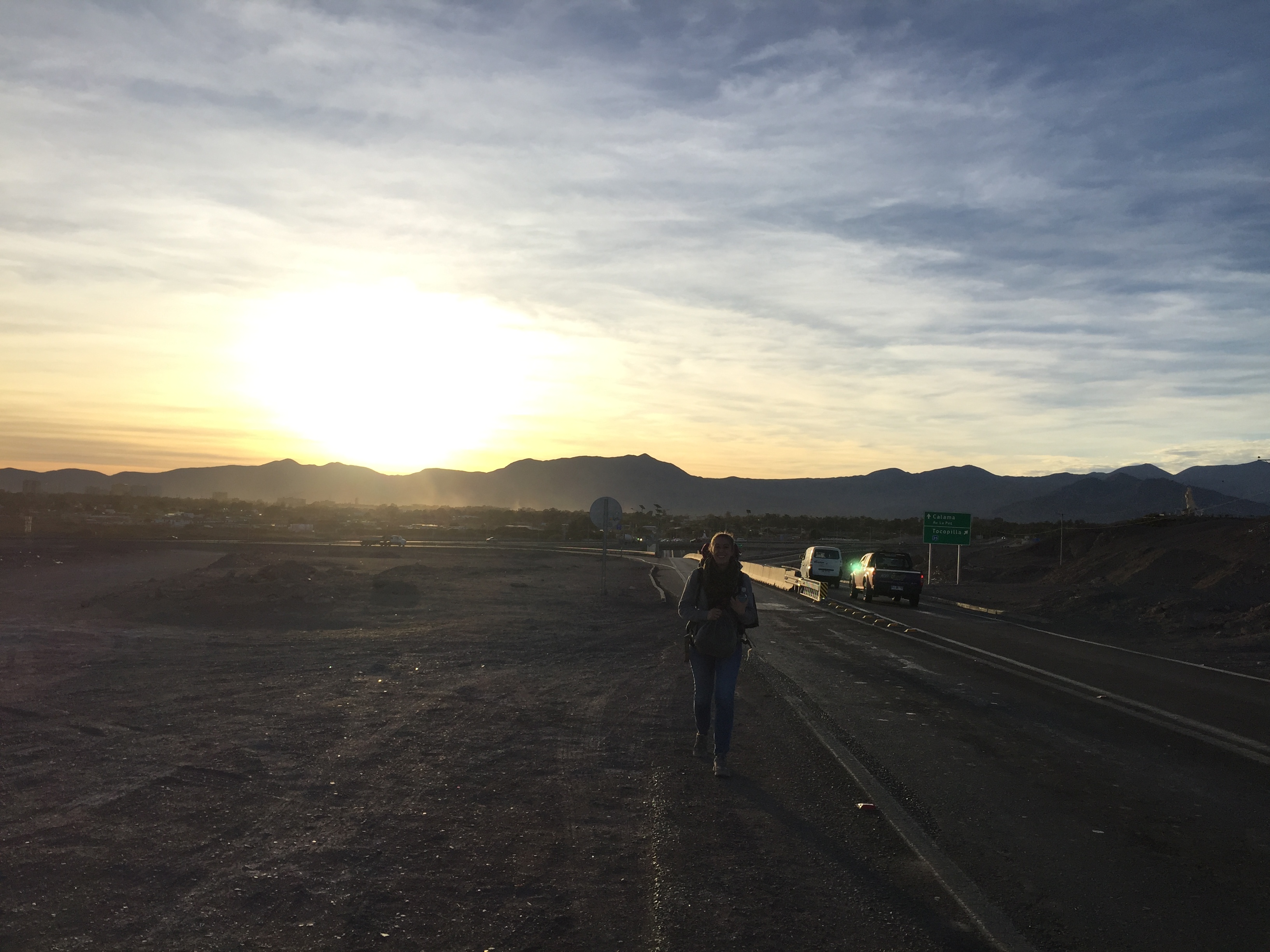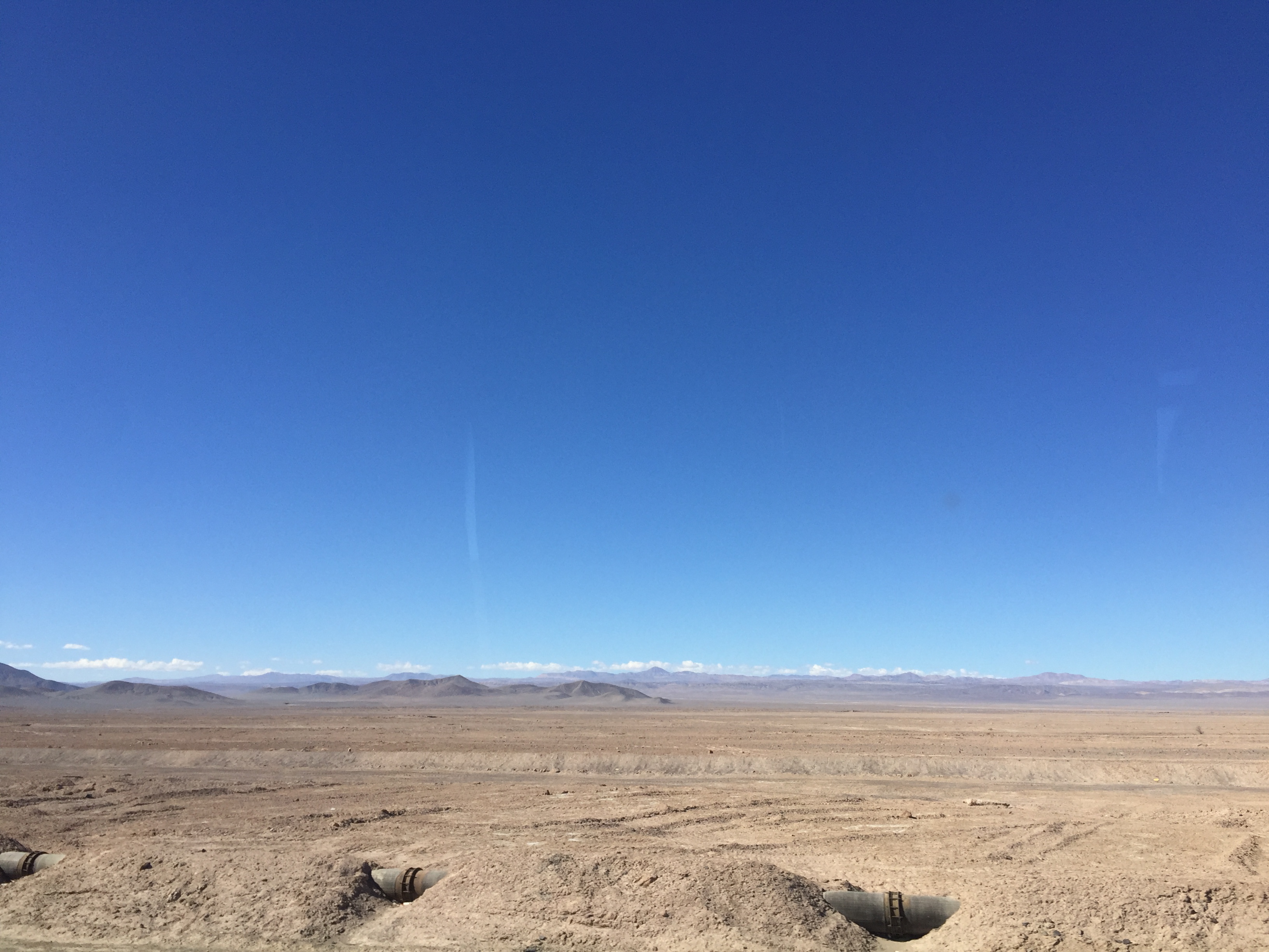 the only thing you can see through the window are desert and mountains. After about 14 hours bus ride we arrived in calama. I found a nice chilean on the couchsurfing app that could house us for one night. his name is francisco and his house is wonderful.