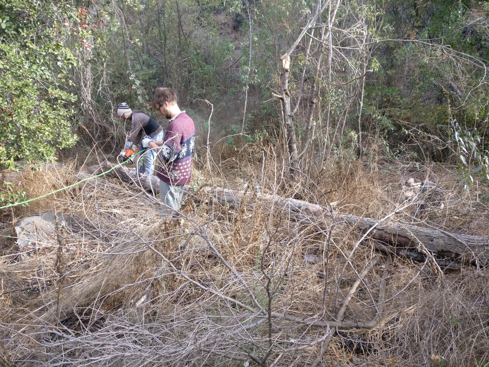 This morning we went to the forest to cut a tree and hack two. so i threw a rope around the trunk like a lasso, then pulled it to one side while juan sawed the tree, it fell in the right direction. After we sawed everything, we carried all the pieces behind the house. It took almost two hours to do the whole job, but it was like working a whole day.