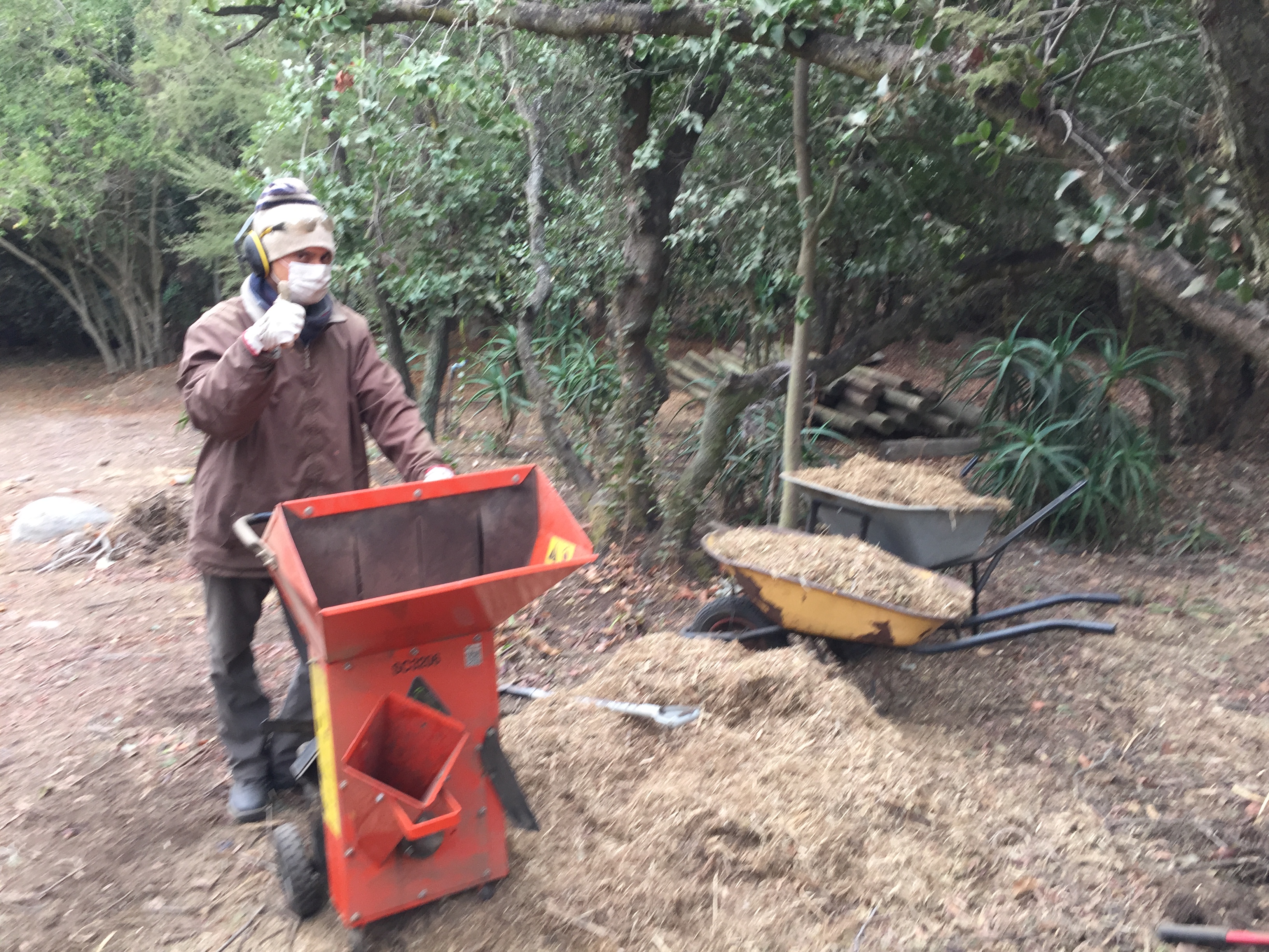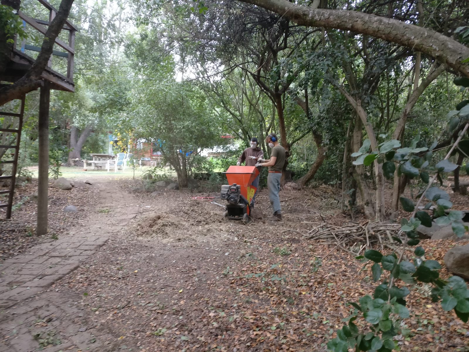 then we continue to work on the hill and plant the remaining trees. We finished the day after shredding a heap of branches with a chipiar.