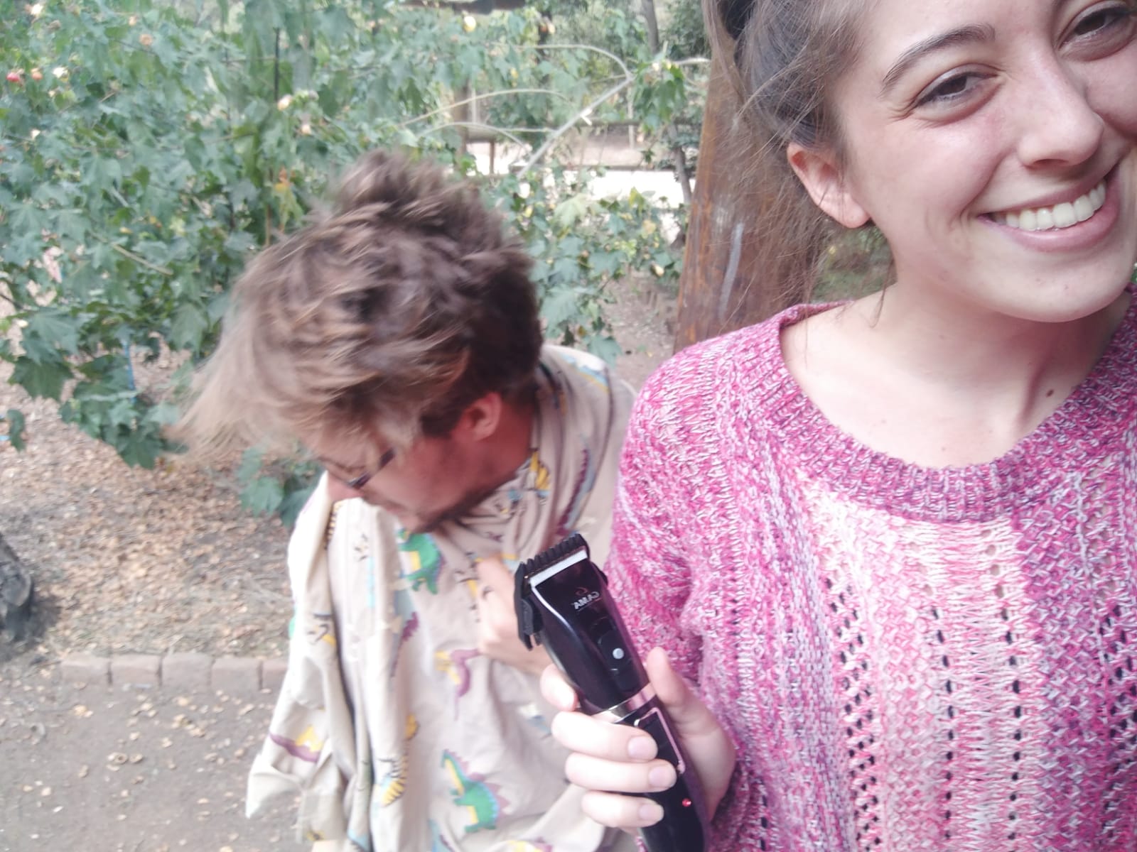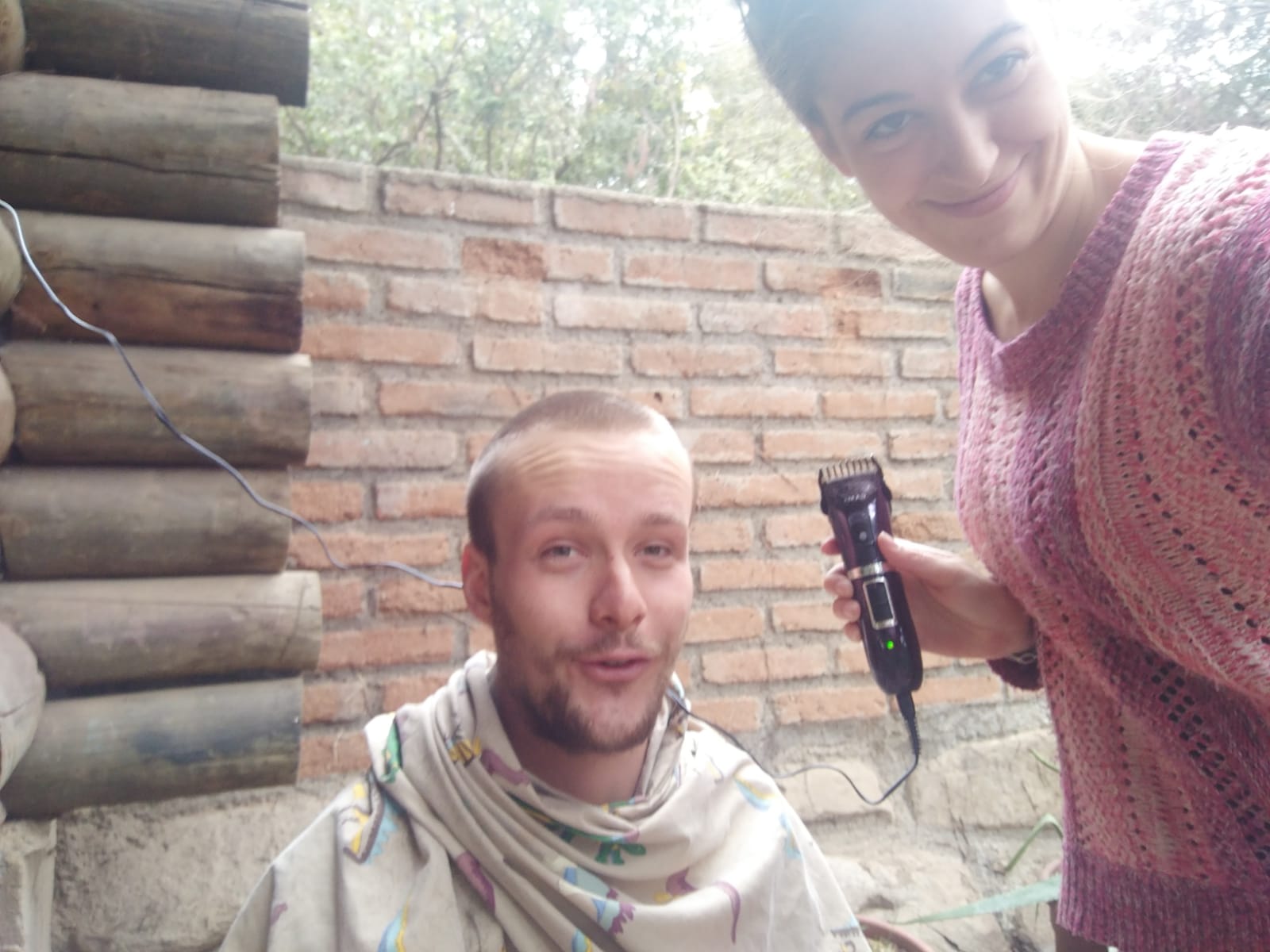 We drove to the neighbor's house to fetch wood there and saw it off before we took it home. We then put the fridge in the big house and Juan lent me his razor so lea can cut my hair.