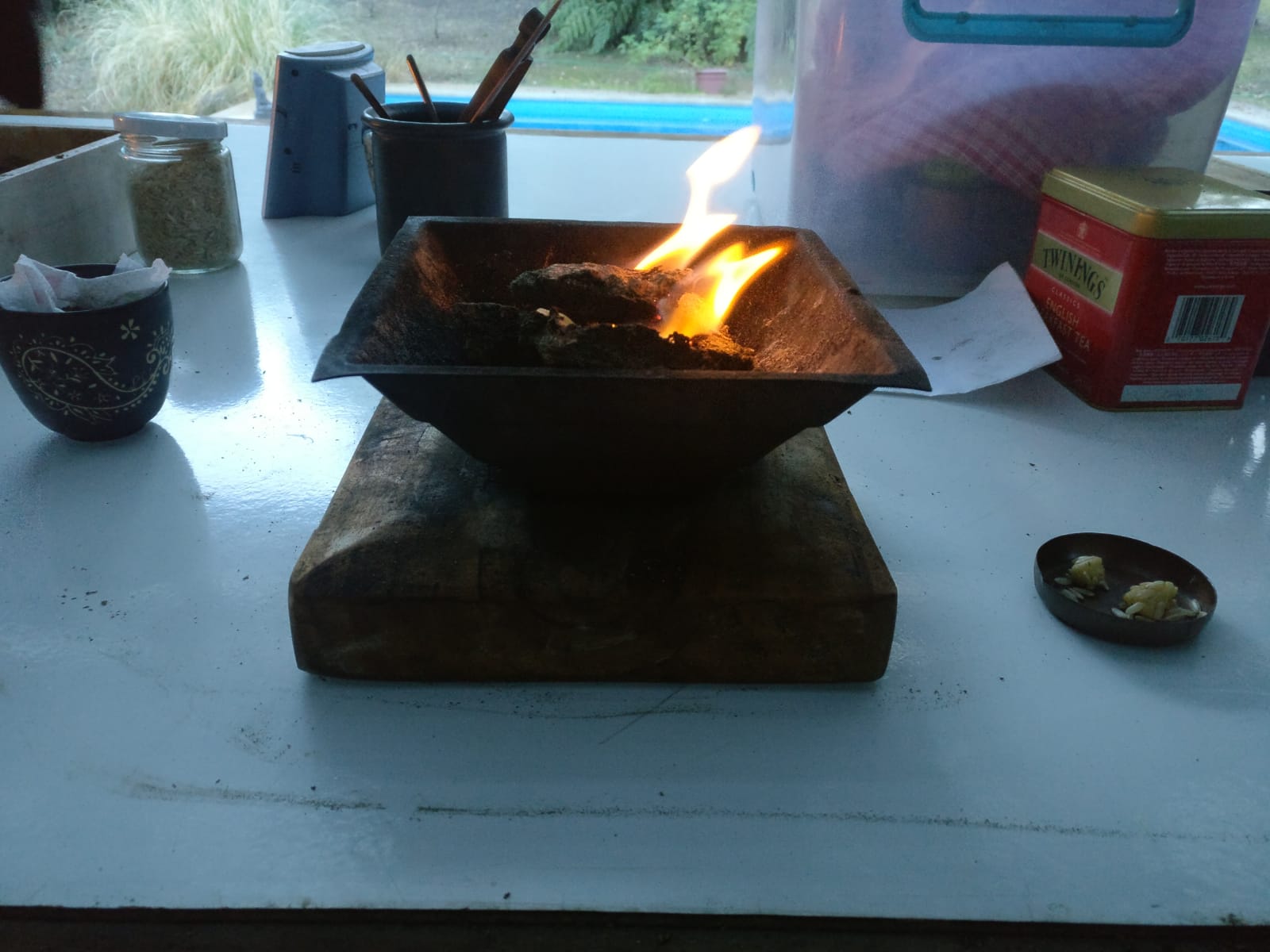 at 7:47 am the agnihotra started today. Then we lit the fireplace and prepared for the breakfast.