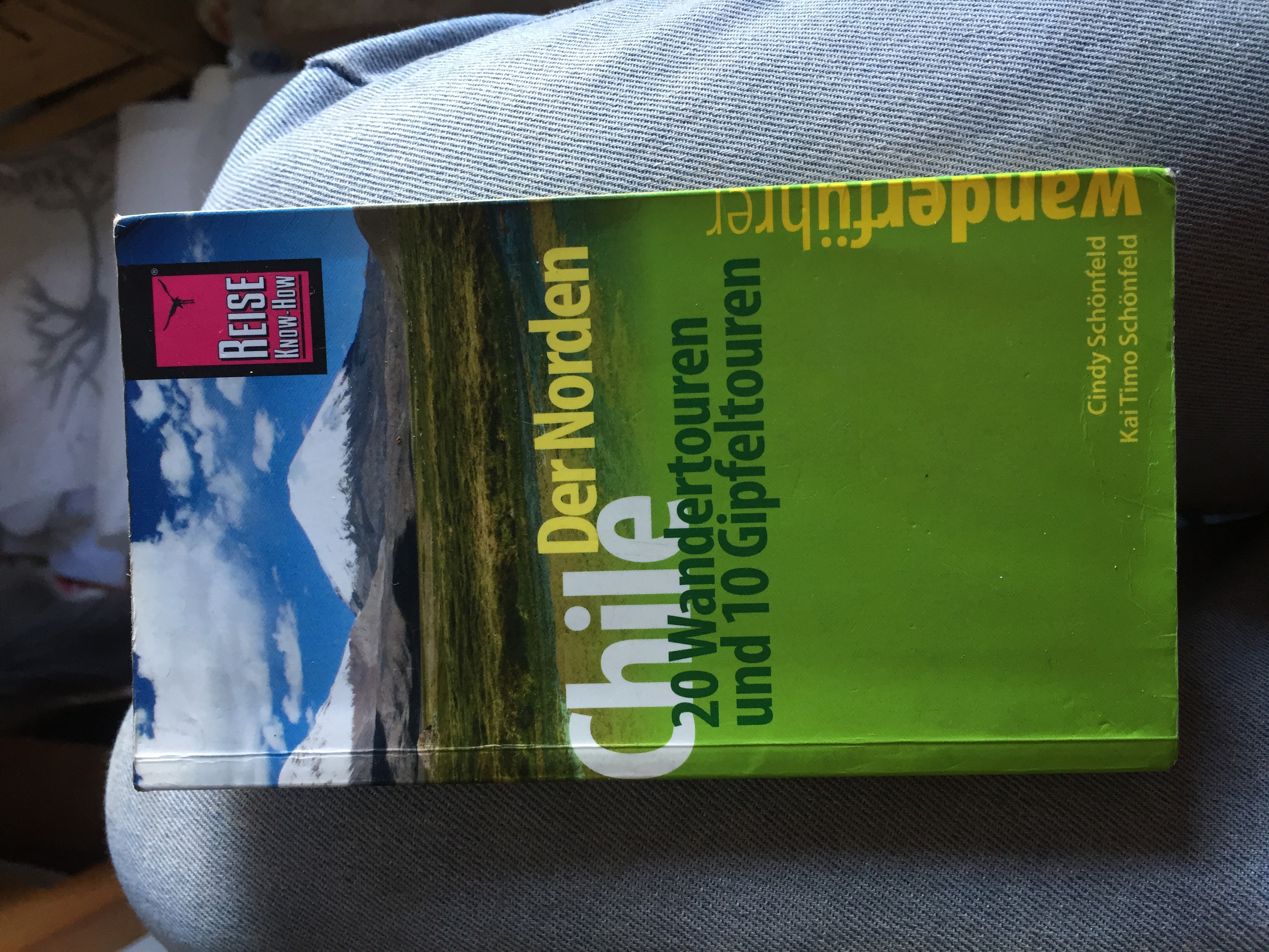 Shortly after the agnihotra I learned from lea that unfortunately she would not arrive in santiago until the next day. Her plane had mechanical problems and she would sleep one night in London. So I will not go to santiago until Wednesday to pick them up. After dinner I photographed the hiking book, which I borrowed from selina. There are some beautiful trails in the north of Chile, one of which lea and I might want to run one or two.