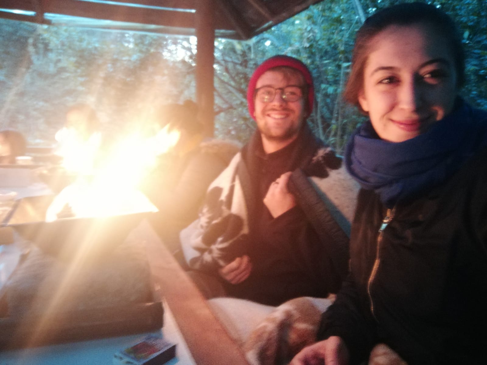 After we had dinner, we returned to the bungalow until the washing machine was ready. During the night, we hang the things in our "living room" so that they dry with the heat of the fire.