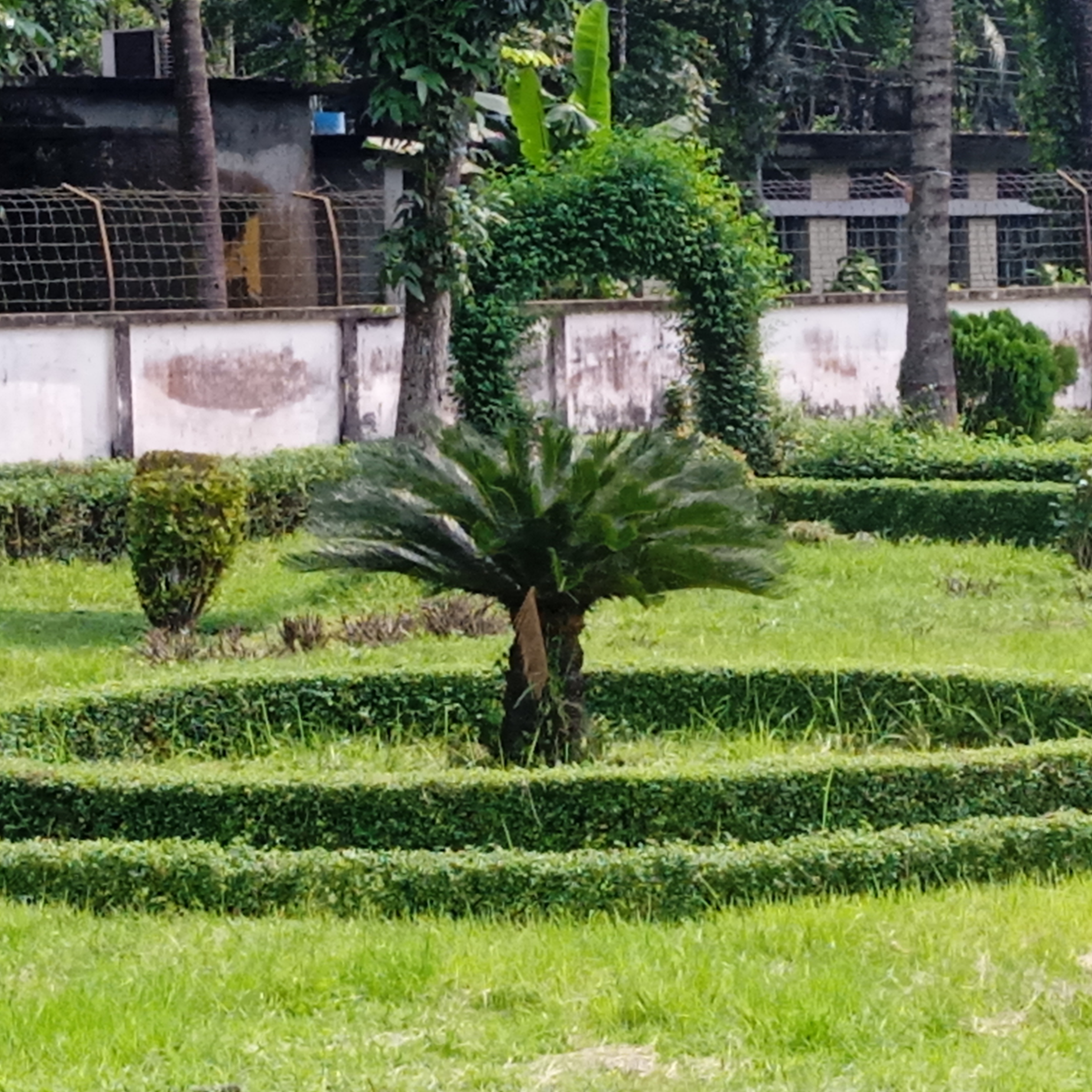 গত পর্বে রংপুর রাজবাড়ি নিয়ে সূচনা পর্ব করেছিলাম এবং শুরুর দিকের বেশ কিছু বিষয় নিয়ে আলোচনা করেছি। উপরে যে ফটোগ্রাফিটি দেখতে পাচ্ছেন এই রাস্তাটি পাবেন হচ্ছে মেনগেট দিয়ে ঢুকেই হাতের ডানদিকে পড়বে। আমি এদিকে ঢোকার অনিচ্ছা সত্বেও ঢুকে গেলাম। কারণটা হচ্ছে চতুর দিকে সবুজ আর সবুজ একটু বেশি ভালো লাগা কাজ করছিল এজন্যই এ রাস্তা দিয়েই ঢুকে গেলাম। আমি আবার একটু প্রকৃতিপ্রেমী মানুষ ও বটে। তো একটি বিষয় লক্ষ্য করে দেখেন এখানে এই রাস্তাটির দু-ধার দিয়ে সুন্দর করে ছোট ছোট গাছগুলোকে কেটে অনন্য রকমের সৌন্দর্য দিয়েছে। আবার মাঝে মাঝে প্রথম পর্বে দেখানো গাছ দিয়ে তৈরি করা গ্রেট এর মত করে বেশ কয়েক জায়গায় গেট বানিয়েছে তারা।