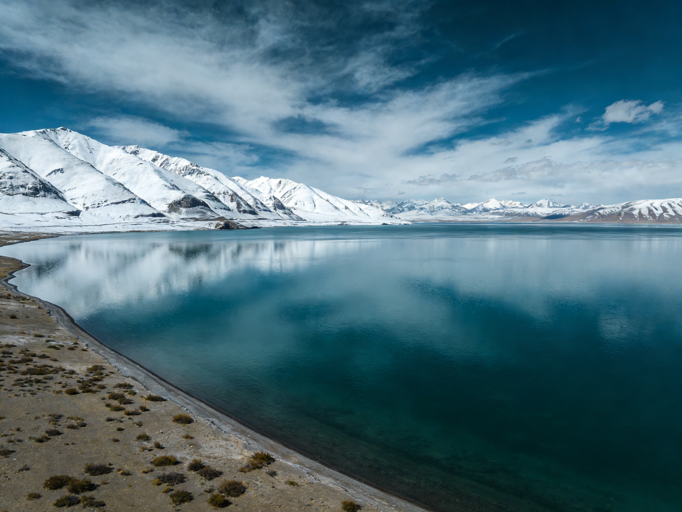 The core charm of Siling Co lies in its extreme vastness and desolation. Standing on the lakeshore and gazing into the distance, the lake water and the blue sky merge at the horizon, an endless expanse of blue spreading out. The color of the lake changes with the light and shadow, sometimes as blue as a jewel, sometimes tinged with a deep indigo. A gentle breeze ripples the surface, creating a magnificent and awe-inspiring panorama with the surrounding vast plateau meadows. The lake's shoreline meanders, interspersed with mudflats and wetlands, and dotted with gray-brown lacustrine terraces, bearing witness to the lake's millennia-long transformation. In winter, the lake freezes over, a thick layer of ice like silver armor covering its surface, contrasting beautifully with the distant snow-capped mountains, enhancing the plateau's tranquility and solemnity.