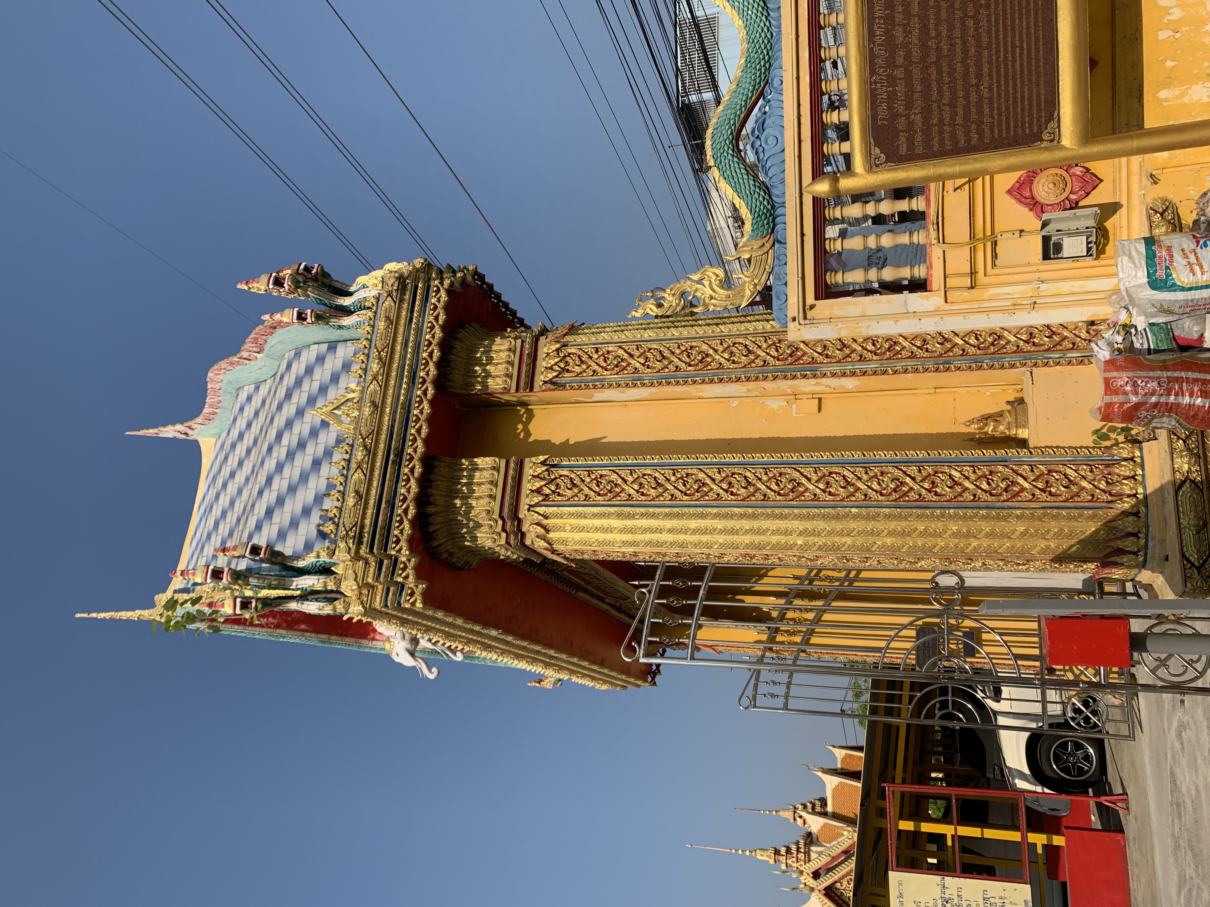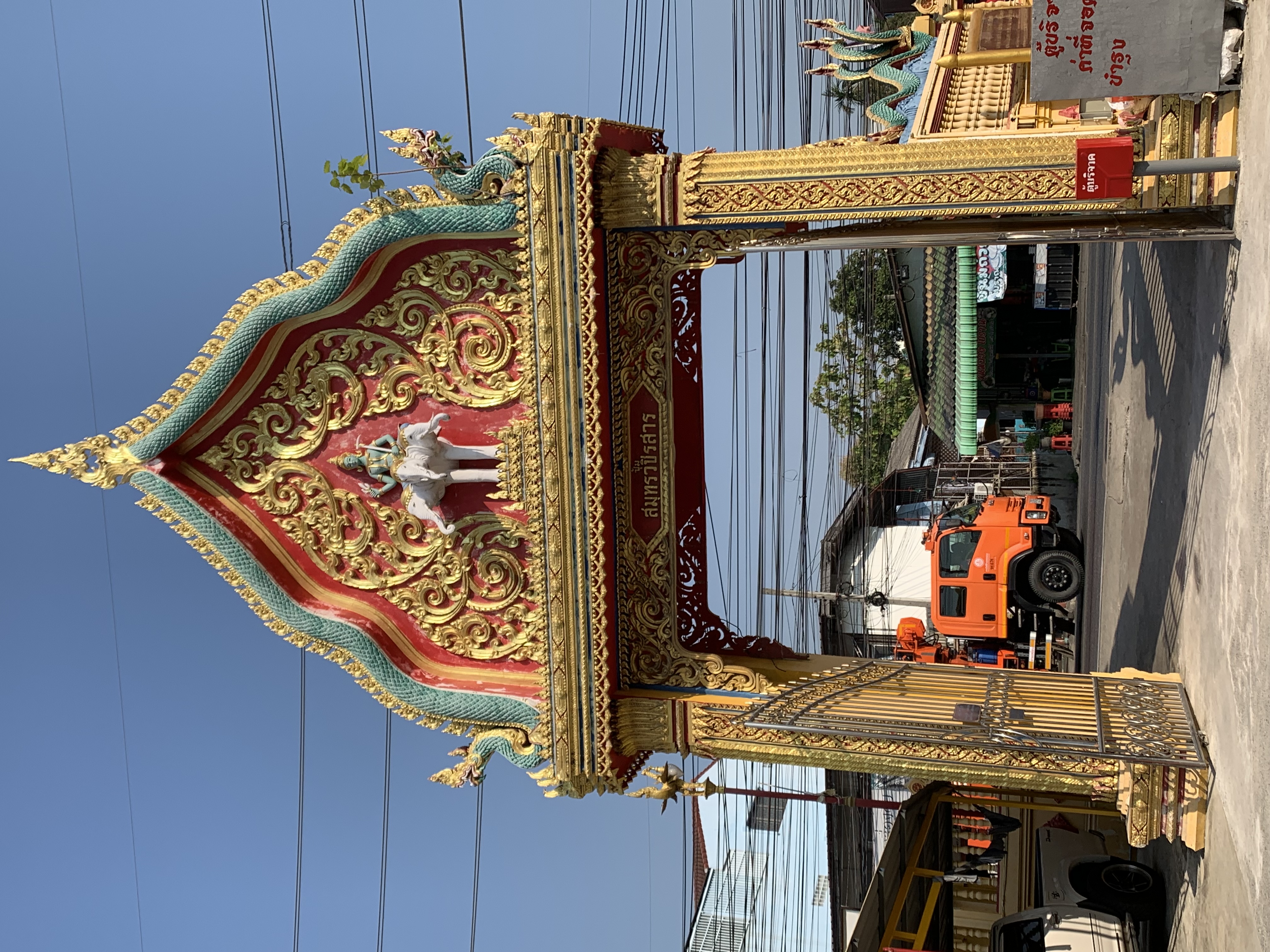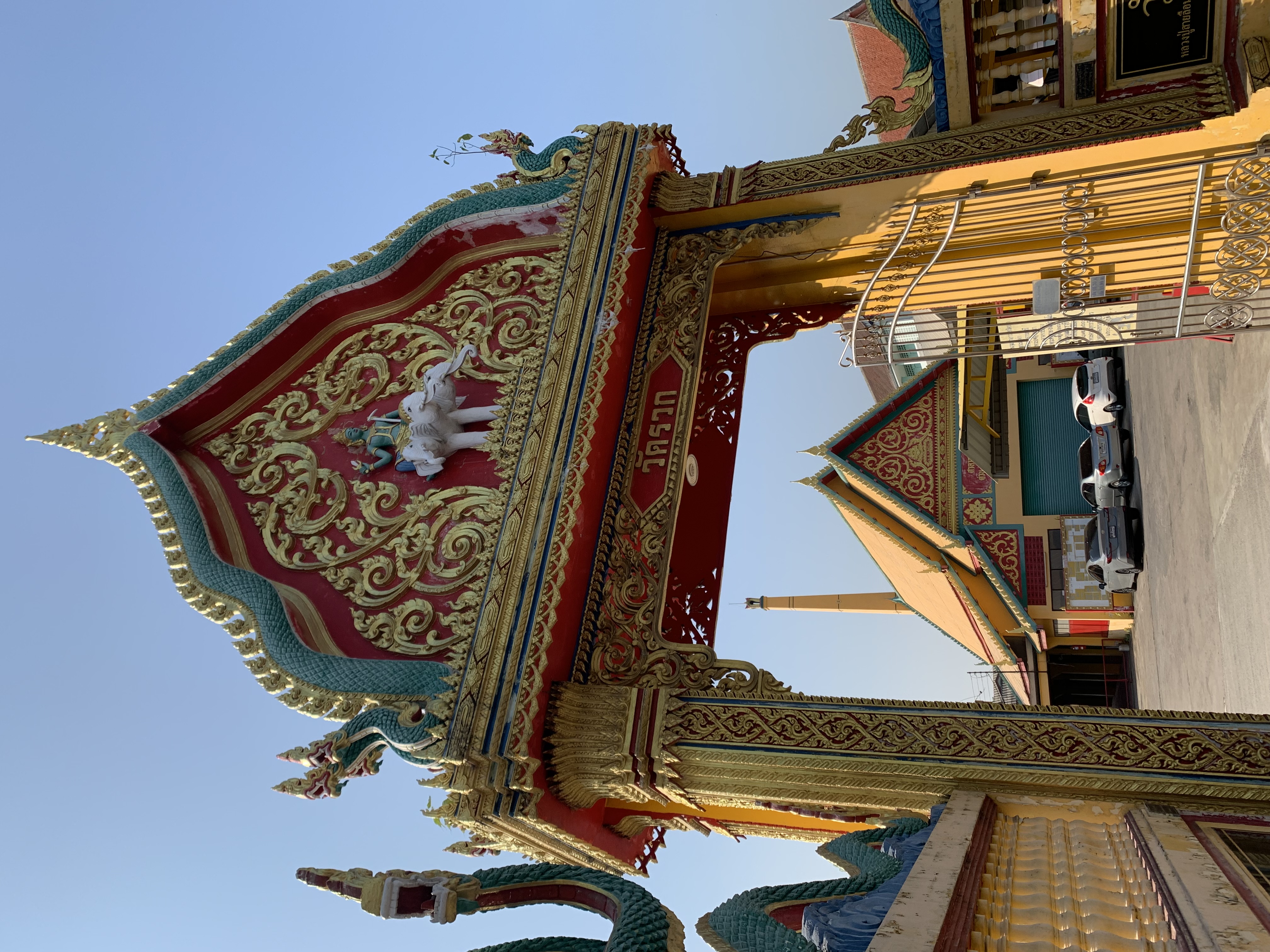 On the top of the door, you will see the sculpture of the God in green body (unfortunately, I don’t know his name.., sorry!) riding the white elephant three-head Erawan.