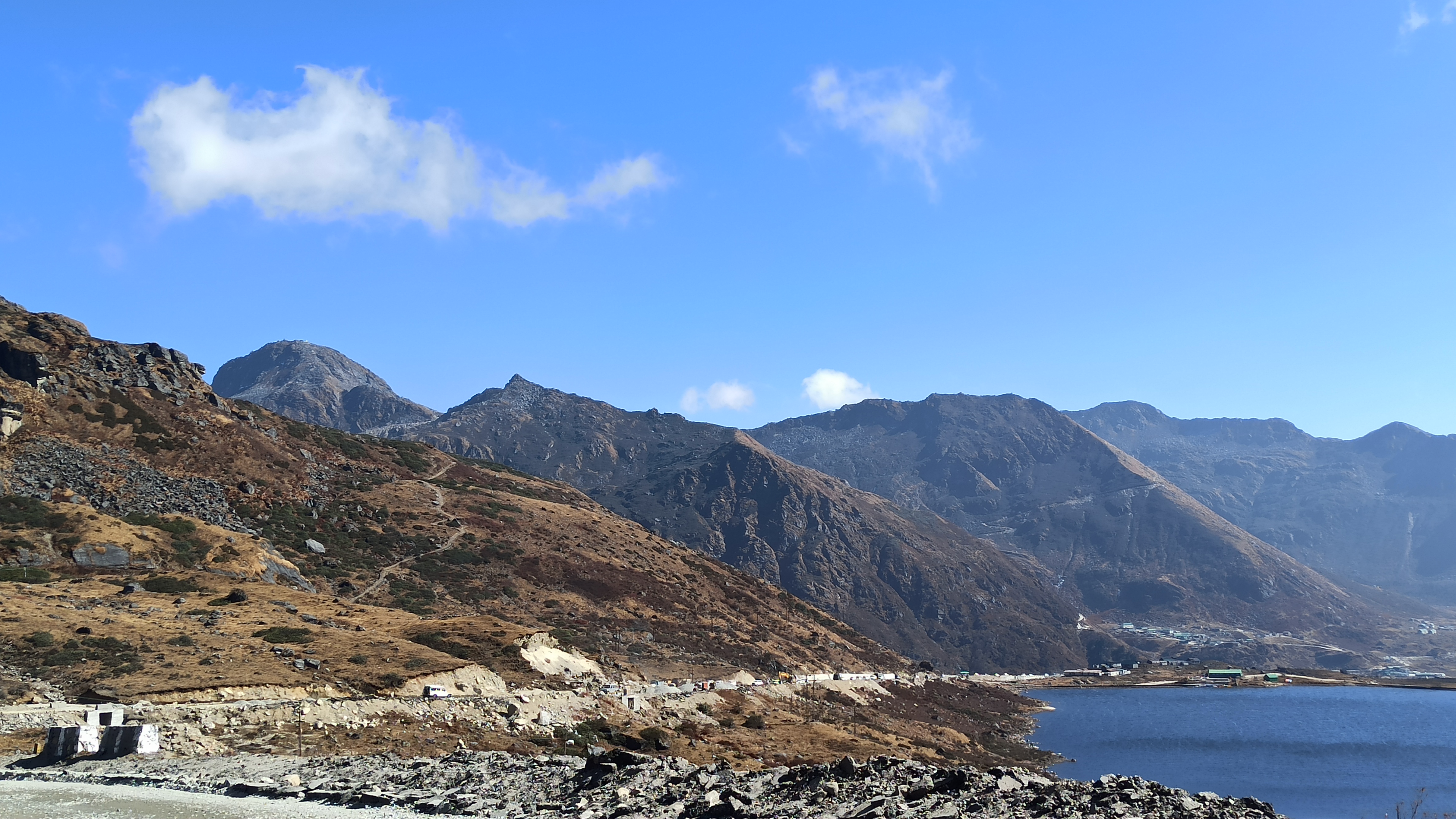 নাথুলা পাসের পাহাড়। কাছে না গেলে বোঝাই যাবে না কত টা উচুঁ পাহাড়। আমরা ১৫০০০ ফুট ওপরে উঠেছিলাম।এর উপরে উঠছিলো সবাই। আমি হটাৎ অসুস্থ হয়ে পড়ার কারণে নেমে এসেছিলাম।