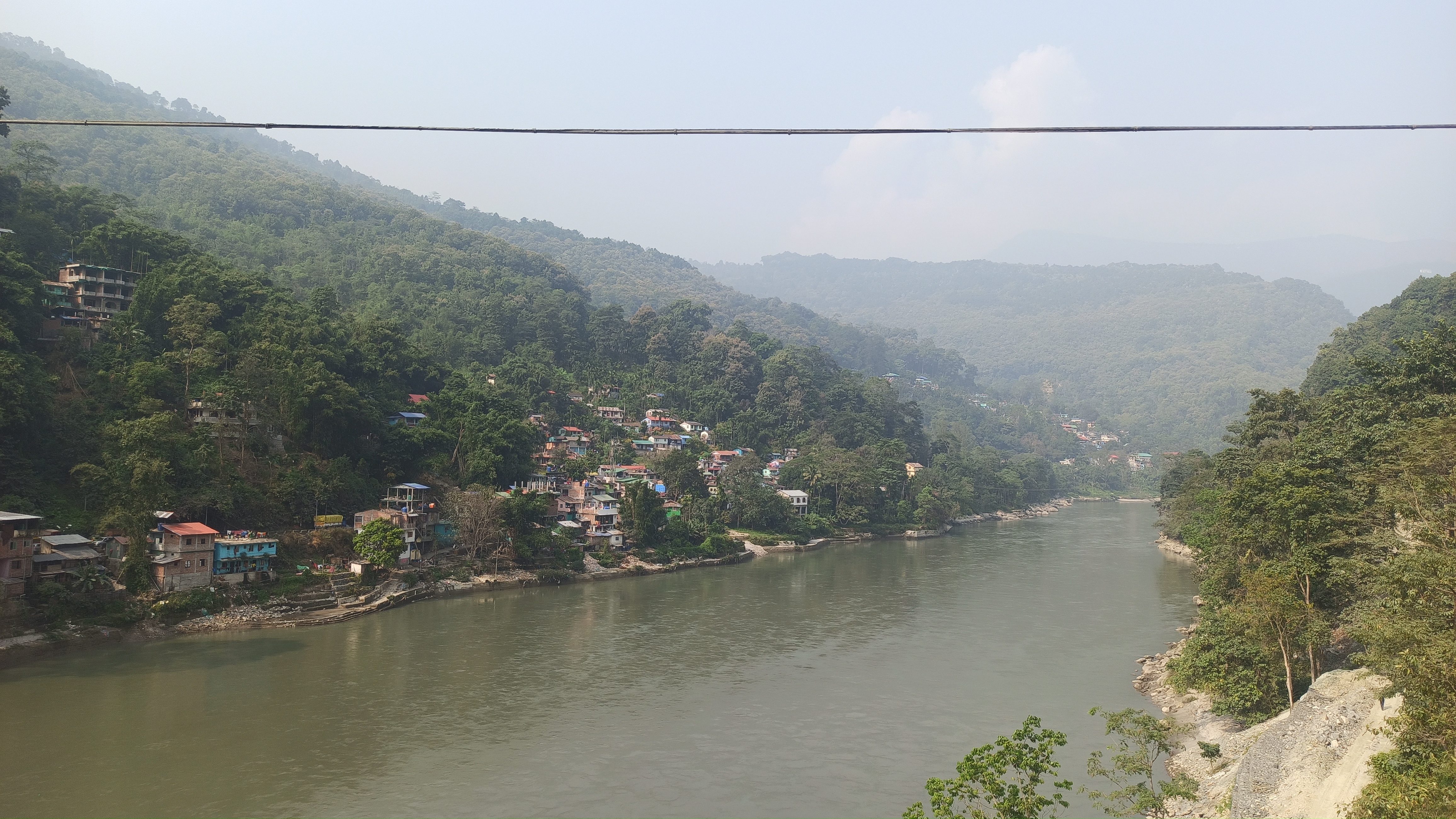 তিস্তা নদীর ওপর থেকে পাহাড়ের সৌন্দর্য। দূরের পাহাড় গুলো কুয়াশার চাদরে ঢাকা। দূর থেকে দেখতে কিন্তু বেশ লাগছে।