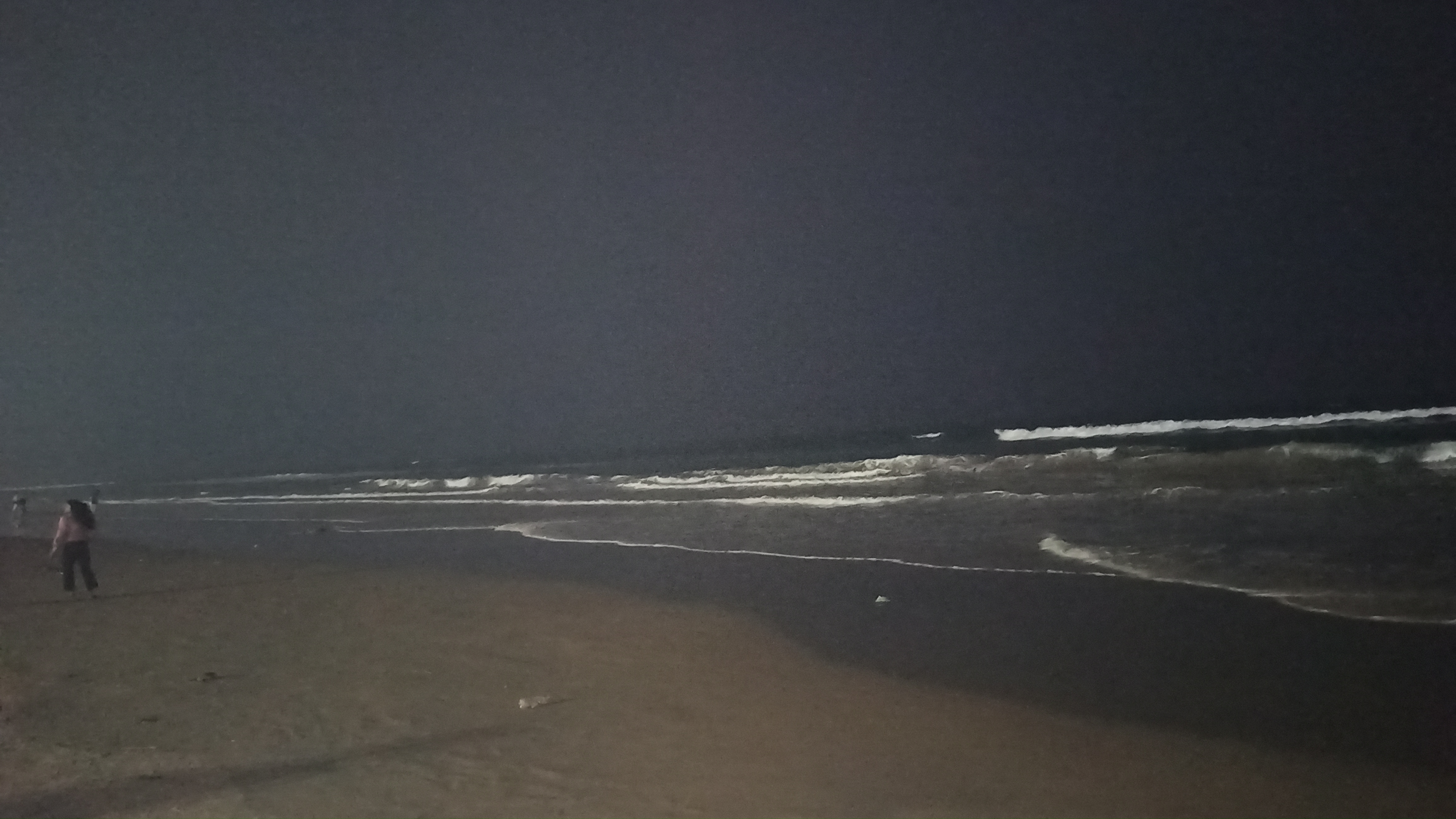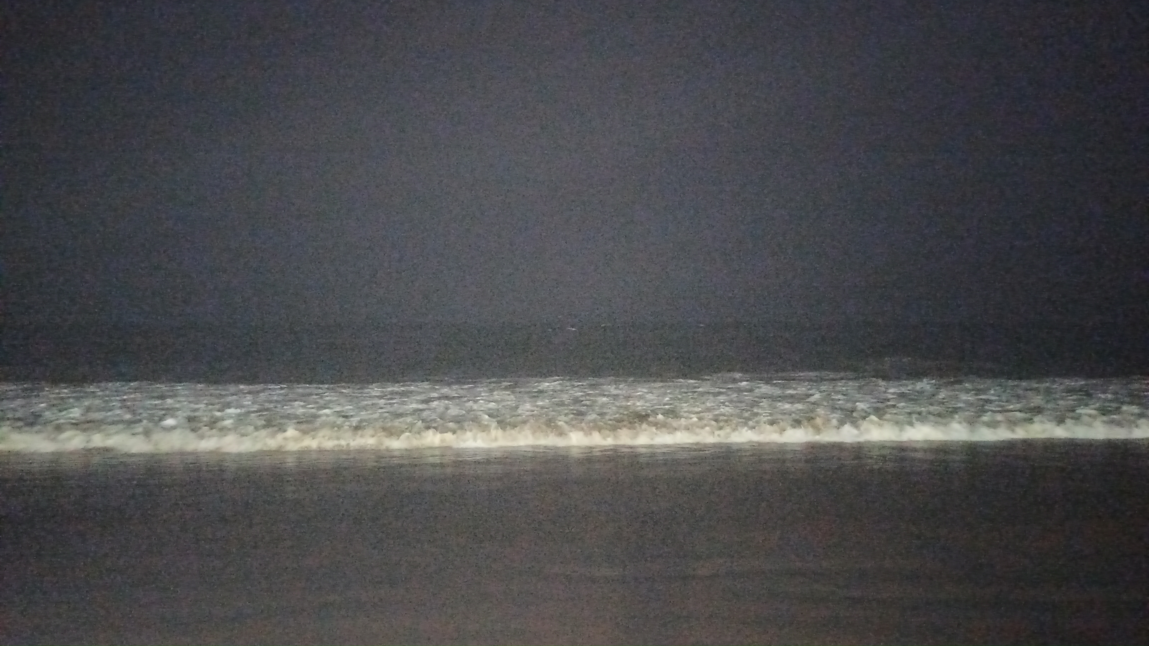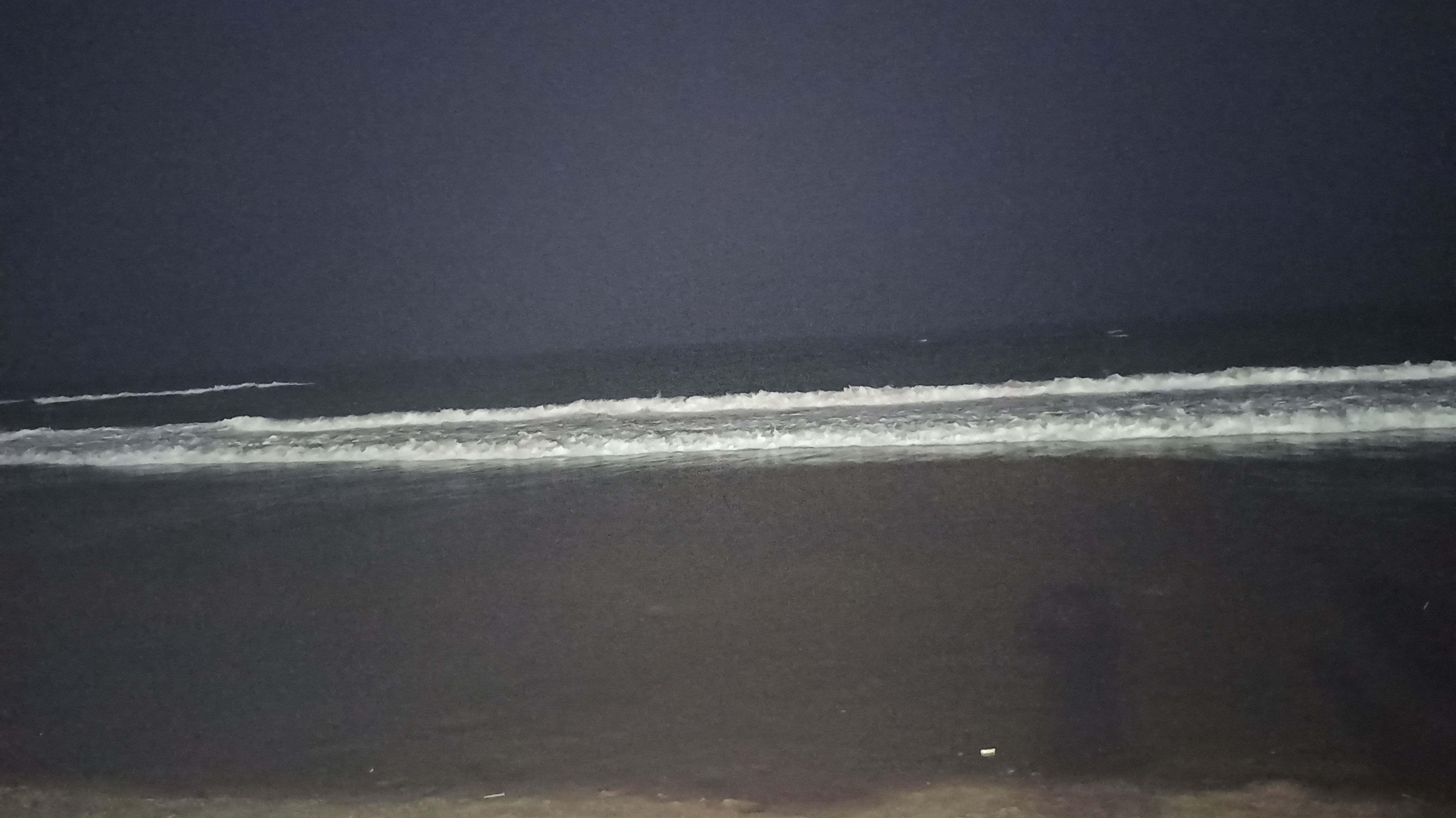 সমুদ্রের ঢেউ গুলো তীরে এসে আঁচড়ে পড়ছে। আর রাতের অন্ধকারে ঢেউ গুলো মুক্তোর মতো চিক চিক করছে।