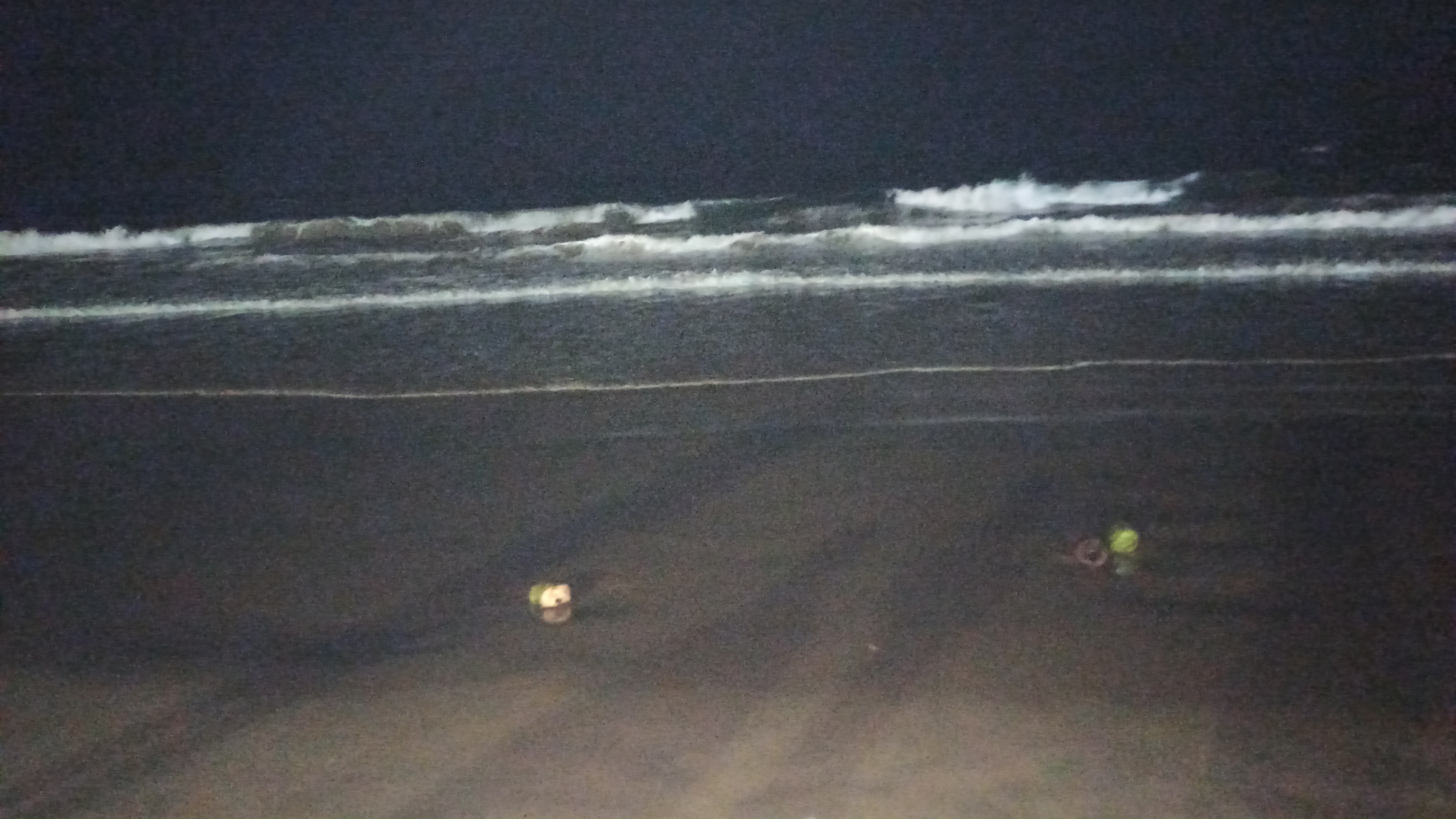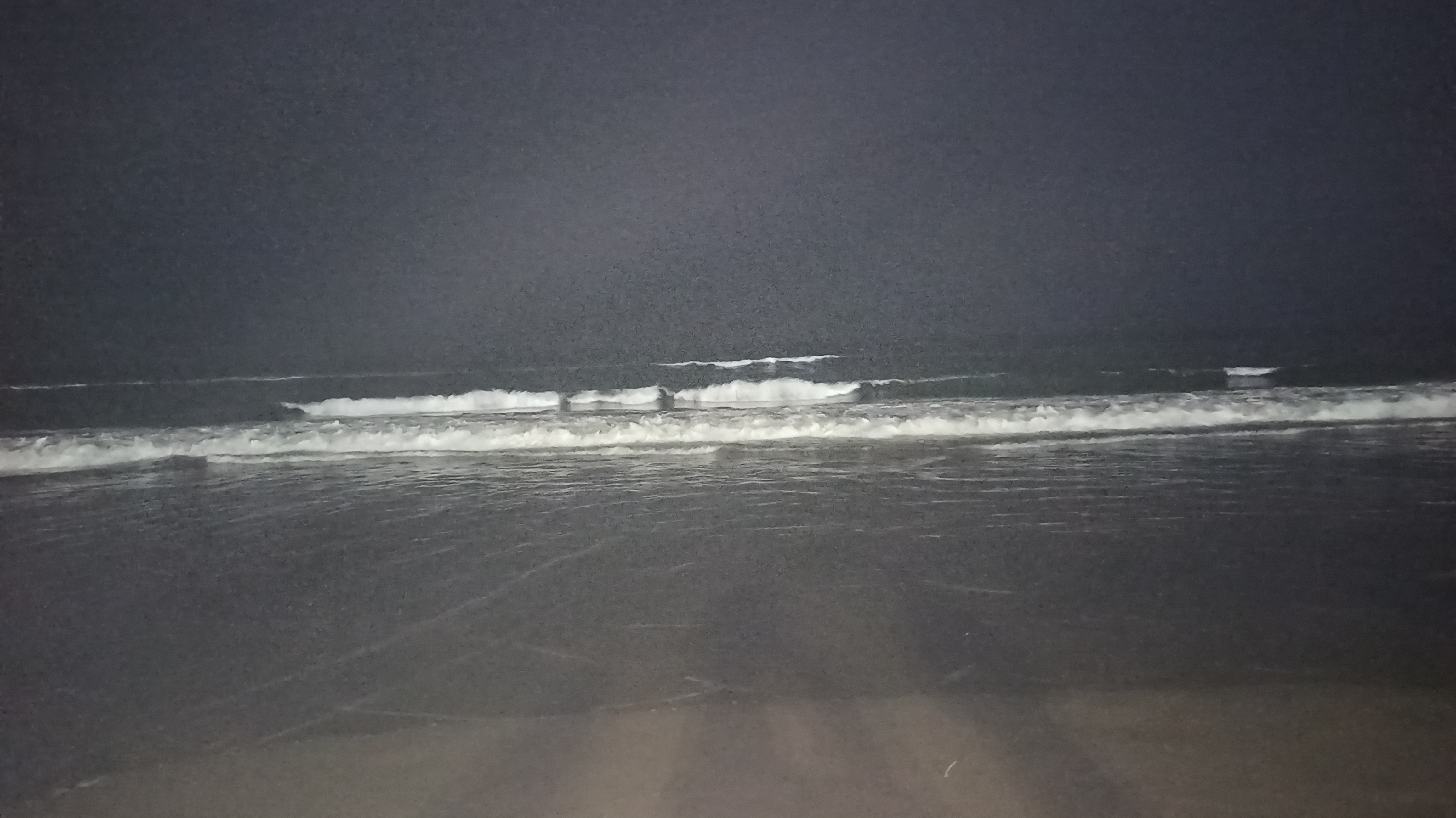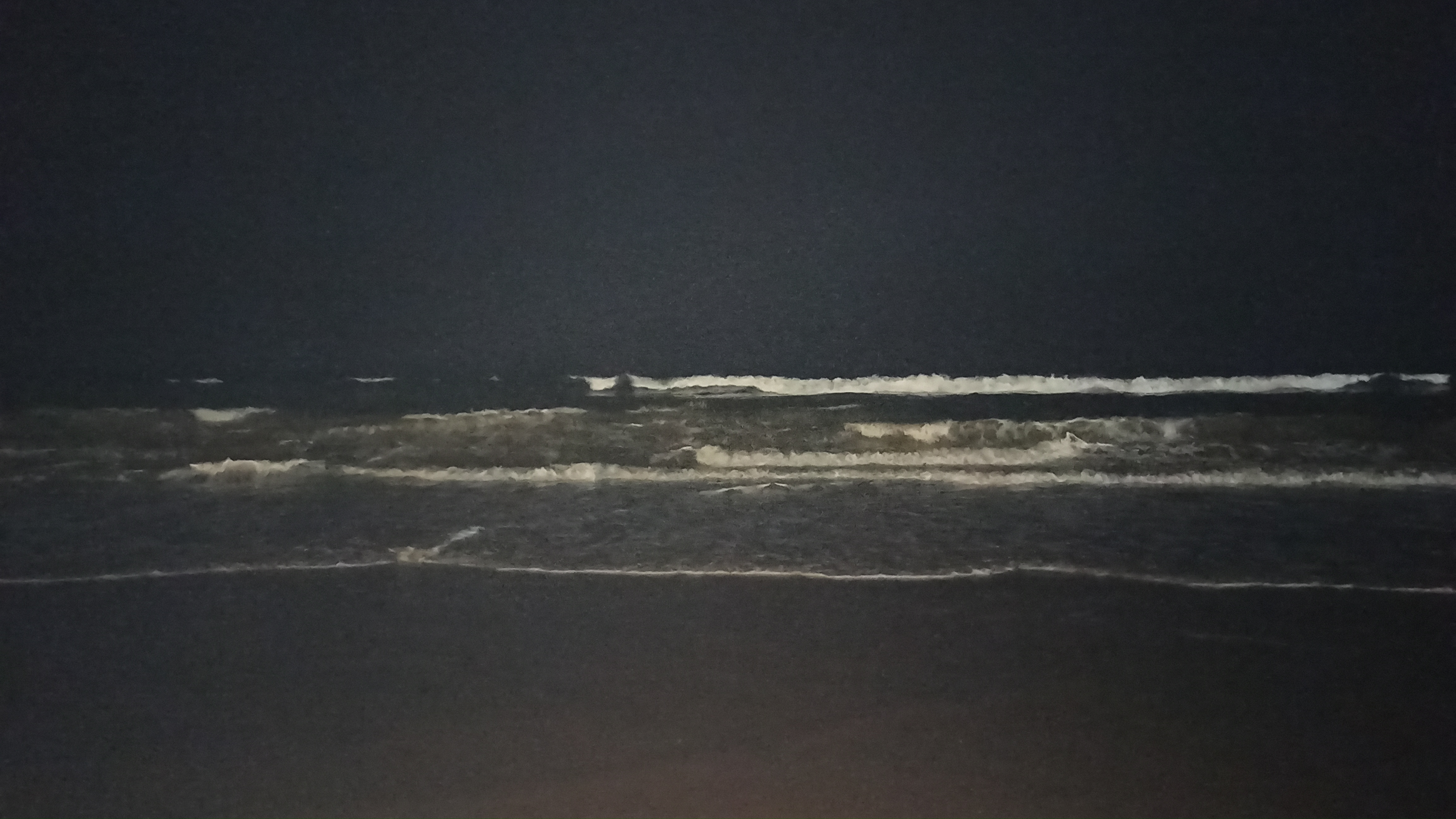 সমুদ্রের ঢেউ গুলো তীরে এসে আঁচড়ে পড়ছে। আর রাতের অন্ধকারে ঢেউ গুলো মুক্তোর মতো চিক চিক করছে।