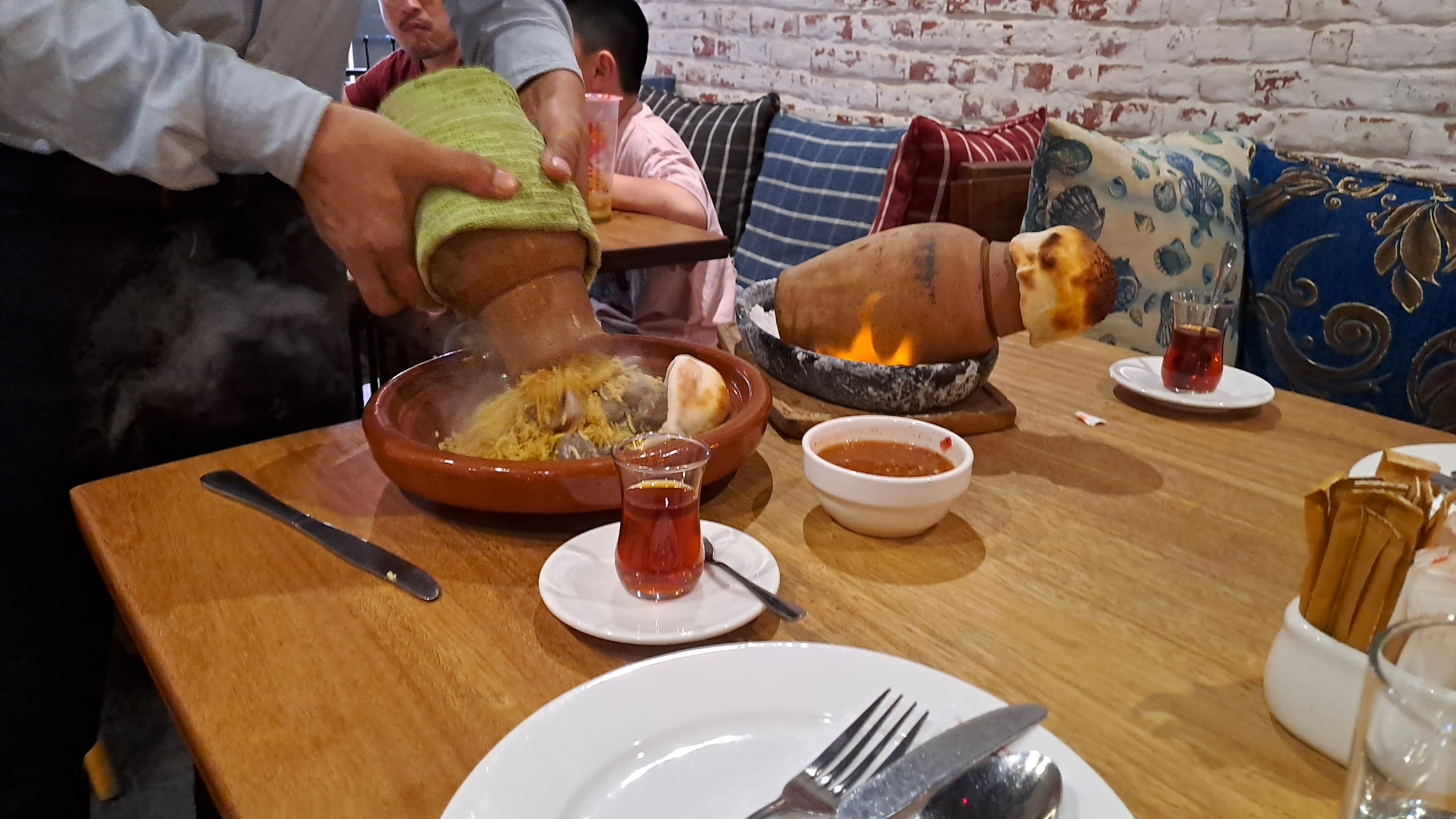 Kami memilih yang versi Arab, dan kemudian menikmati nasi dengan daging gambing yang begitu banyak.