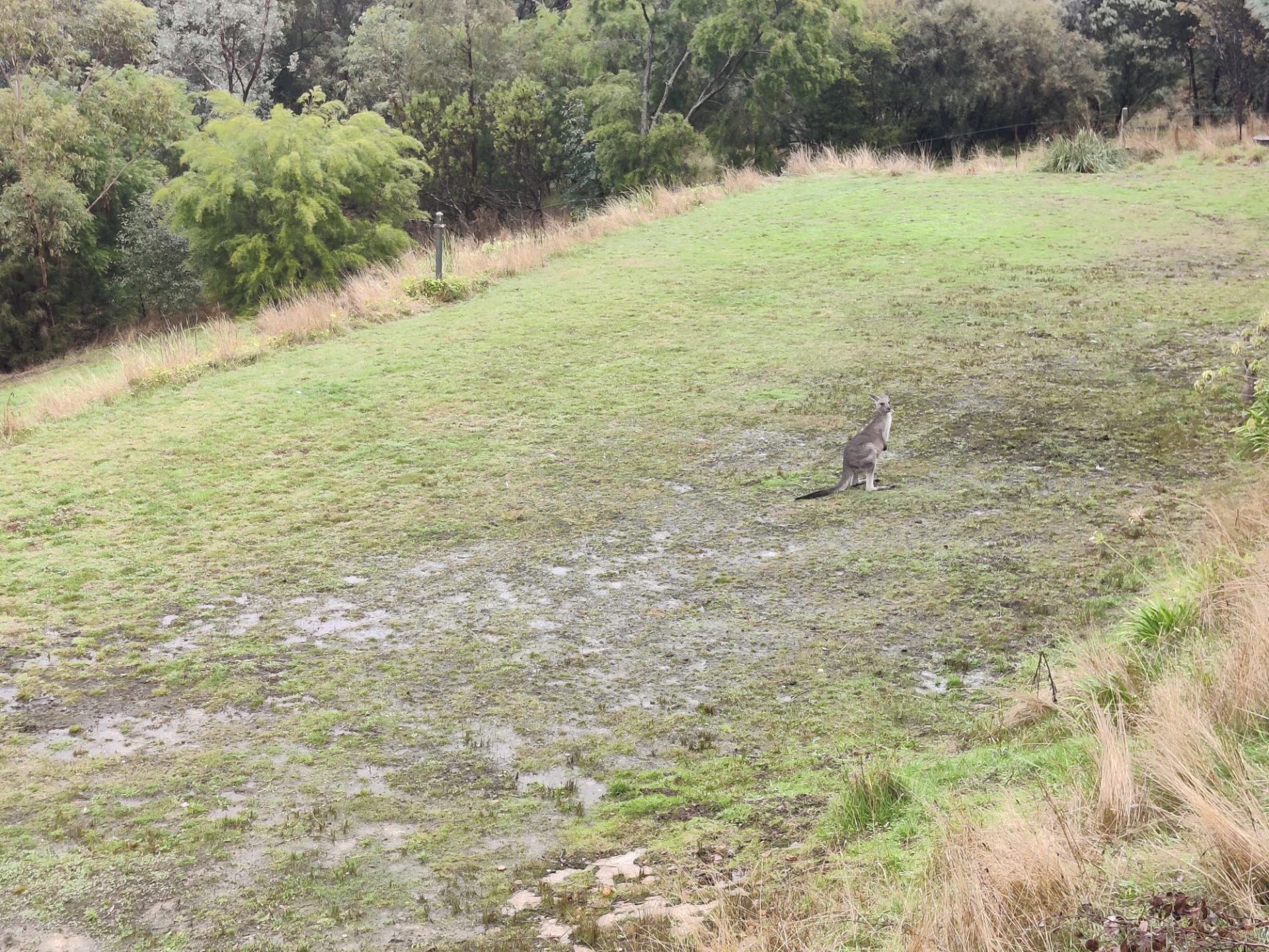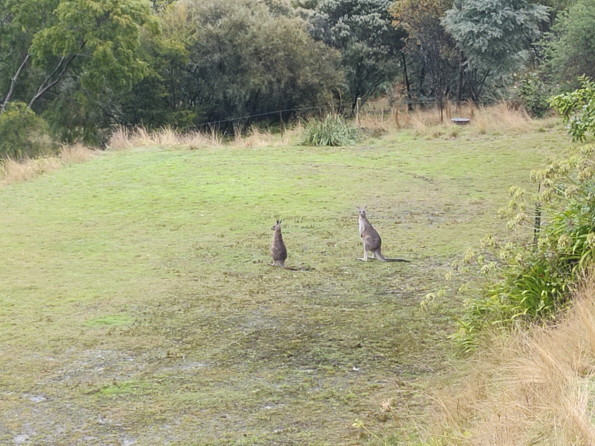 Looking out the window this morning, we saw a little kangaroo peeking back at us!