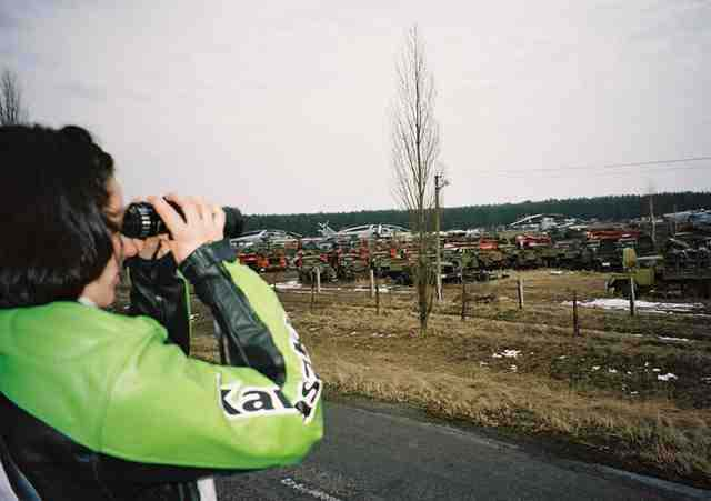 7 kilometers in the dark, Chernobyl nuclear plant lights could be seen somewhere in the side. I spotted a car near the Red Forest. And heared voices of people, sneaked out of the road.