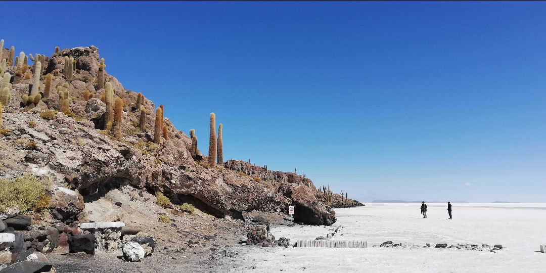 It is a rock island in the middle of a salt flat that is a remnant of a former volcano. It is inhabited by several types of animals (gato andino, vicuñas, several types of birds). However, the island is known primarily as a habitat for cacti of the Trichocereus pasacana species - huge plants growing up to 10 meters height.