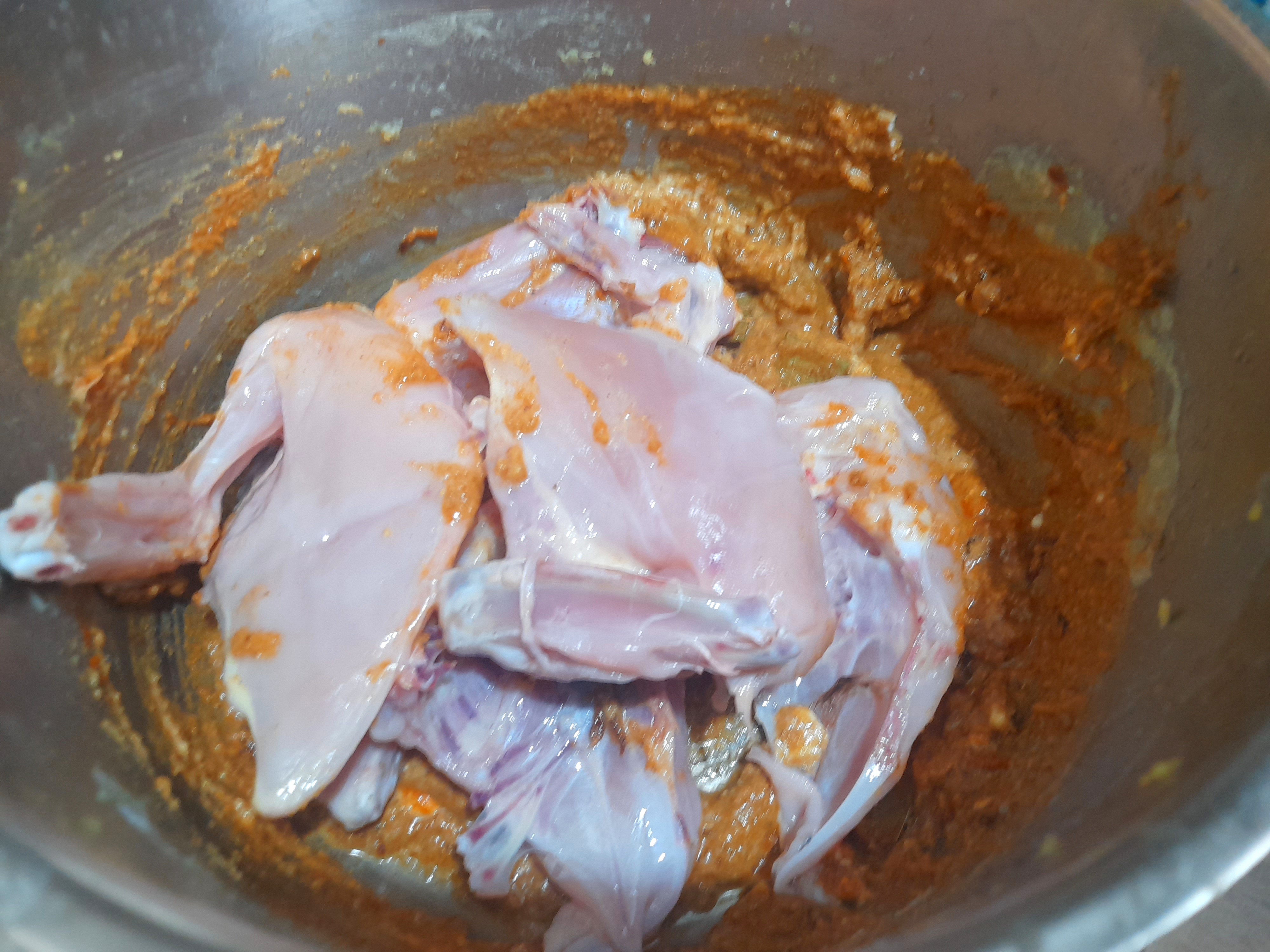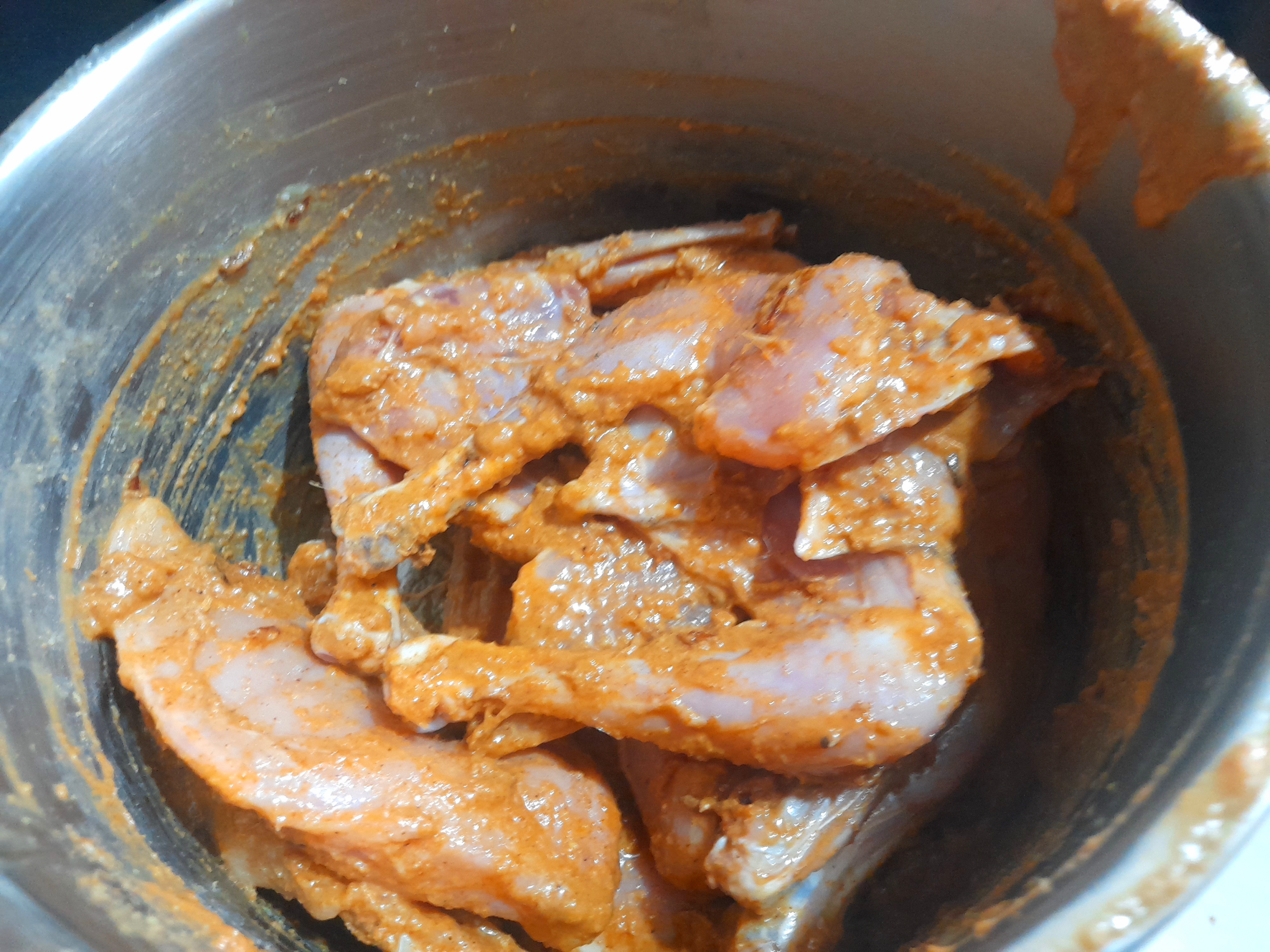 First I collect all the ingredients and then I cut chicken. For marinate I add ginger paste, garlic paste, salt, fried onion,yogurt as per above mentioned quantity. Then mix all these ingredients properly. Then I rest it for 30 minutes.