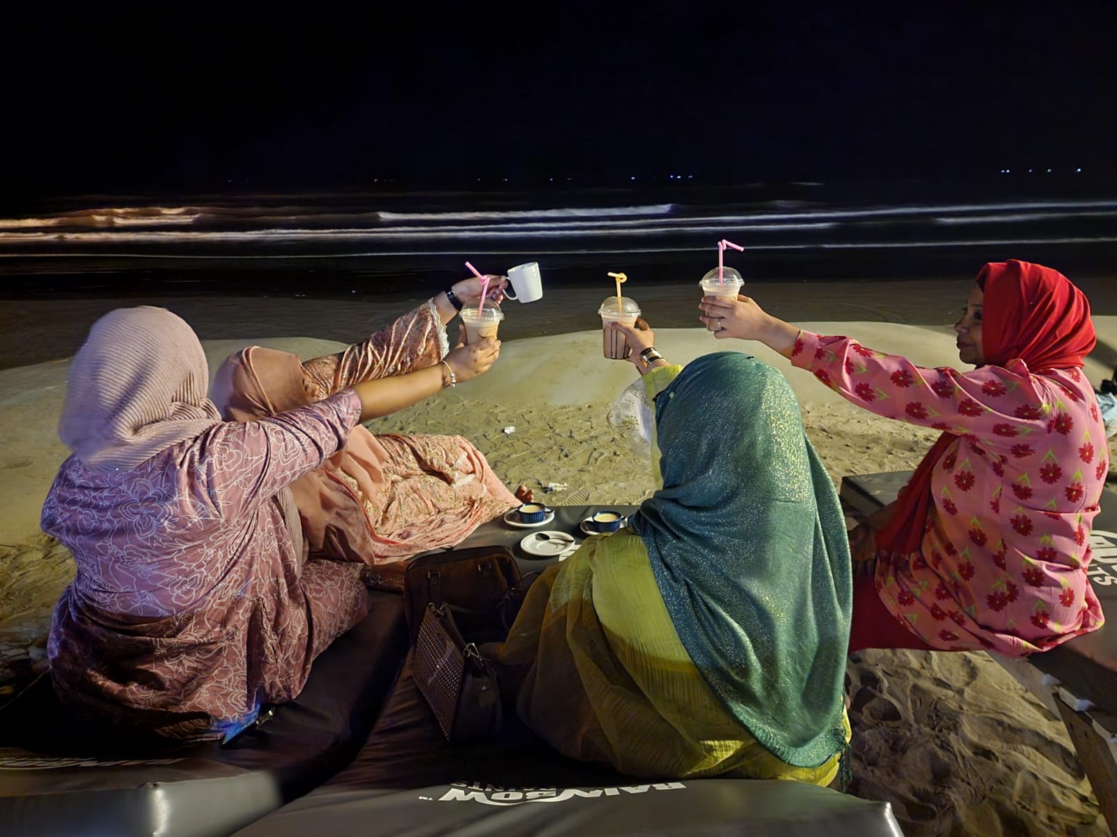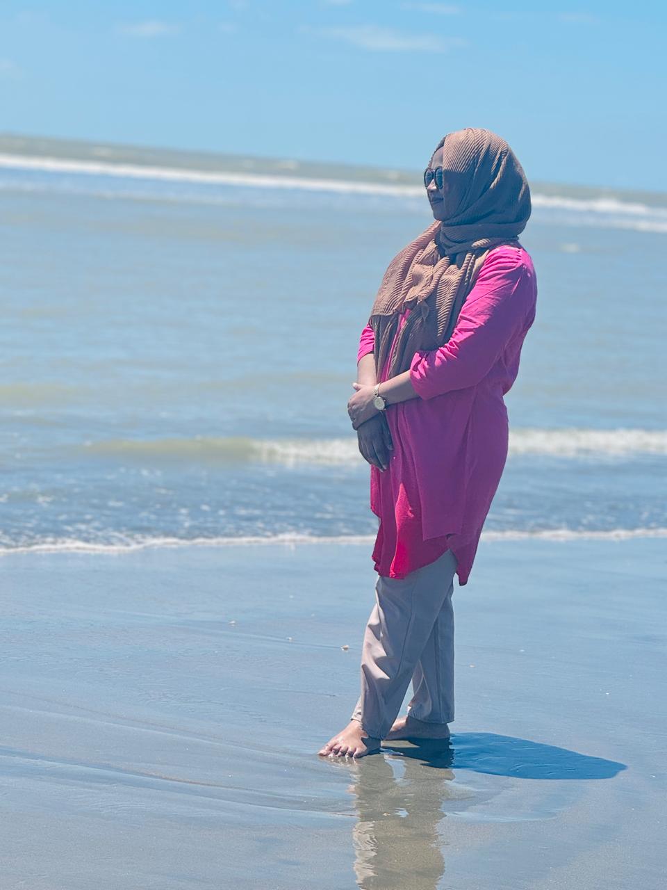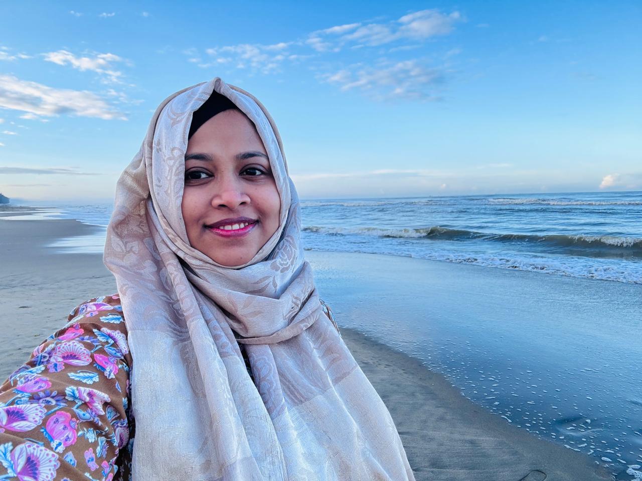 We arrived in Cox’s Bazar the previous evening. We mostly had just this one day to roam around, so we filled the day with activities and memorable experiences , determined to make the most of every moment. We ladies woke up very early in the morning , as we wanted to enjoy the sunrise and the calming ambiance of the sea. Though we were a little tired , we managed to get up early and head to the beach , where we experienced a serene and beautiful morning sitting by the shore. It was an amazing experience, one I must acknowledge. While we were there, we enjoyed fresh, local green coconut water, which is a must when visiting Cox’s Bazar, and savored the fresh coconut flesh.