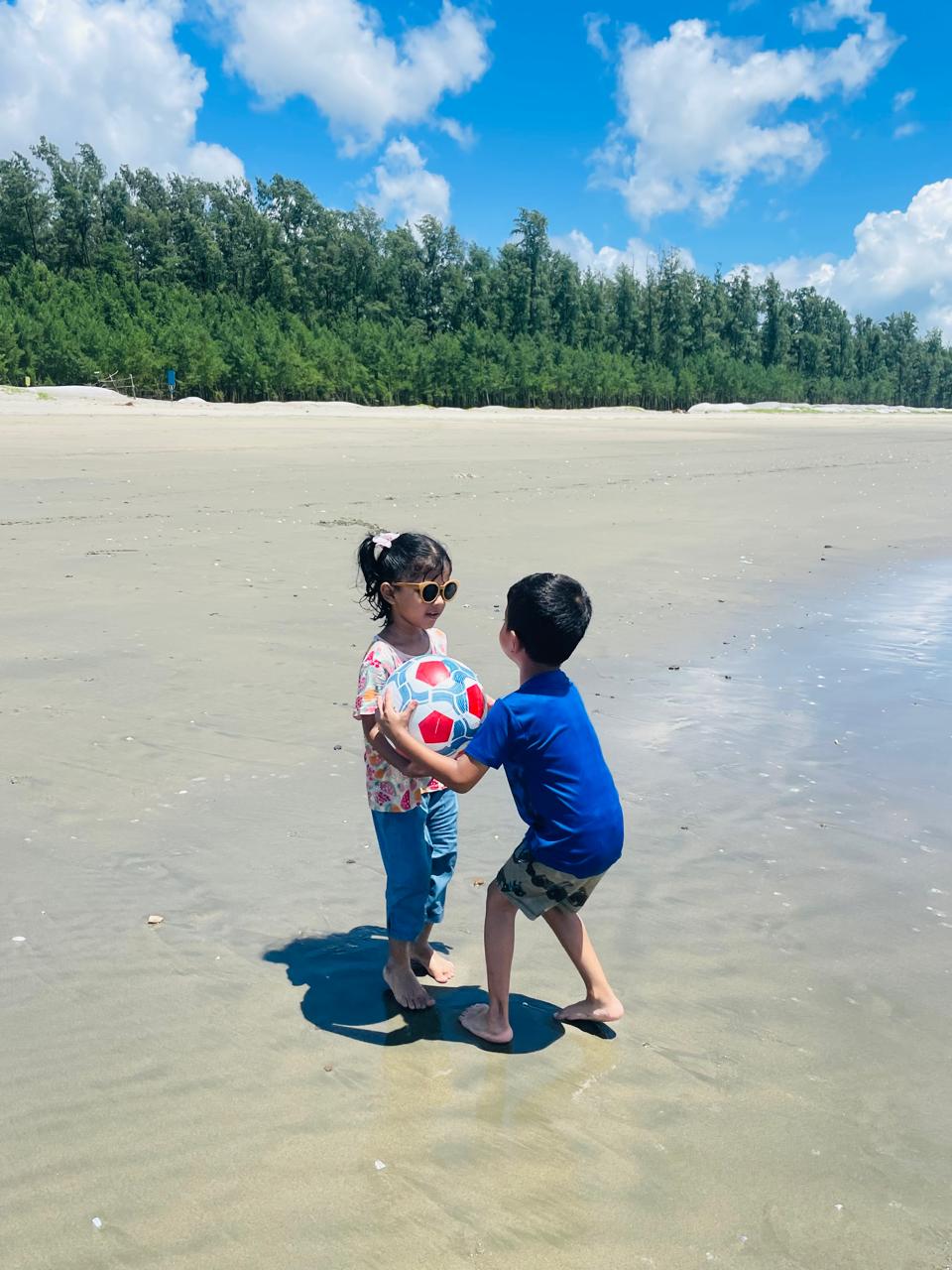 After lunch, we headed towards Inani and Patuartek Beach to enjoy the afternoon. The drive took about an hour and a half, but it was worth it. The water at Patuatek Beach was even clearer than in Cox’s Bazar, and the environment was amazing, especially as it was the golden hour with no harsh sunlight. We spent time there comfortably, enjoying the peaceful atmosphere. Since we were in a group, the fun never stopped. We took lots of beautiful pictures to capture the moments and keep them as memories.