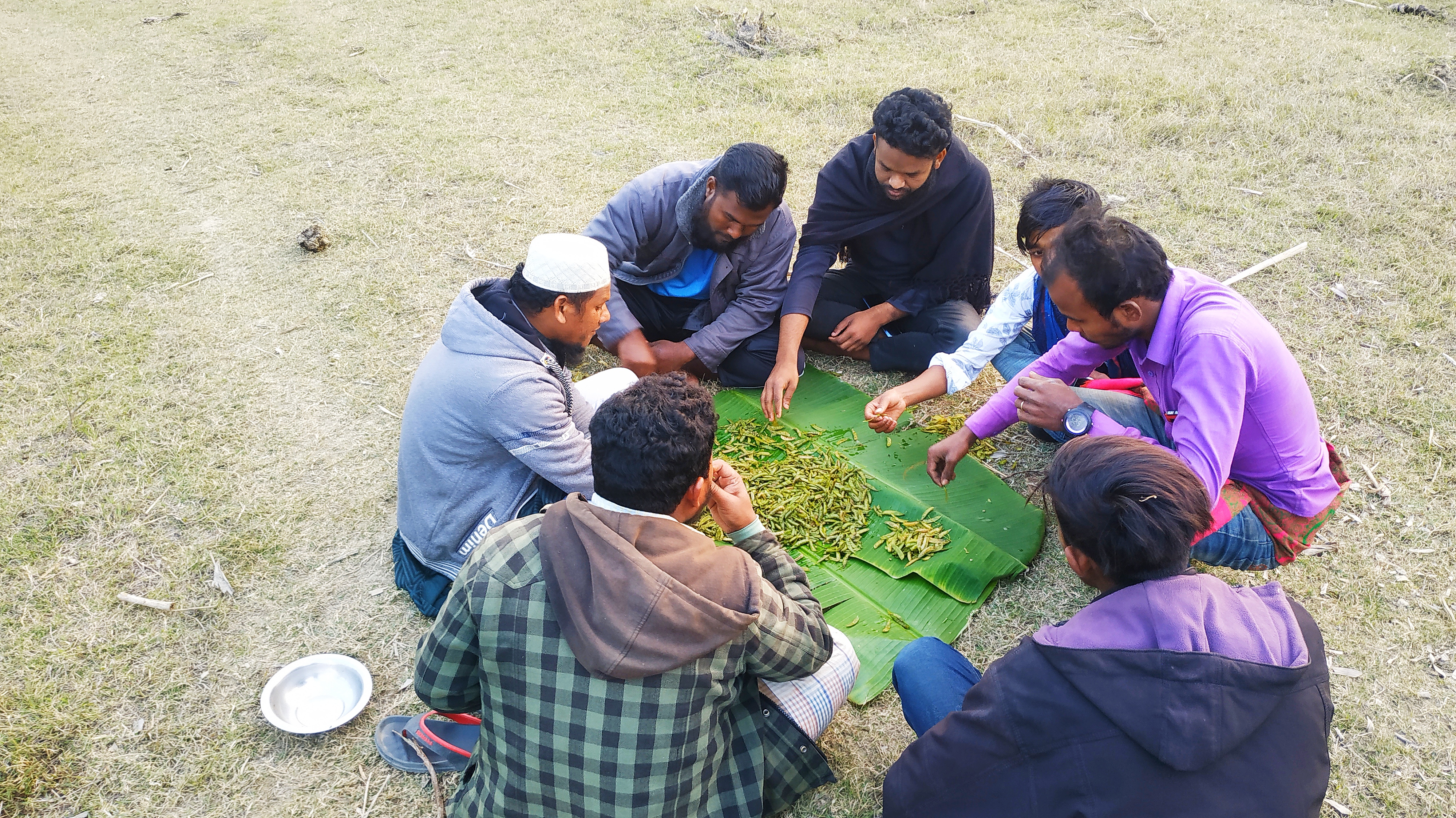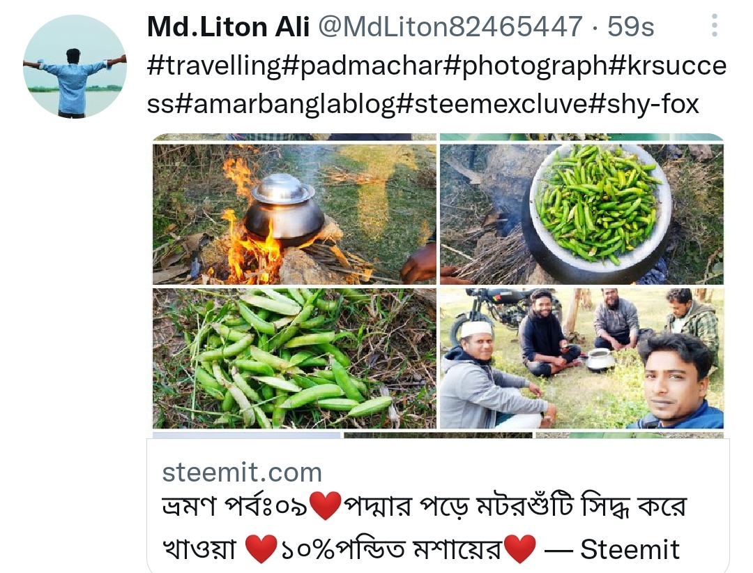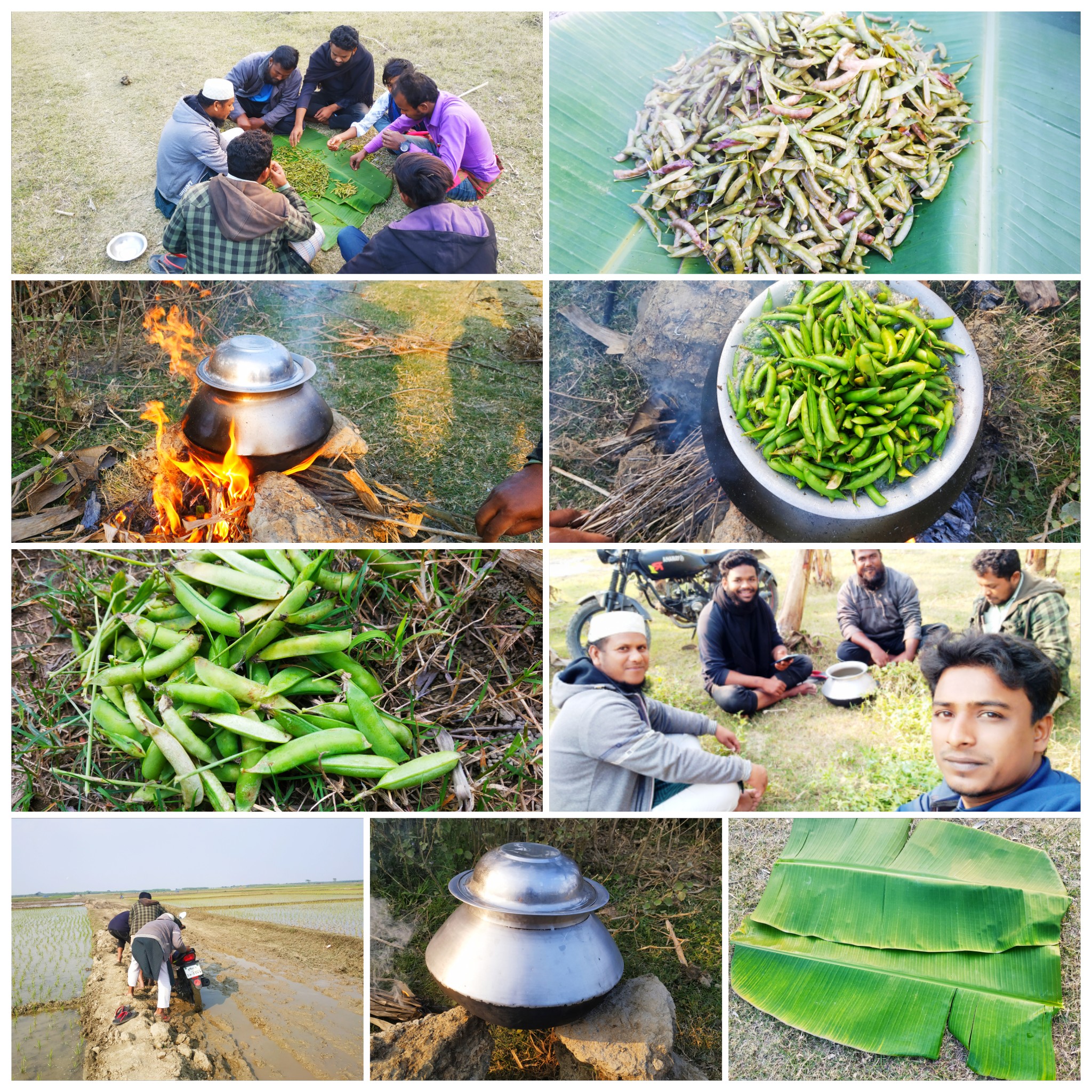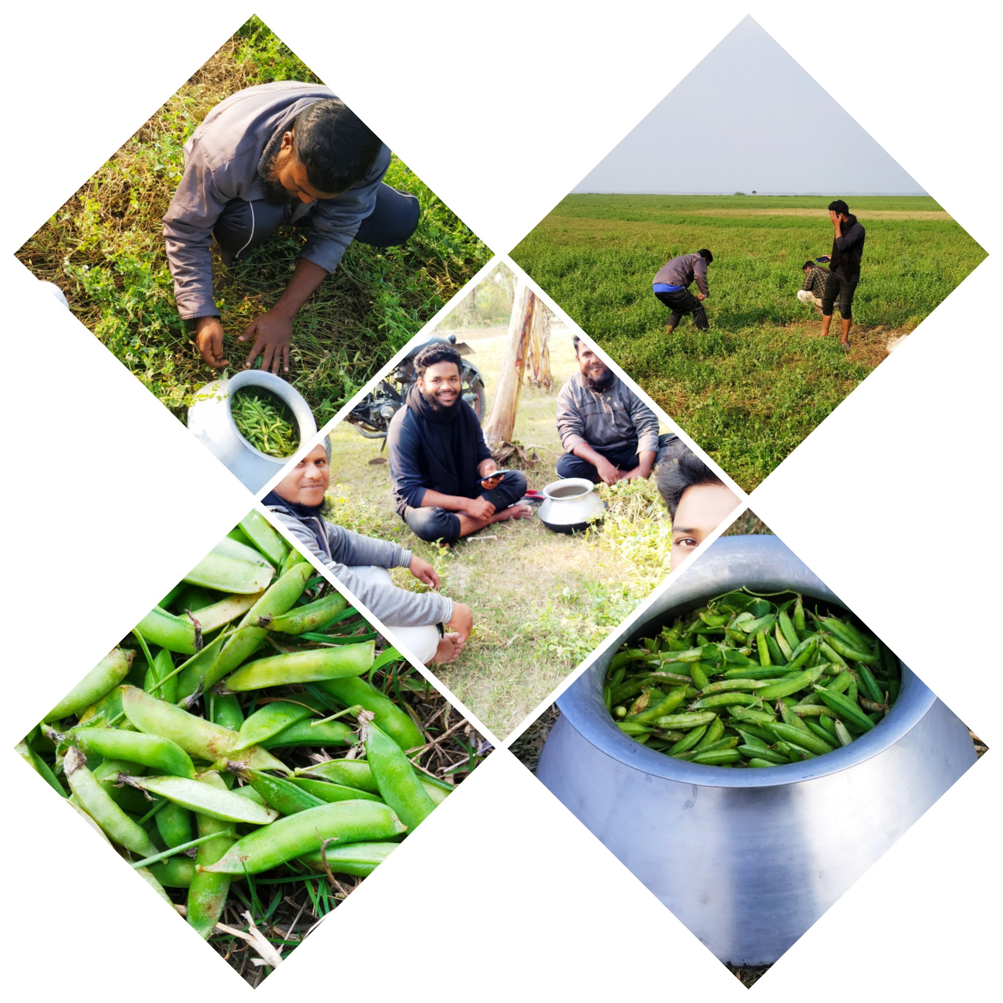 আমরা কিছুসময়ের মধ্যেই পদ্মার পাড়ে পৌঁছে যায়।ওখান থেকে একটি পাতিল সংগ্রহ করি এবং একটি দোকান থেকে হাফ কেজি লবণ এবং একটি গ্যাস লাইট ক্রায় করি। আমাদের মধ্যে একটা ভাই ছিল উনার নাম বকুল হোসেন❤️ ওই পদ্মার পাড়ে ওনাদের মটরশুঁটির জমি আছে। সেই জমিতে আমরা সবাই মিলে মটরশুঁটির ফল সংগ্রহ করতে থাকি। ছবিতে দেখতে পাবেন। সবাই মিলে অনেক মজা করি এবং ফল উঠাতে থাকি। |