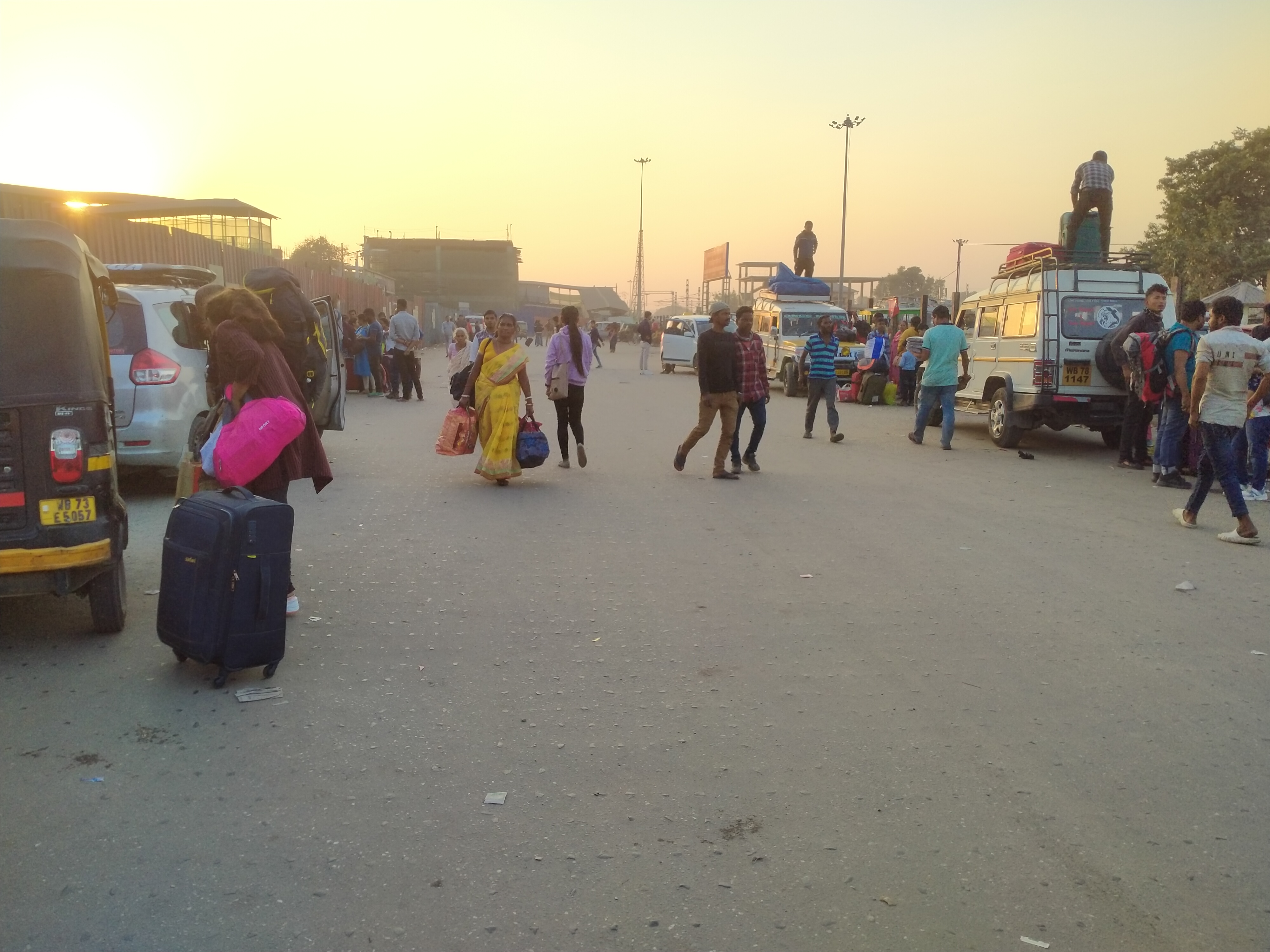 বিকাল চারটার মাঝেই আমরা নিউ জলপাইগুড়ি রেল স্টেশনে পৌঁছে যাই। সেখানে আমাদের দুটো গাড়ি আগে থেকেই রিজার্ভ করা ছিল। মজার ব্যাপার গাড়ি দুটো আসতে প্রায় ঘন্টাখানেক লেট করে রাস্তায় জ্যাম থাকার কারণে। এই সময়টুকু আমরা এদিক সেদিক ঘোরাফেরা করেই কাটিয়ে দেই। জায়গাটা বেশ জমজমাট ছিল। আসলে দার্জিলিং, সিকিম বা গ্যাংটক যারাই যান তারা সবাই এখান থেকেই গাড়ি নিয়ে তারপর রওনা হয়।