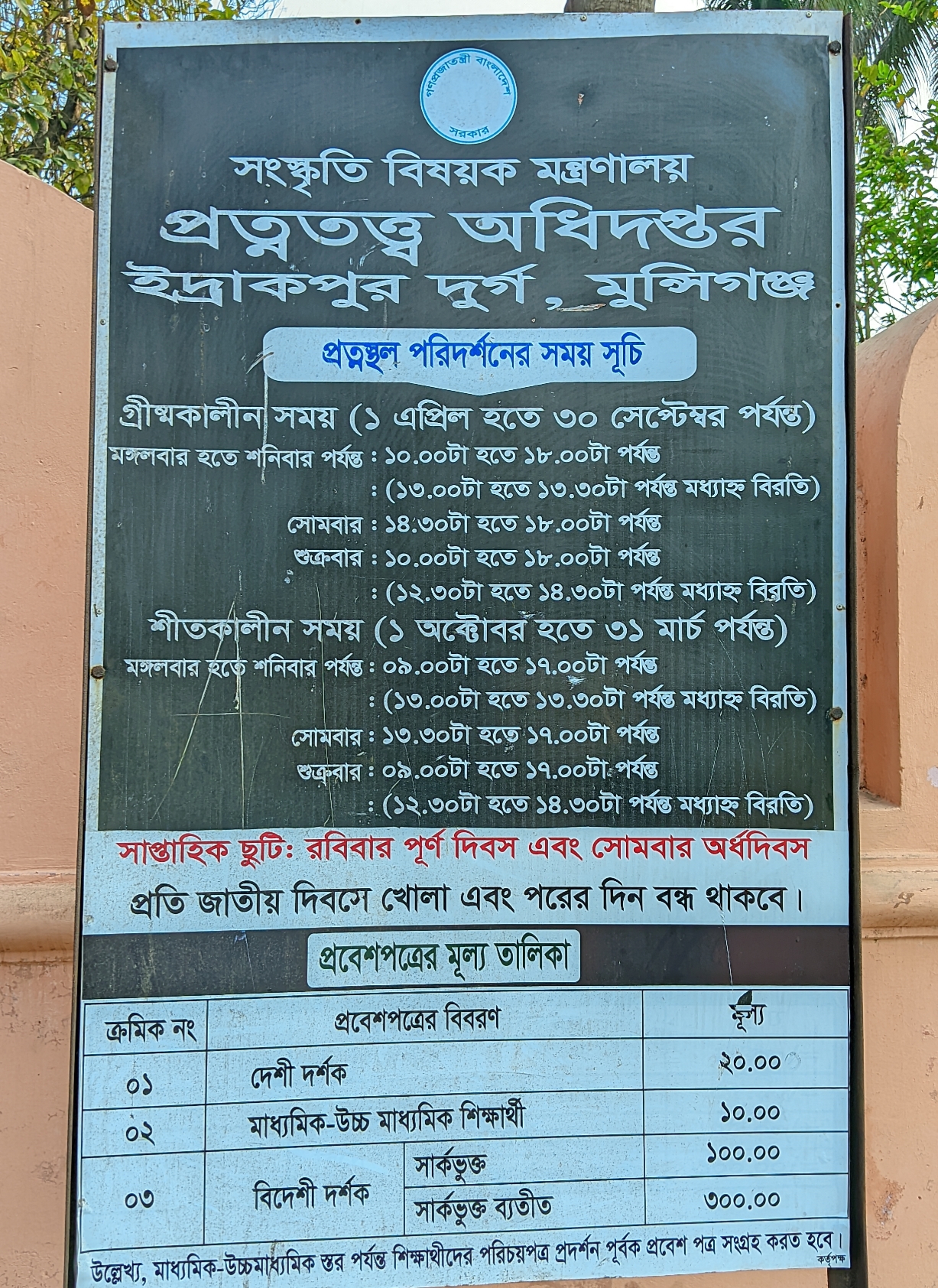When I visited Idrakpur Fort, I liked the atmosphere both inside and outside. There is a ticket counter near the entrance outside the fort from where you have to buy a ticket and enter inside. There is a beautiful parking lot outside, but there is no fee to park here. After entering, there is a signboard about the history of the fort. There are some seating areas inside and outside, where people rest. In the afternoon, many people come to visit with their families and friends. There are people on duty near the gate for security, so the place is safe, and people from other countries come here to visit this fort.