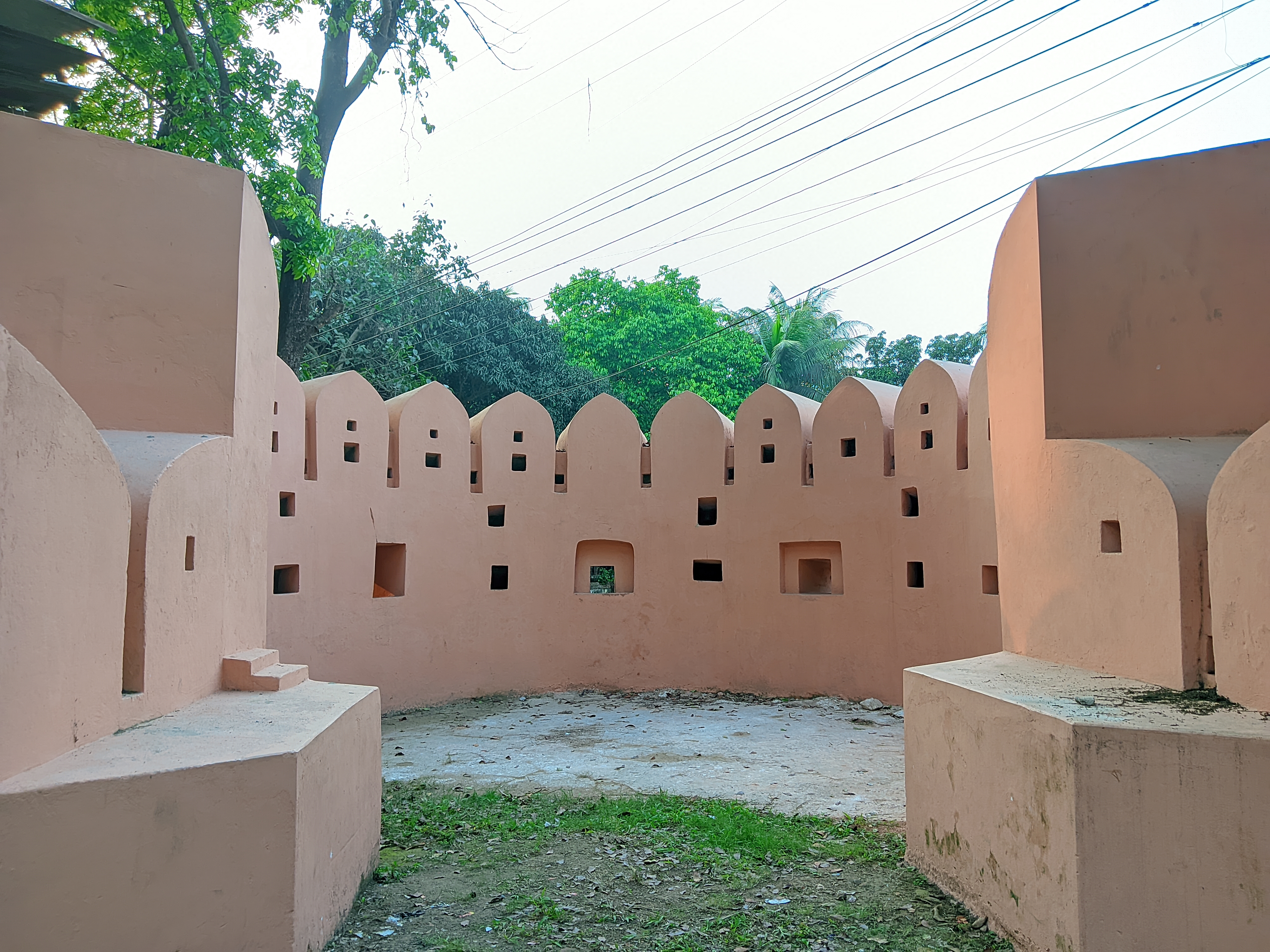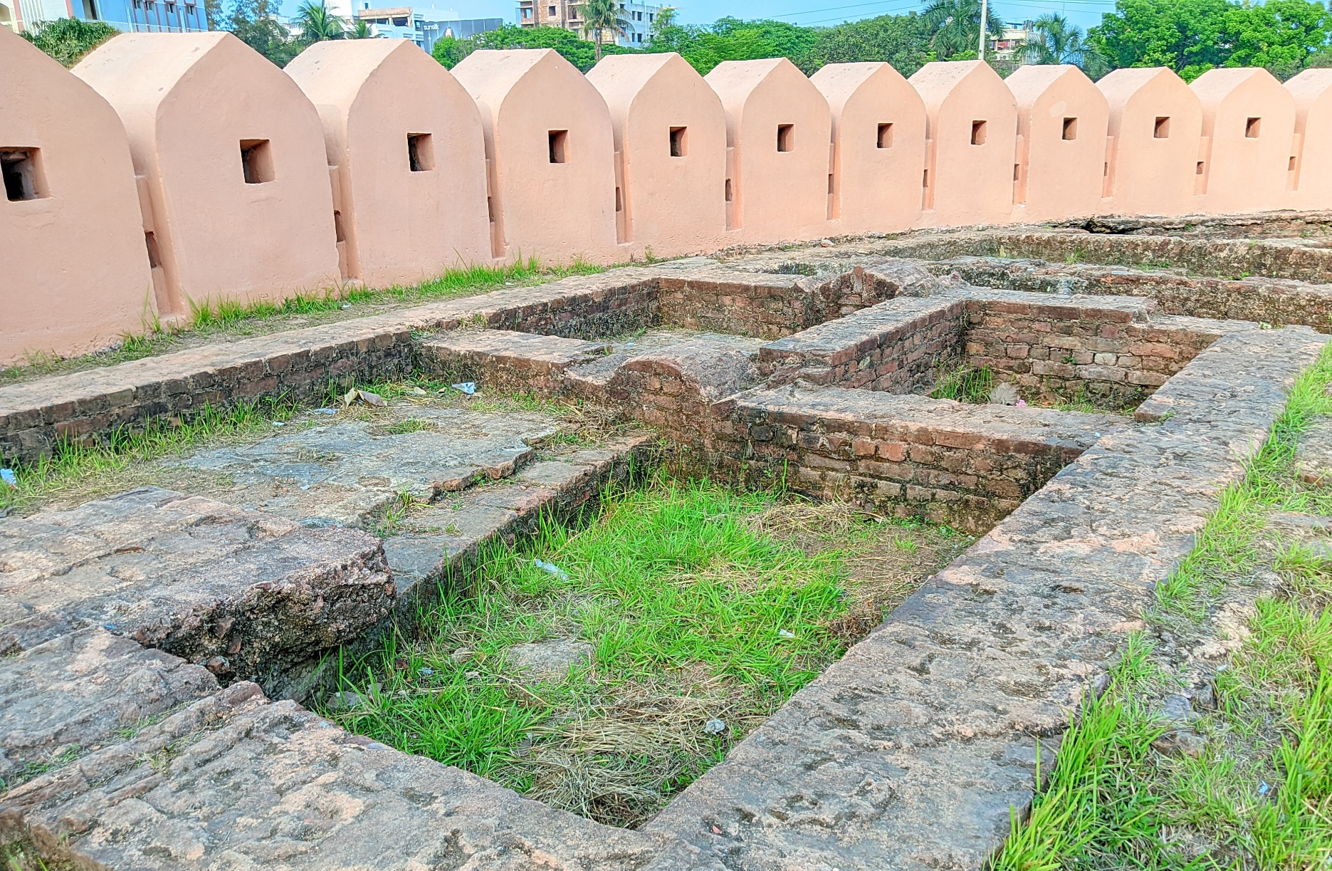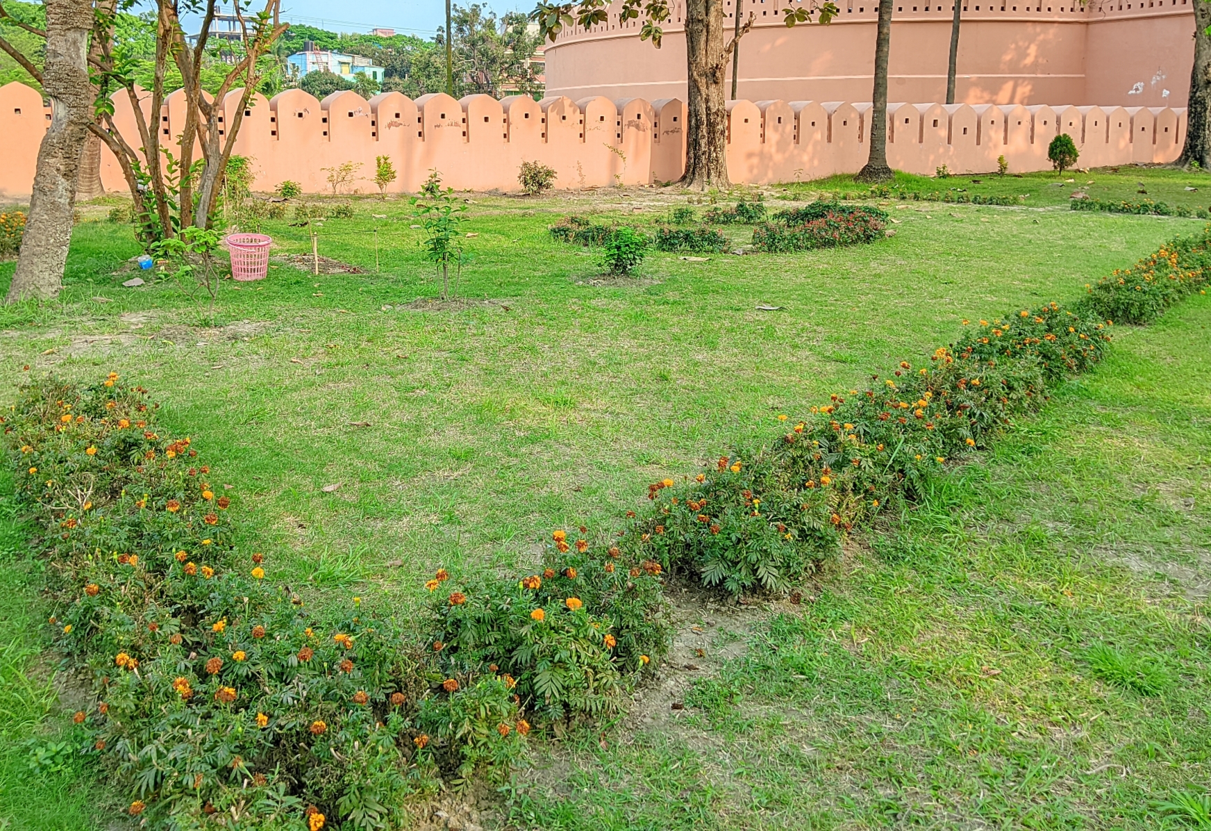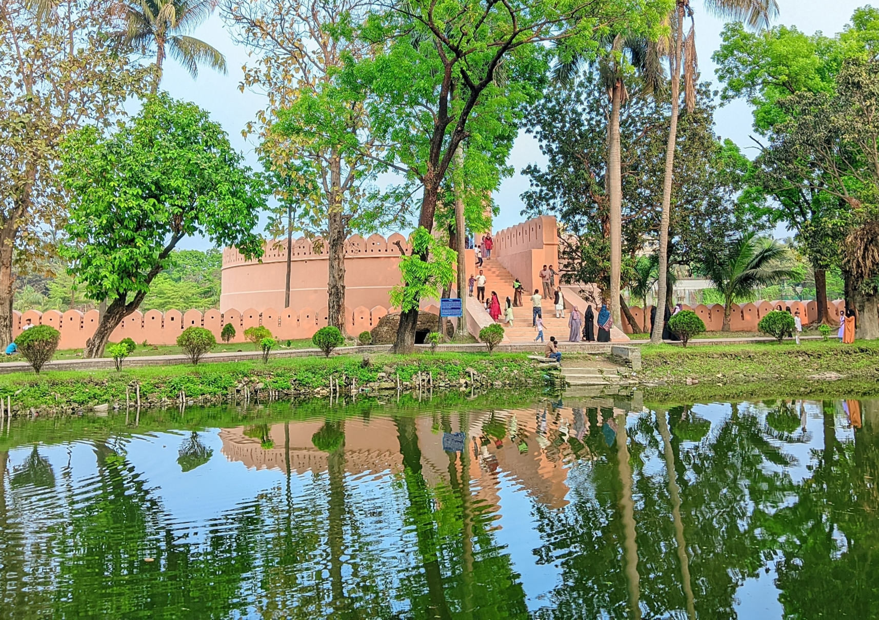 When you enter, the first thing you see is the old red brick walls and the round structure. The atmosphere inside is calm and open. There is a high courtyard in the middle, where you can see the surroundings when you go up. There are stairs and a gate to go up; it is located very high from the ground. There are small holes in the four walls of this fort where cannons and other weapons were kept to attack the enemies. There is a large pond in the middle and a sitting area on the other side of the pond. Although there are not many modern facilities here, as a historical place, as much as is necessary has been preserved.
