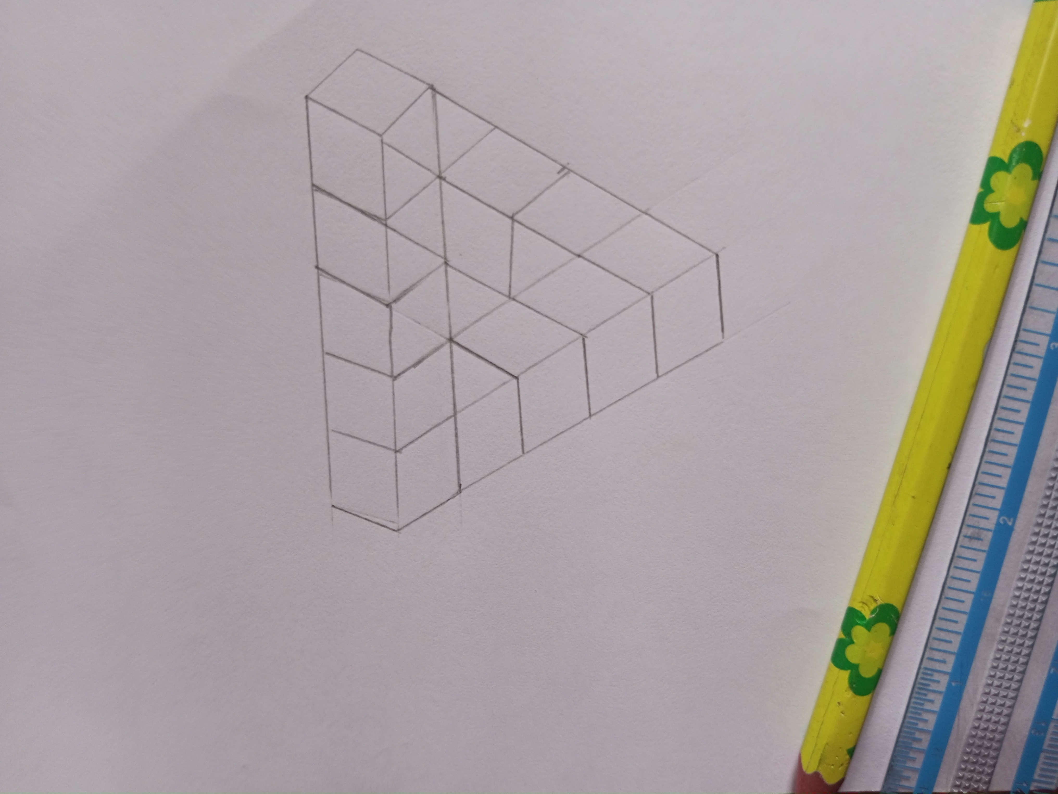 প্রতিদিনের মতো আজও আপনাদের মাঝে নতুন একটি পোস্ট নিয়ে হাজির হলাম। আজ আমি আপনাদের সাথে চমৎকার একটা আর্ট শেয়ার করতে চলে আসলাম। আজকের আর্টের নাম 3d Triangle আর্ট। এই আর্ট গুলো দেখলে অনেকটা দৃষ্টিভ্রমের সৃষ্টি হয়। এই ধরনের আর্ট গুলো দেখলে মনে হয় অংকন করা বেশ কঠিন হবে। কিন্তু ধাপে ধাপে অংকন করার পর বোঝা যায় এই আর্টগুলো কতটা সহজ। আমার কাছে তো 3d Triangle আর্ট গুলো করতে খুবই ভালো লাগে। তাইতো মাঝে মাঝে এ ধরনের আর্ট গুলো আপনাদের সাথে শেয়ার করে থাকি। তাহলে চলুন আজকের তৈরি এই 3d Triangle আর্টটি আমি কি কি উপকরণ এবং কিভাবে তৈরি করলাম সেটি স্টেপ বাই স্টেপ আপনাদের মাঝে শেয়ার করি।