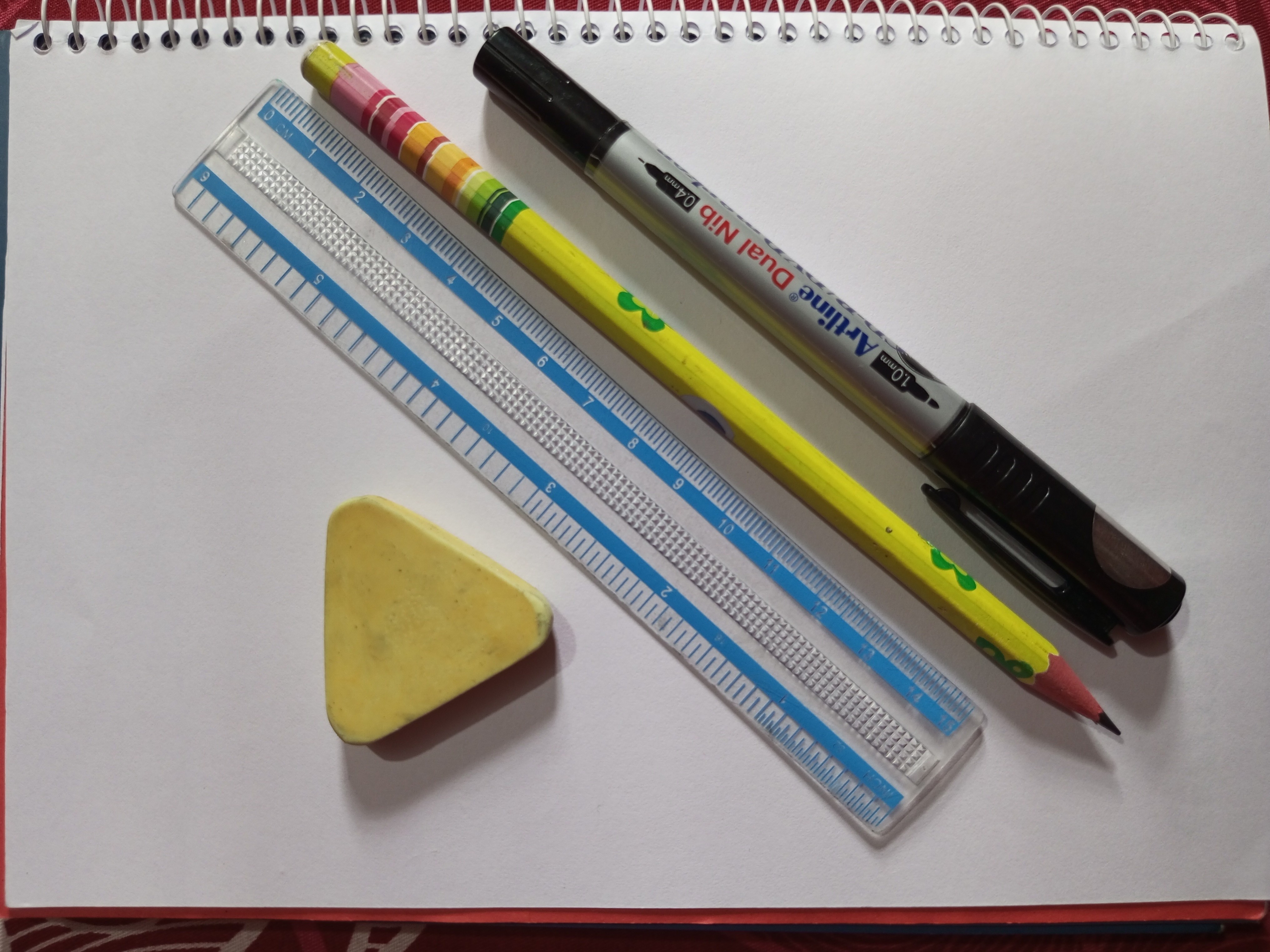 পেন্সিলের বাড়তি দাগগুলো মুছে ফেলব এবং পেন্সিলের দাগের উপর দিয়ে কলম দিয়ে পুনরায় দাগ দিব।