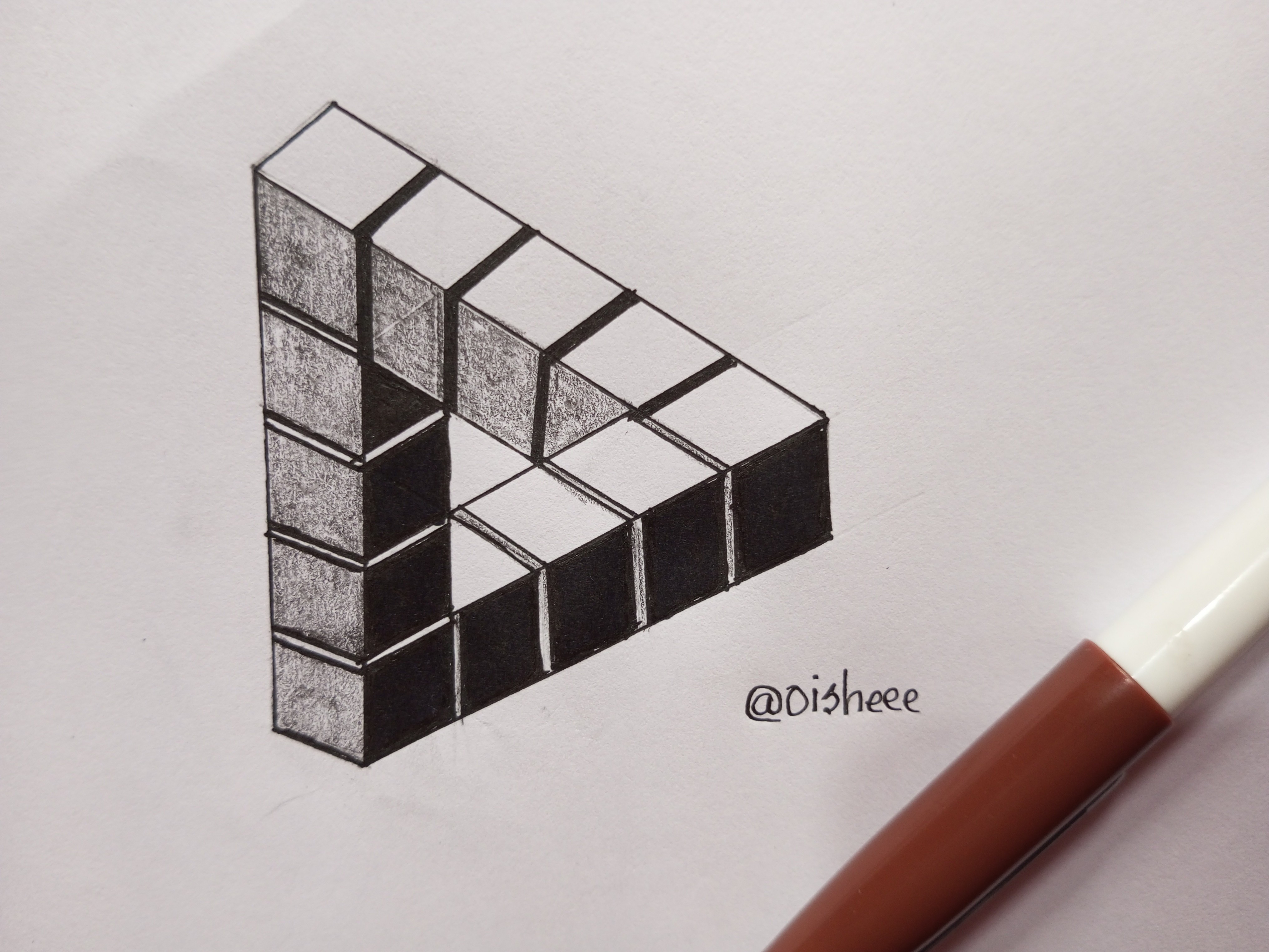 আরে বাহ্ আপু আপনি তো দেখছি একেবারে চোখ ধাঁধানো একটা আর্ট করেছেন। আপনার এই থ্রিডি ট্রাইংগেল ড্রইং টা আমার কাছে অনেক সুন্দর লেগেছে দেখতে। এই ধরনের আর্ট গুলো সাবধানতা অবলম্বন করে করা লাগে এবং কি নিখুঁতভাবে অঙ্কন করা লাগে। পুরোটা এত সুন্দর করে অঙ্কন করার কারনেই এত বেশি সুন্দর লাগতেছে দেখতে। আপনার দক্ষতা মূলক এই সুন্দর আর্টের প্রশংসা যত করব তত কম হবে।