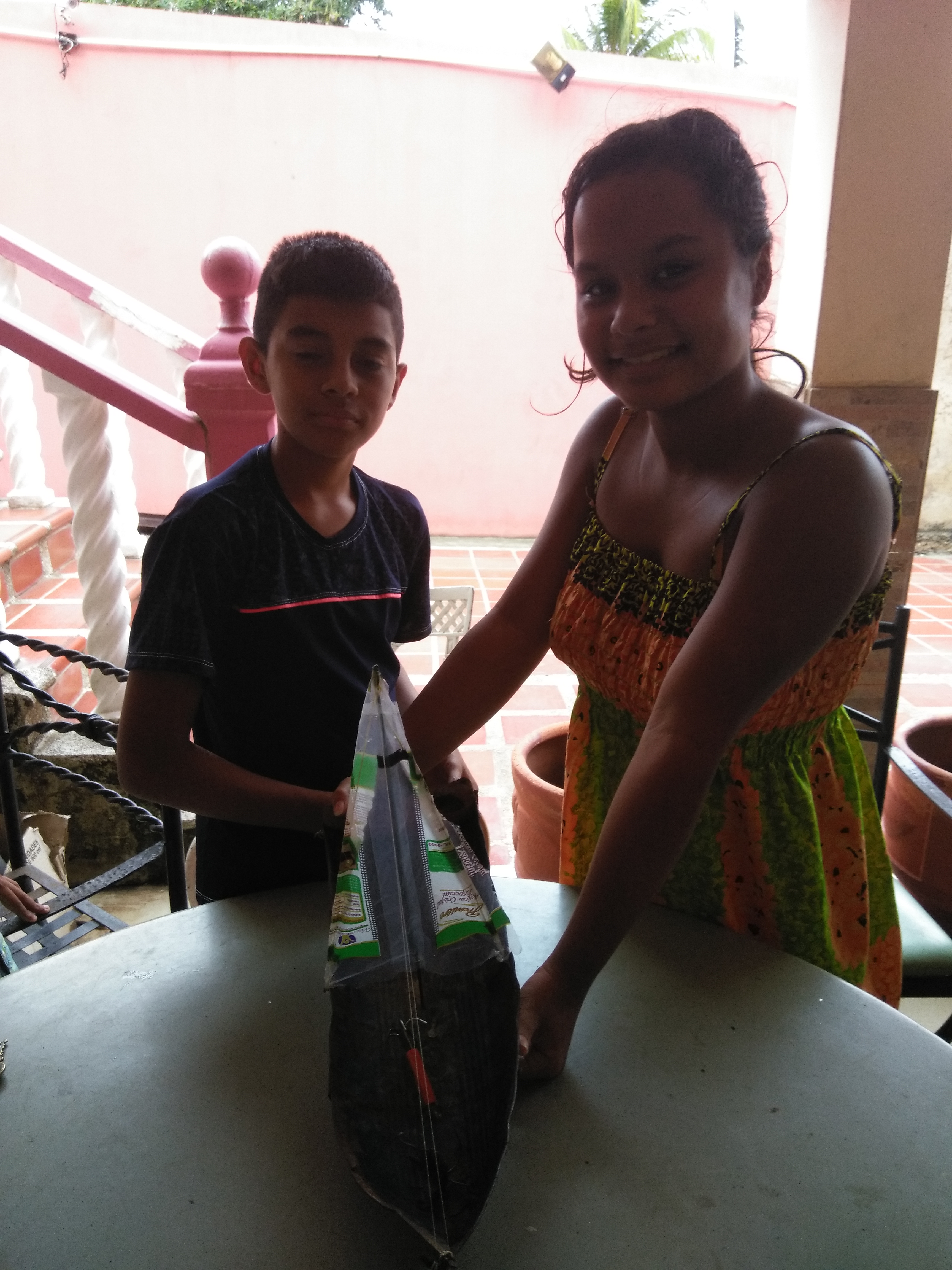 En la mañana de hoy encontré unos amiguitos que estaban jugando y me contaron como armaron un barco con una lata de leche de hierro, un palillo, una bolsa de plástico, con otros materiales le hizo un motor, un ancla y luego lo puso a funcionar en un tanque de agua que tiene para riego de una plantación.