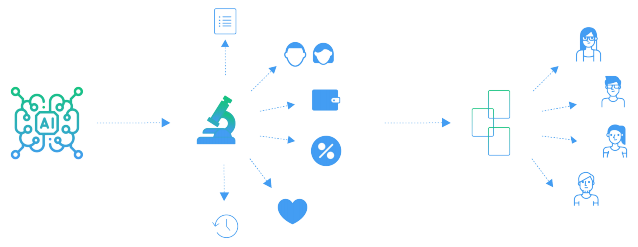 Get reward for providing relevant information that positively affect other platform participants and a market to provide their services. Create new algorithms and networks, use data sets to empower their modules and create self-sustained AI products.